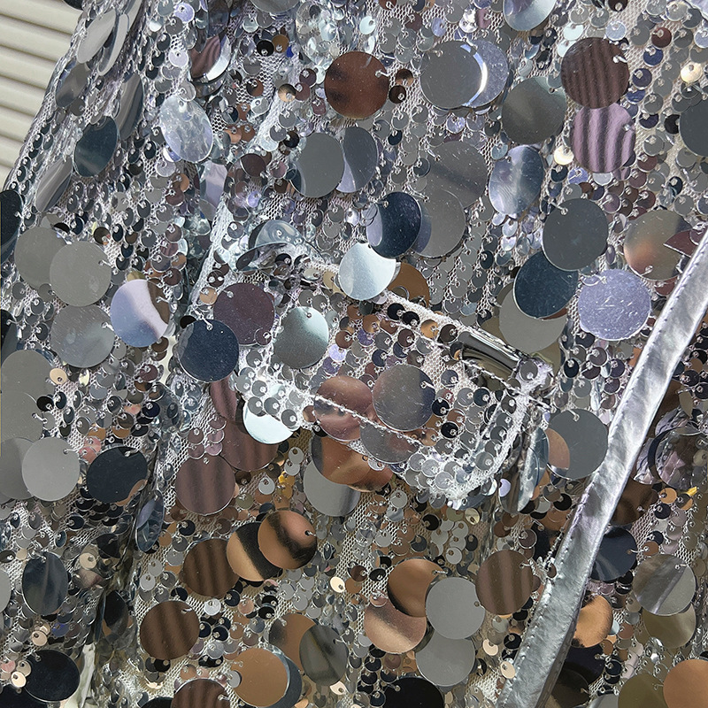 소녀의 봄과 가을 새로운 둥근 목 긴 소매 반짝 무거운 산업 스퀸 재킷 유럽과 미국 스타일 패션 실버 어린이 자켓