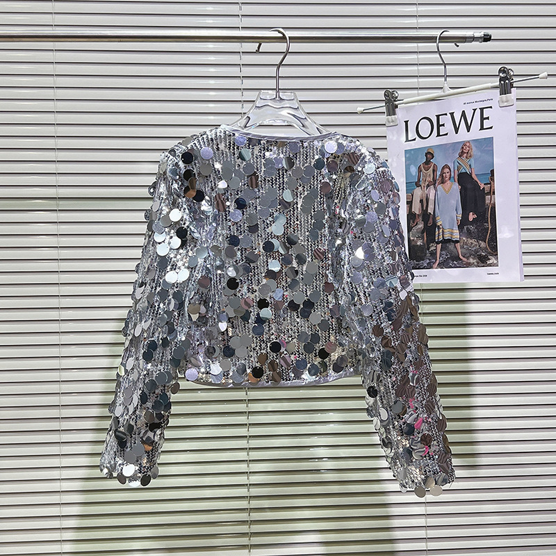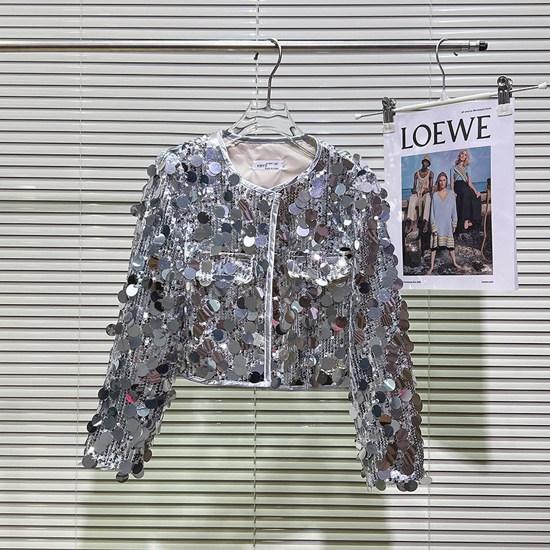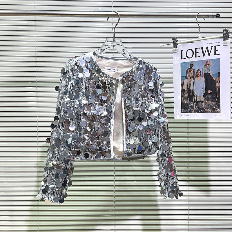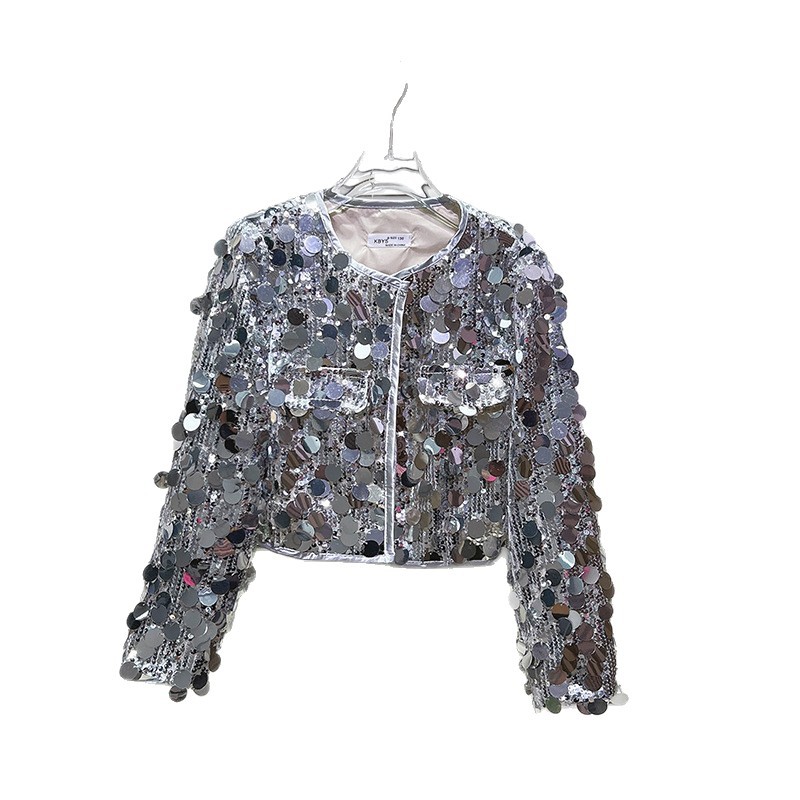 소녀의 봄과 가을 새로운 둥근 목 긴 소매 반짝 무거운 산업 스퀸 재킷 유럽과 미국 스타일 패션 실버 어린이 자켓스토어 가기