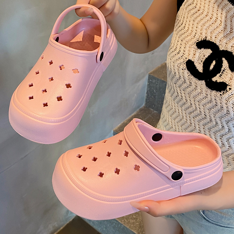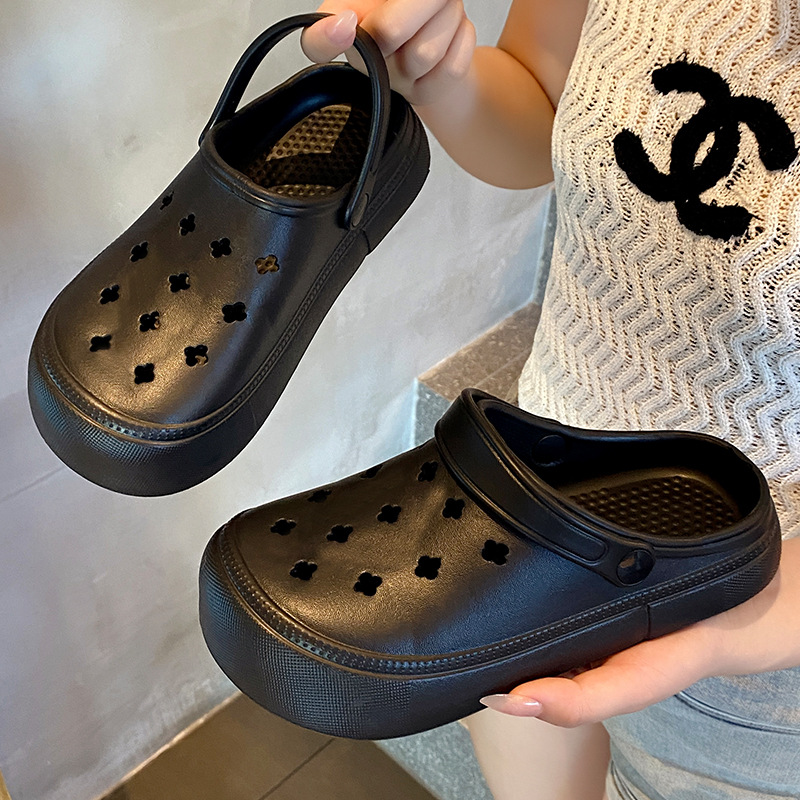 샌들 슬리퍼 여성의 여름 작업 착용 2024 새로운 두꺼운 단독 증가 미끄럼 방지 새 의상 구멍 신발 여성 여름스토어 가기