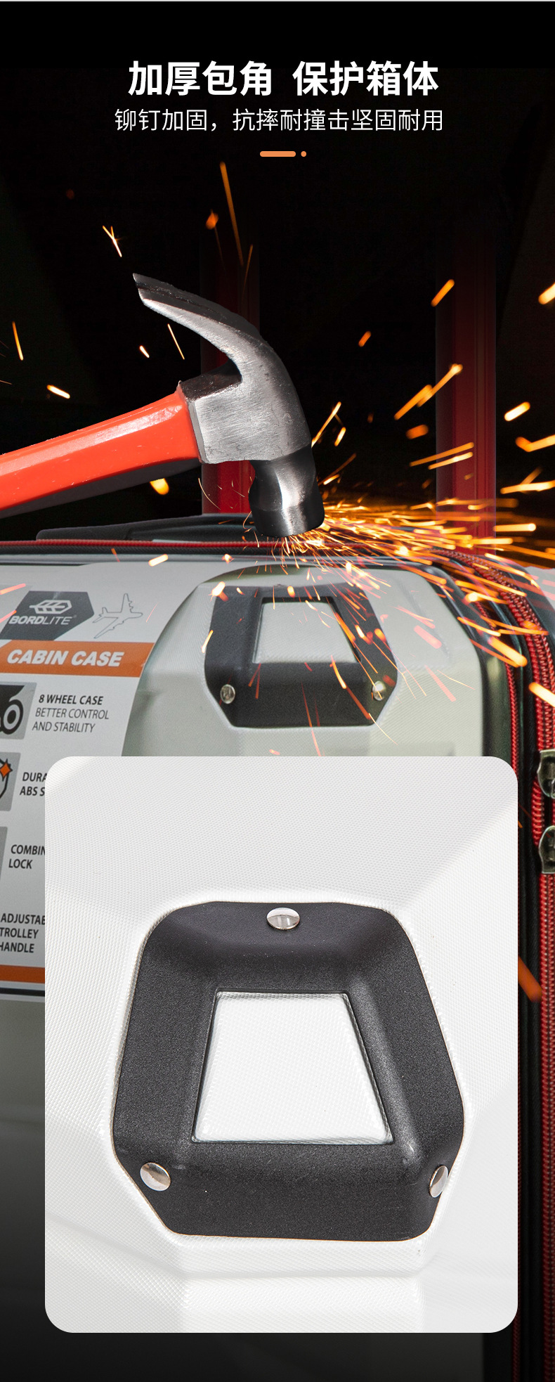 防暴拉链框架支撑PC材质箱体,搭配防撞底座使箱体更加结实,抗压耐摔,防止刮花,暴力撞击