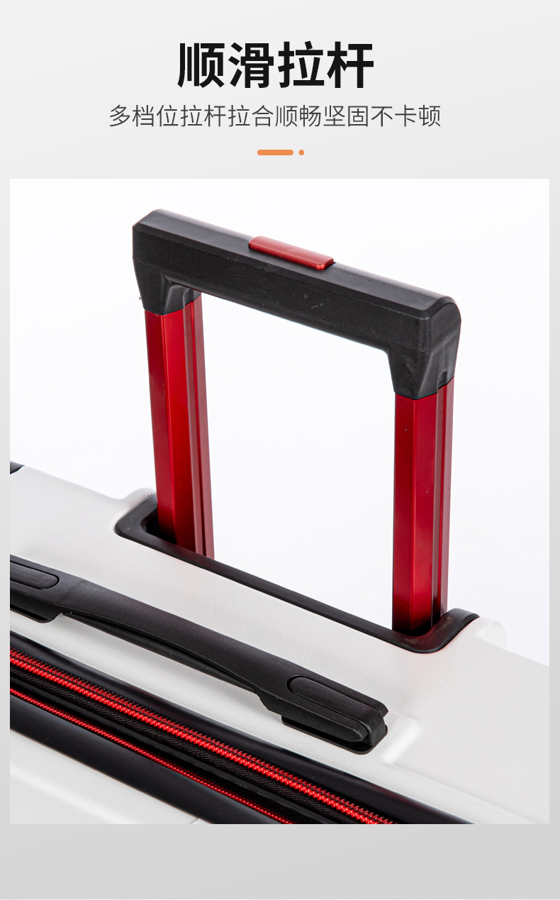 拉杆采用加厚铝合金,坚固不易断裂,三档调节,适用于不同身高以及场景,回拉震荡测试500次合格