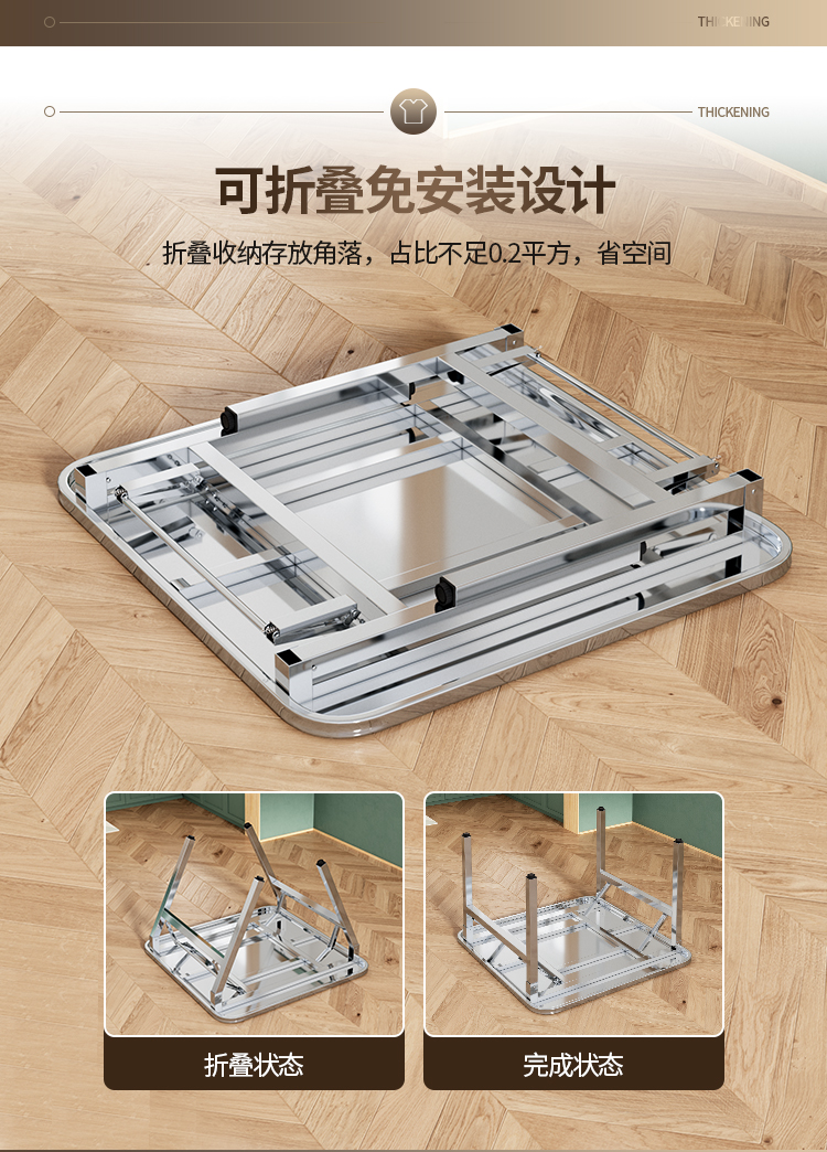 • *두꺼운 부티크 브러시 표면 1m 평방 미터 높이 72cm 내부 접이식 테이블
