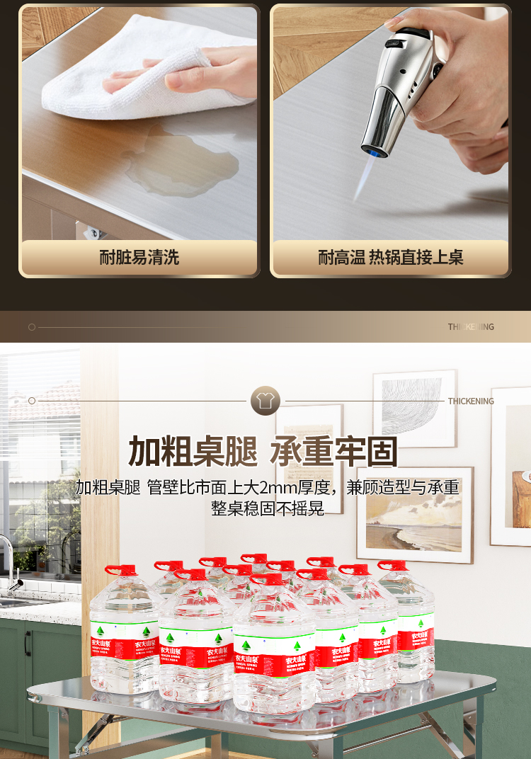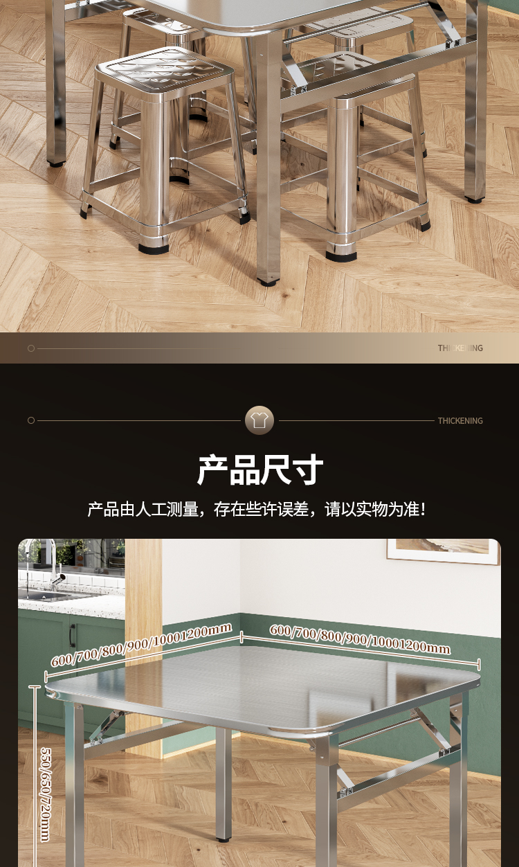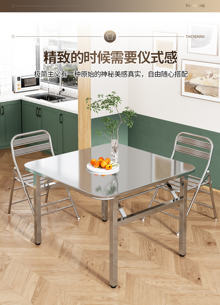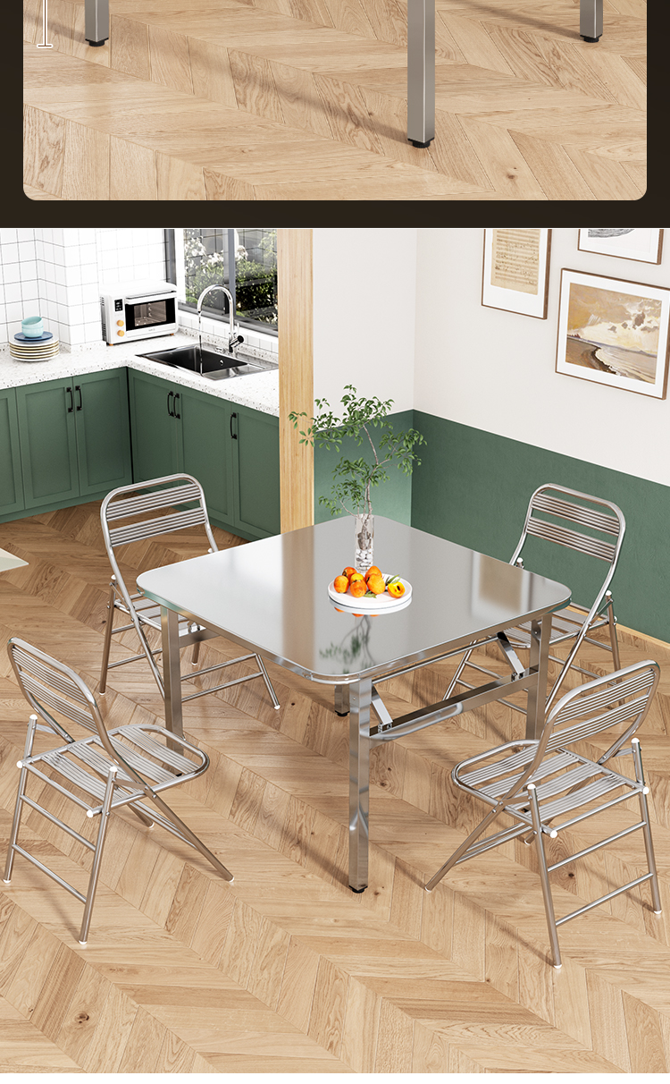 두꺼운 스테인레스 스틸 접이식 테이블 가정용 레스토랑 야외 야시장 스톨 스퀘어 테이블 휴대용 테이블 테이블 및 의자 식탁