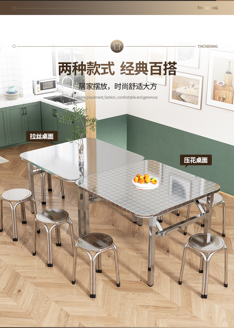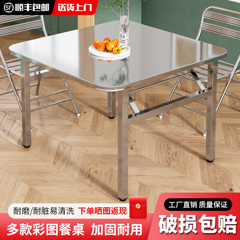 두꺼운 스테인레스 스틸 접이식 테이블 가정용 레스토랑 야외 야시장 스톨 스퀘어 테이블 휴대용 테이블 테이블 및 의자 식탁스토어 가기