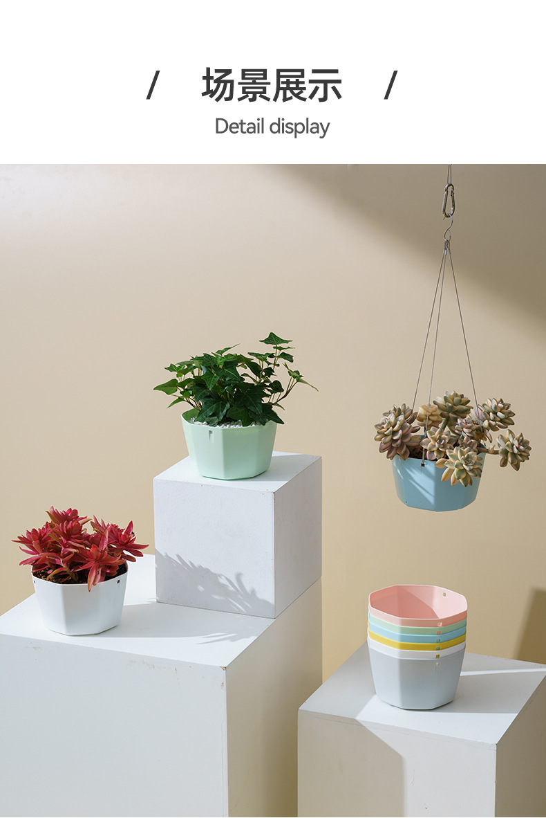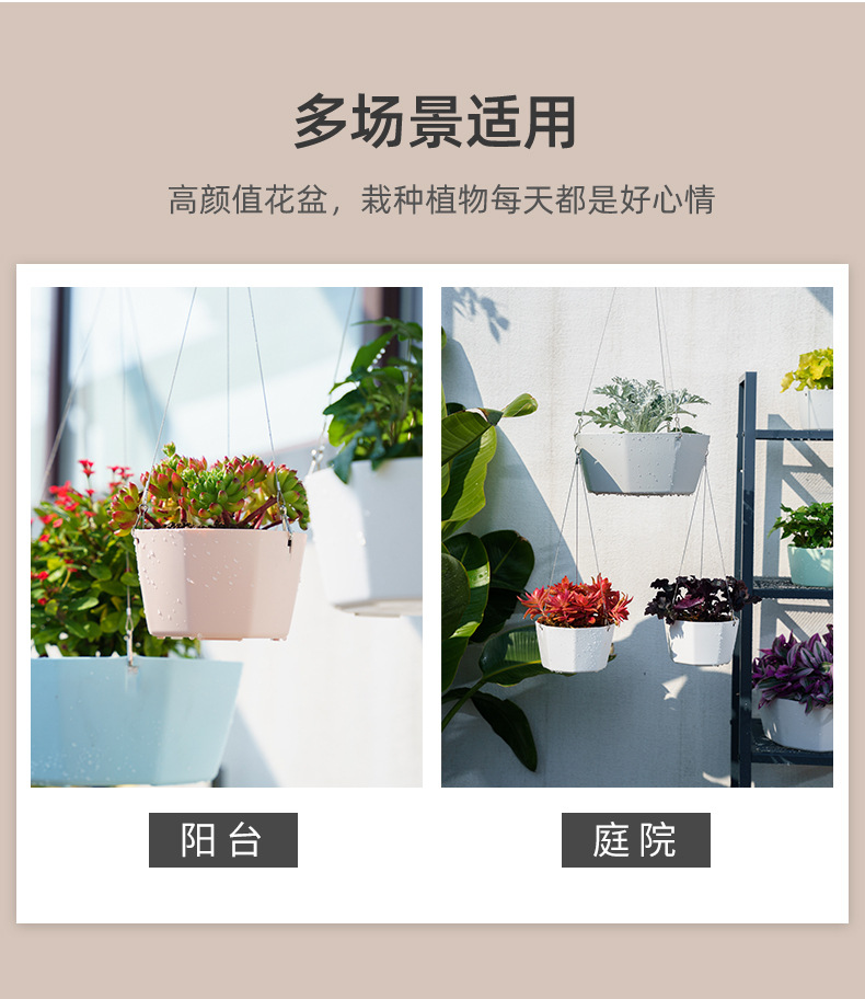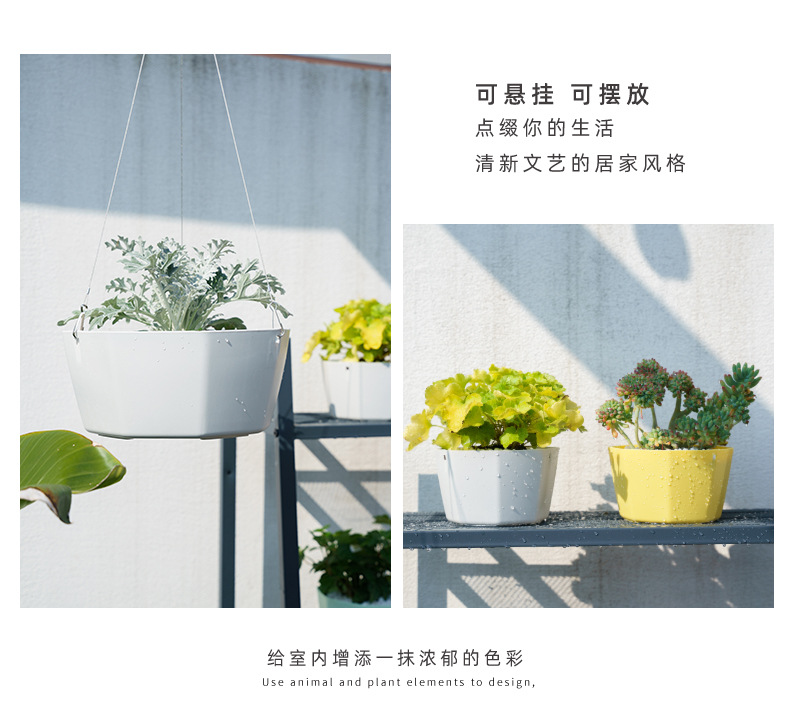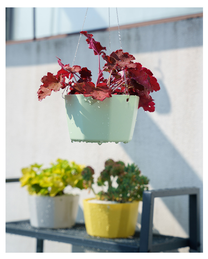 북유럽 스타일 플라스틱 교수형 분지 교수형 바구니 꽃 냄비 초대형 가정용 발코니 게으른 녹색 심기 자체 흡수성 교수형 분지스토어 가기