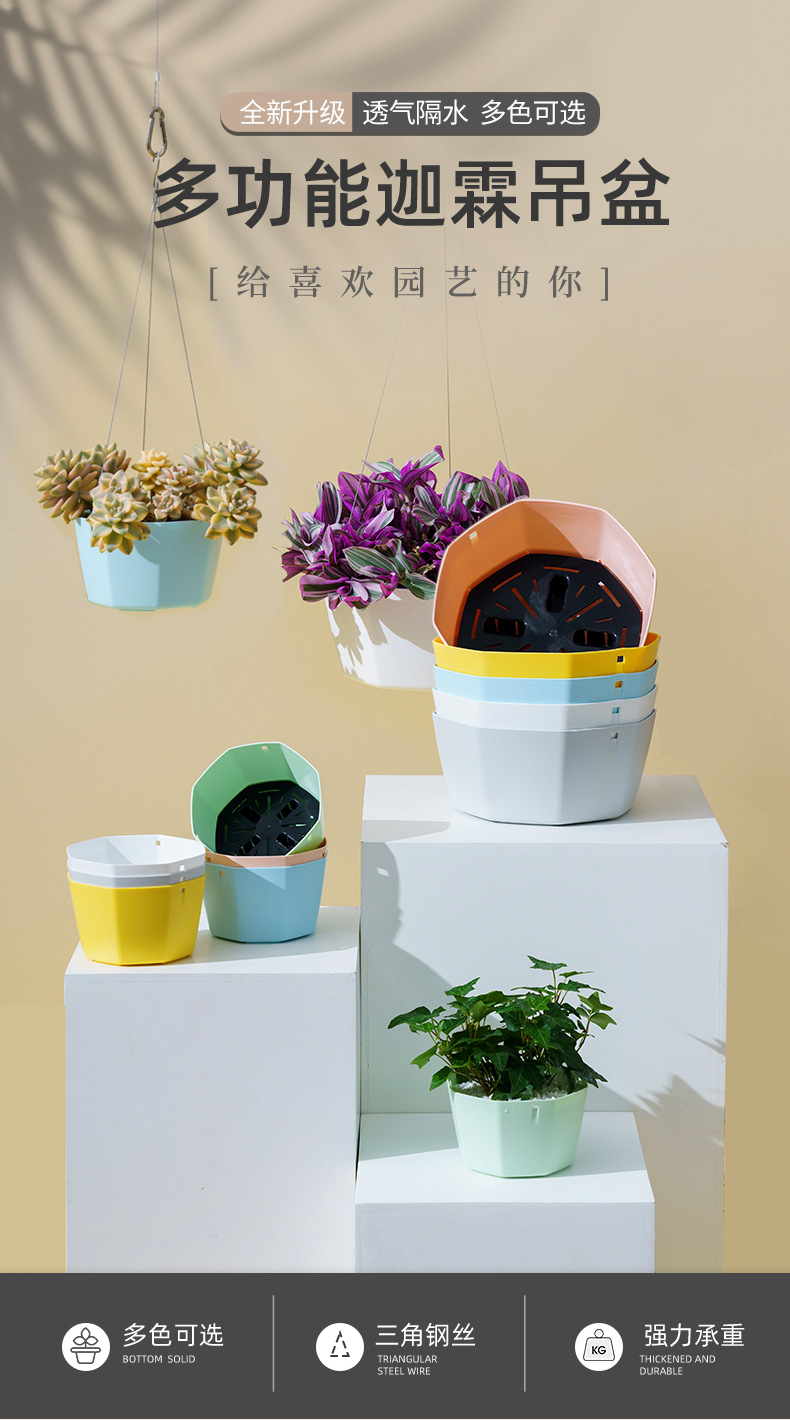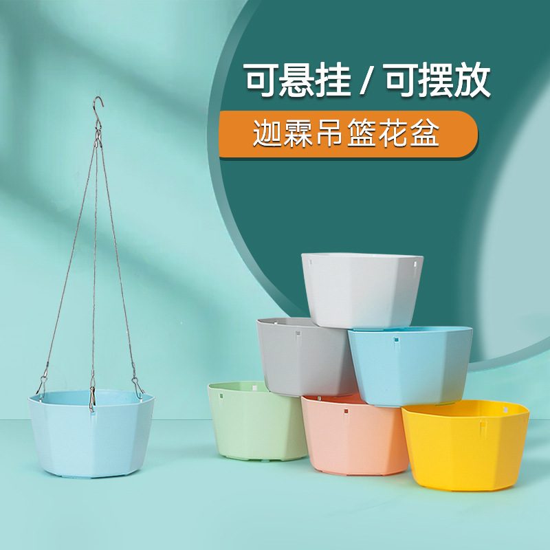 북유럽 스타일 플라스틱 교수형 분지 교수형 바구니 꽃 냄비 초대형 가정용 발코니 게으른 녹색 심기 자체 흡수성 교수형 분지
