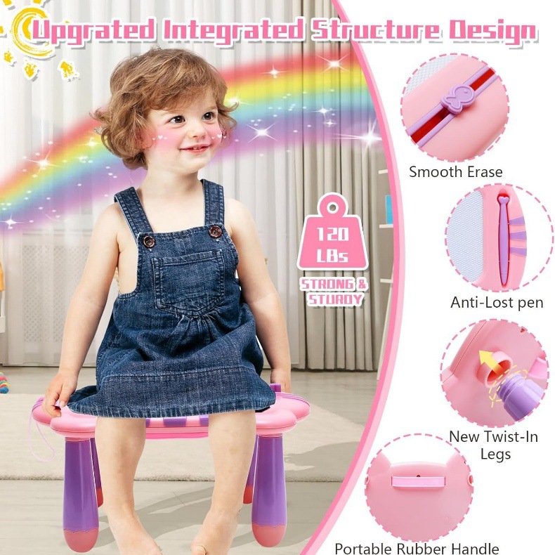 高品质圆柱形可拆卸腿,承重120磅。螺旋槽设计稳定,不易脱落断裂。当宝宝踩在或坐在绘图板上时,可以完全承受,不会折断,避免了伤害。
