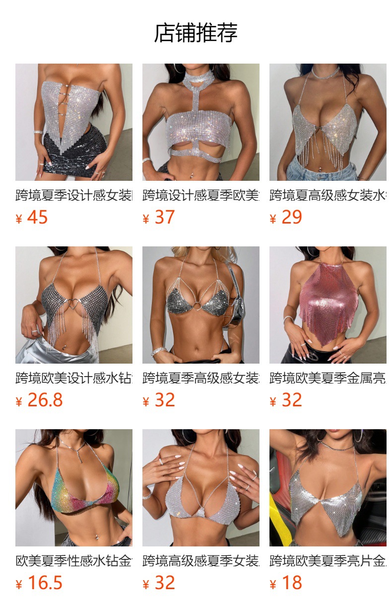 국경 간 미국식 핫 탑 여성 하이 엔드 라인스톤 메탈 카미솔 아우터 섹시한 핫 걸 민소매 탑스토어 가기