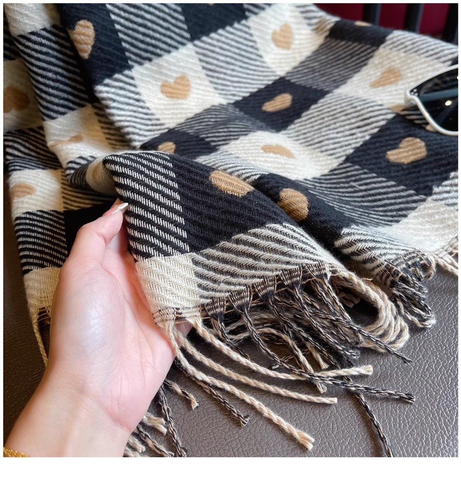 가을과 겨울 새로운 캐시미어 러브 체크 무늬 스카프 겨울 두꺼운 따뜻한 패션 올 매치 니트 스카프 목도리스토어 가기