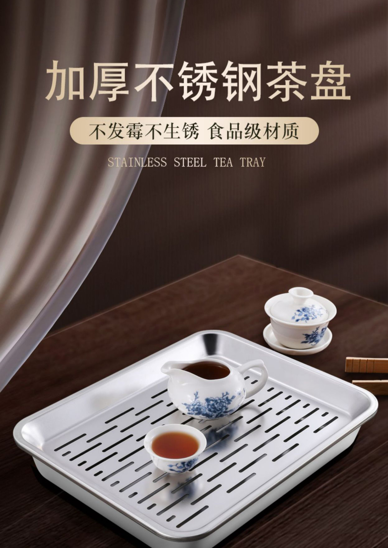 두꺼운 스테인레스 스틸 차 트레이 직사각형 배수 트레이 가정용 쿵푸 티 트레이 워터 필터 트레이 티 세트 작은 차 트레이