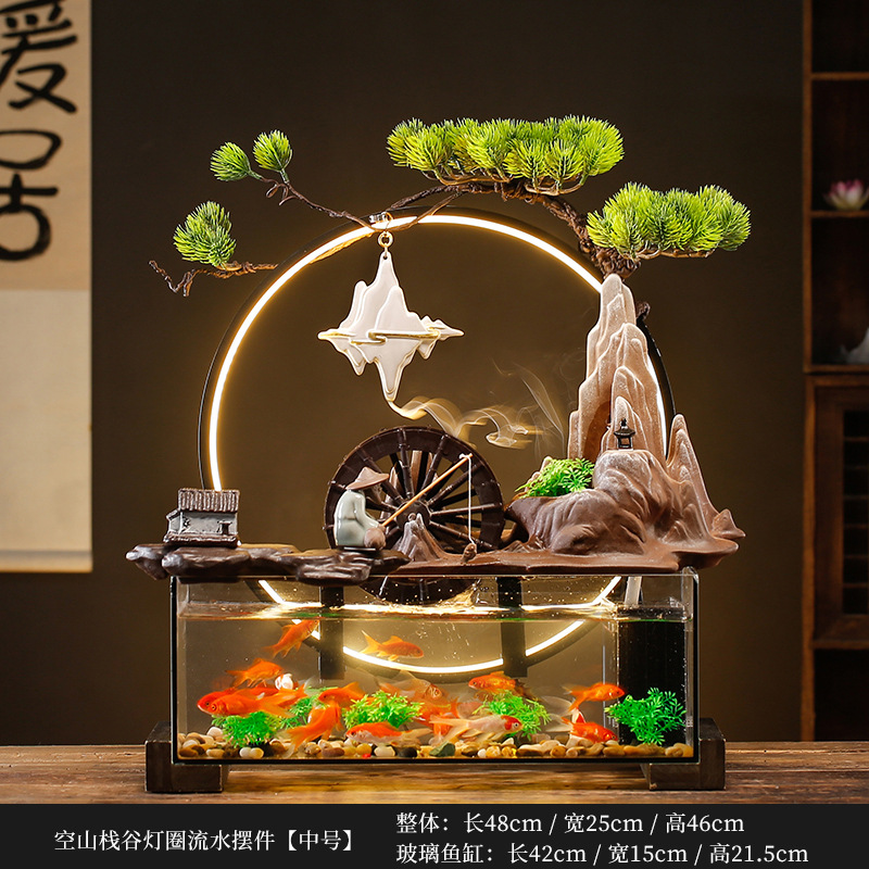 흐르는 물 장식품 순환 물 모집 가짜 Caicang 거실 caichan 분수 생 물고기 중국 스타일 홈 장식 사무실 바탕 화면