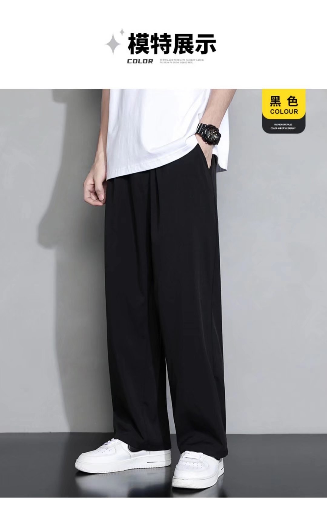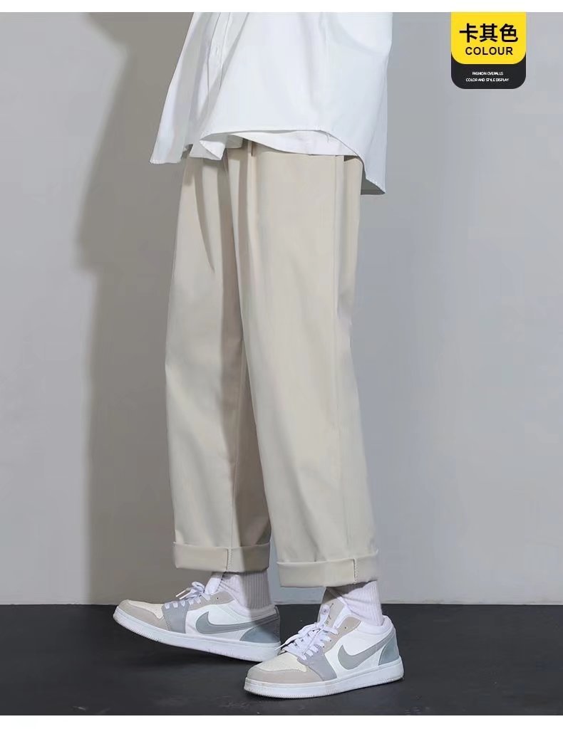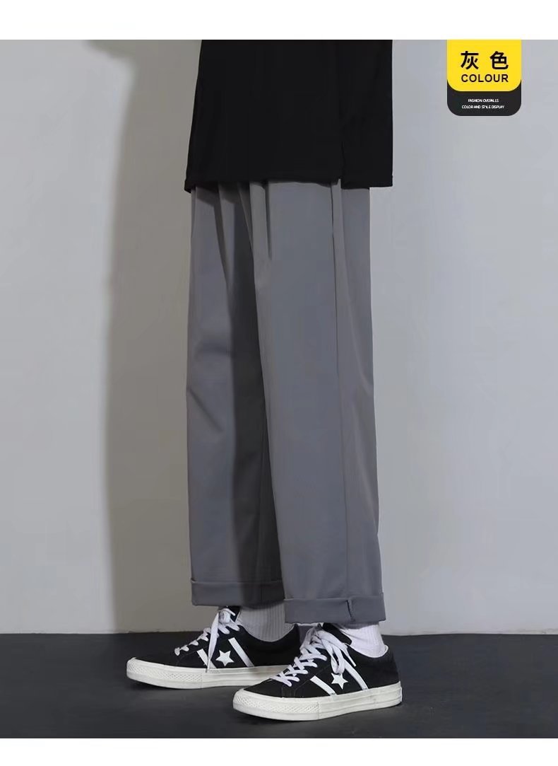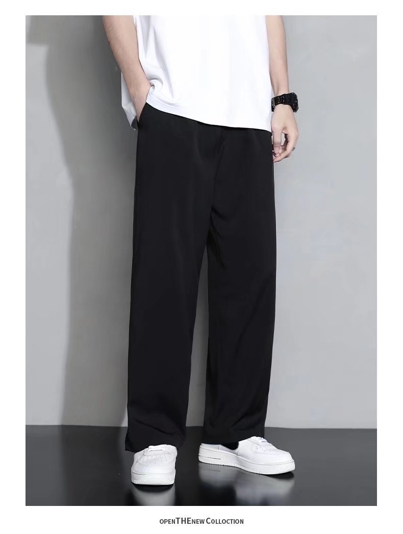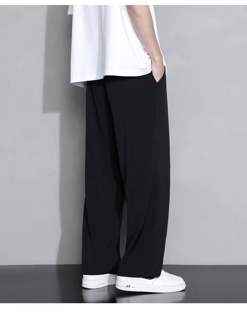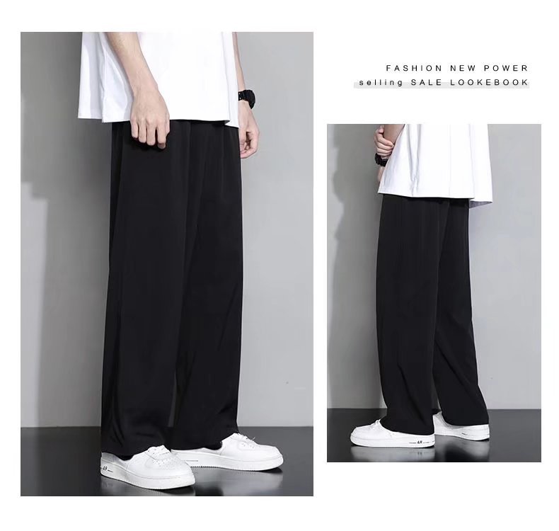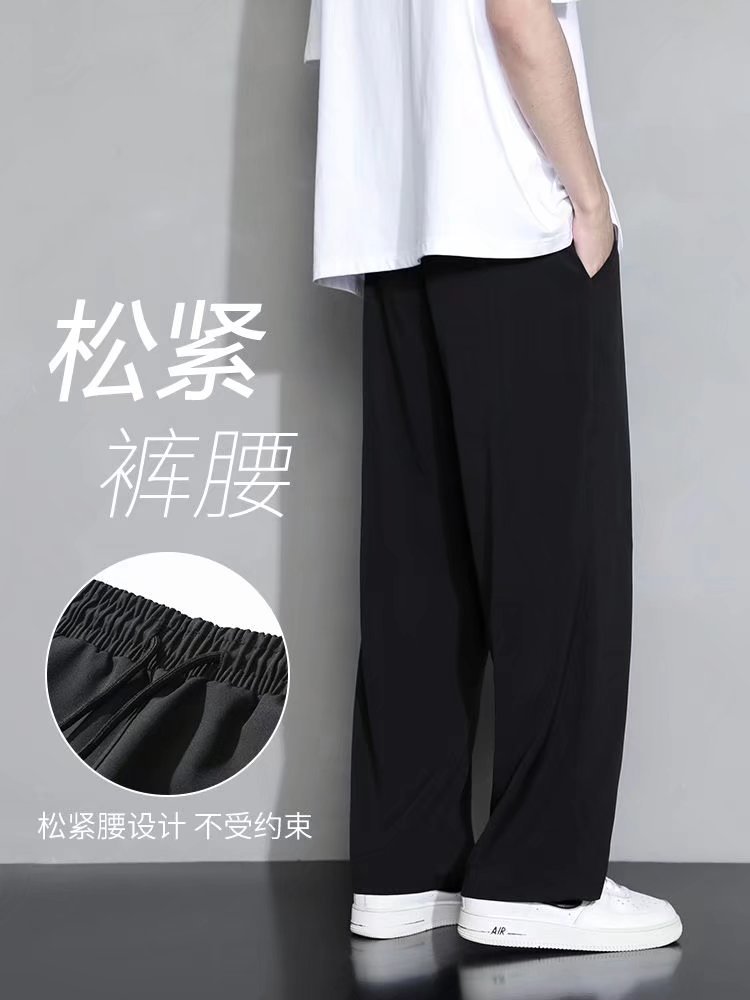 2024 아이스 실크 바지 남자 여름 한국식 패셔너블 펜던트 캐주얼 바지 커플의 넓은 다리 바지 프라이드 스트리트 남성복스토어 가기