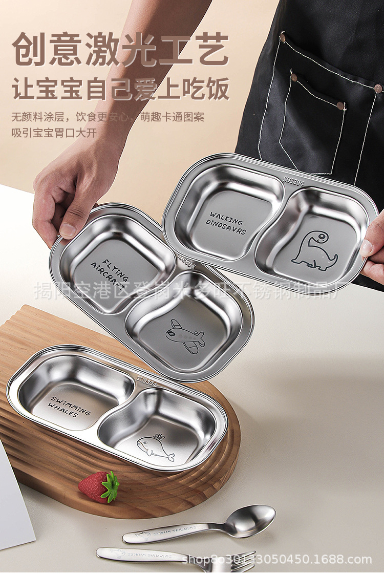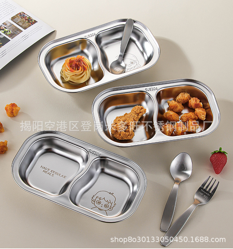 304 스테인레스 스틸 어린이 디너 플레이트 가구 다이닝 분리 된 접시 베이비 푸드 플레이트 베이비 식기 과일 플레이트스토어 가기
