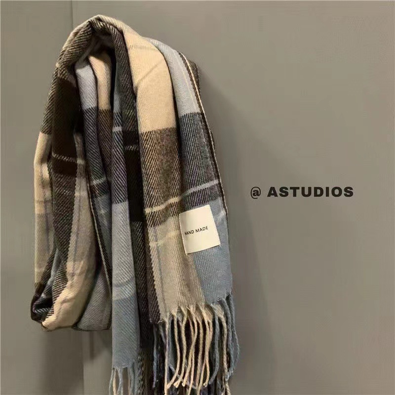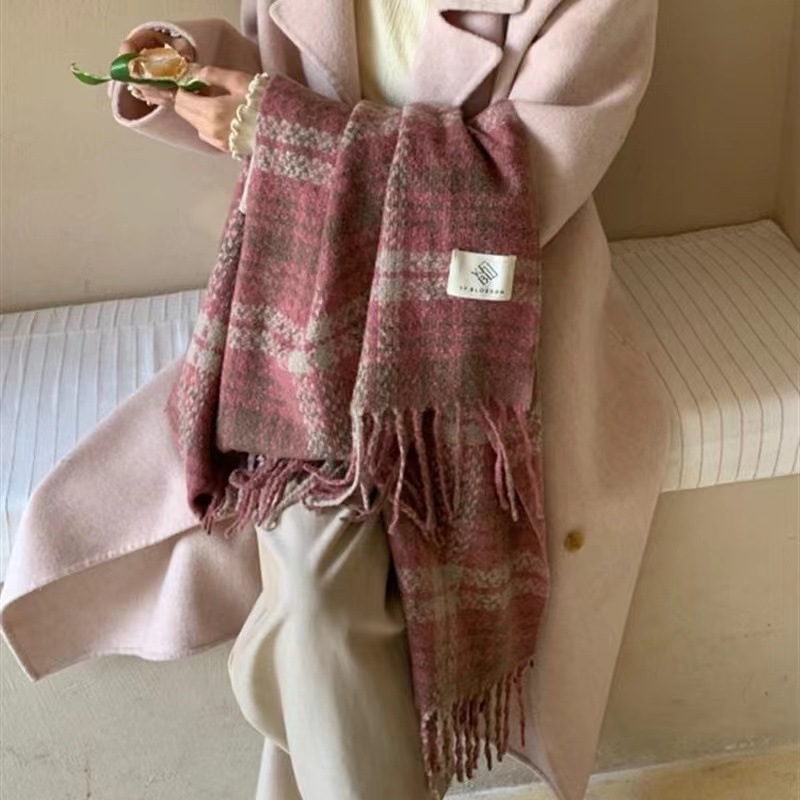 여성을 위한 한국 스타일의 격자 무늬 스카프, 따뜻하고 건조한 로즈 핑크, 흰색, 부드러운 술 숄과 스카프, 트렌디하고 다재다능함스토어 가기