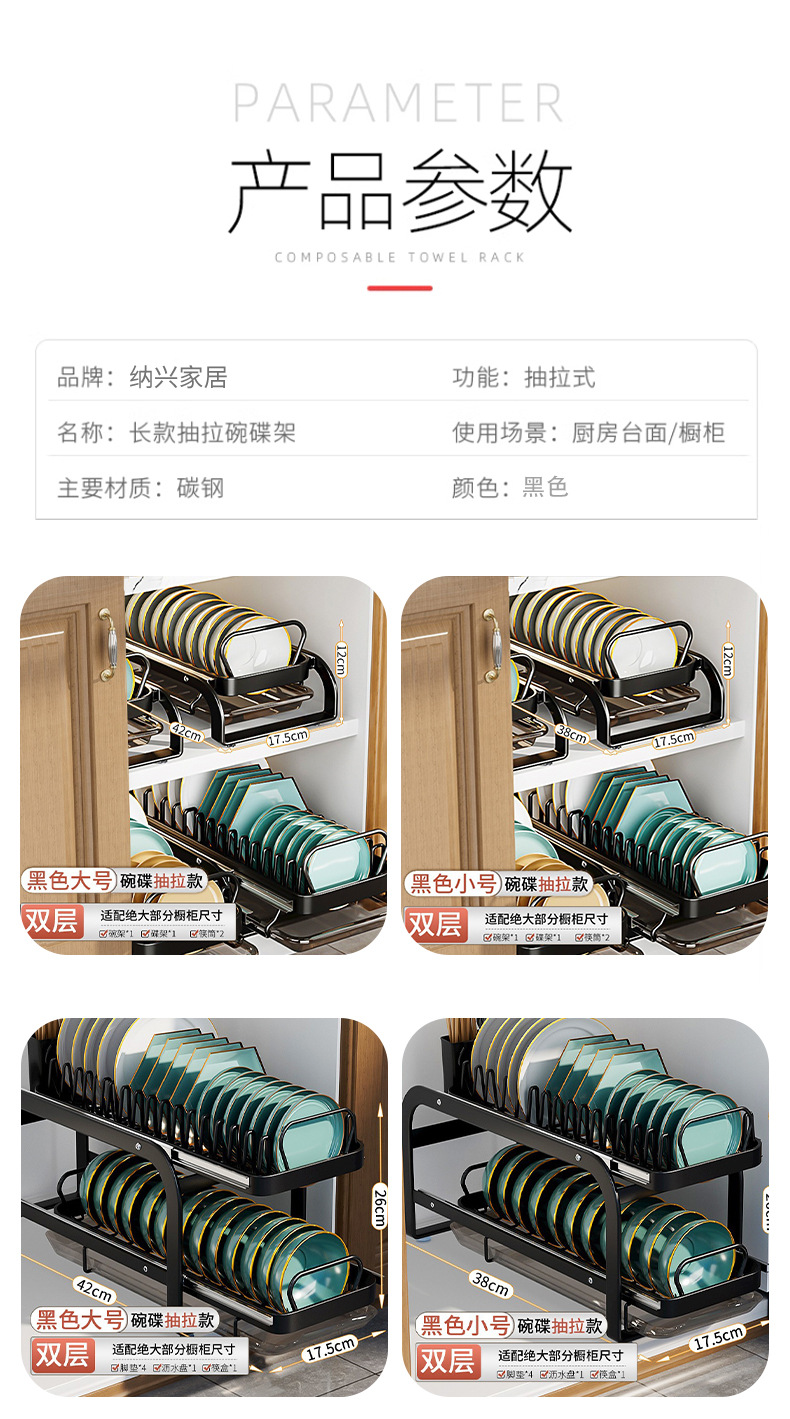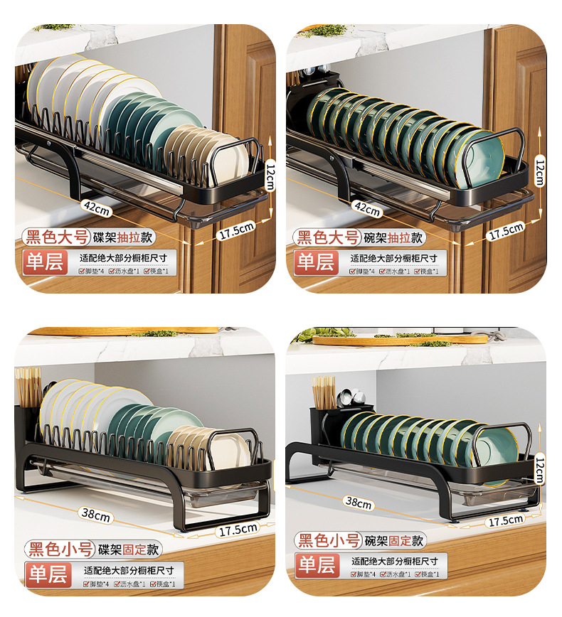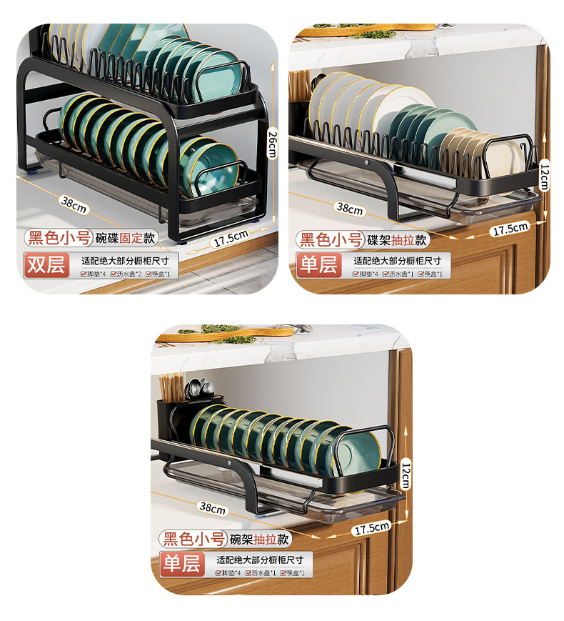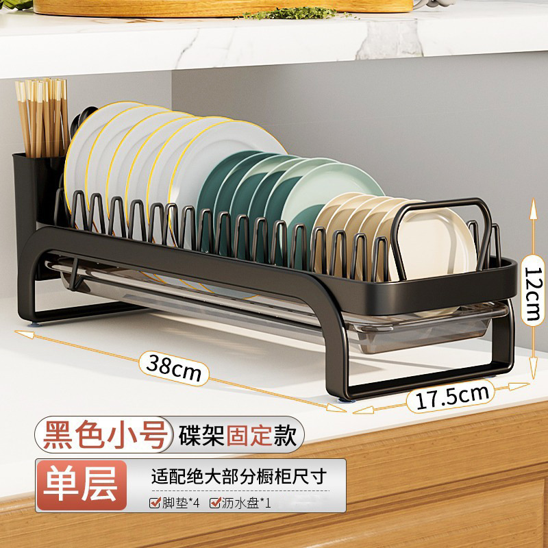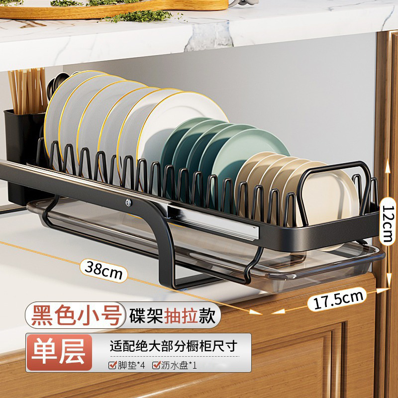 접시 보관 랙 우아한 검은 가정용 주방 펀치 프리 식기 보관 랙 캐비닛 서랍 랙스토어 가기