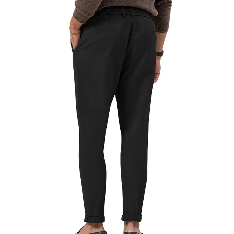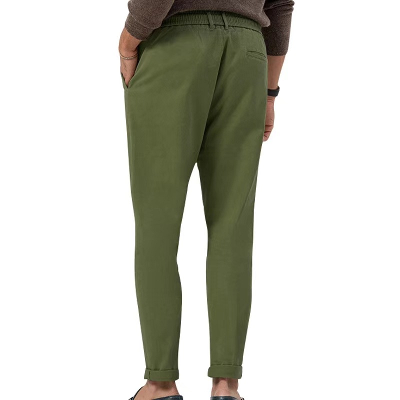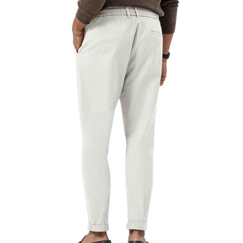 유럽과 미국의 남성복, 새로운 스타일의 남성 면마 긴바지, 캐주얼 바지, 비즈니스 캐주얼, 단색, 사계절 통근용 남성 긴바지