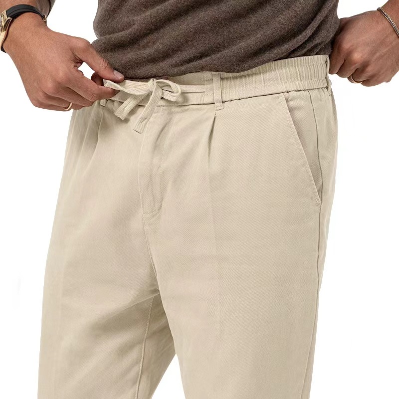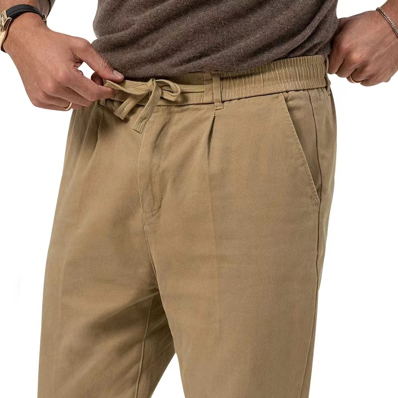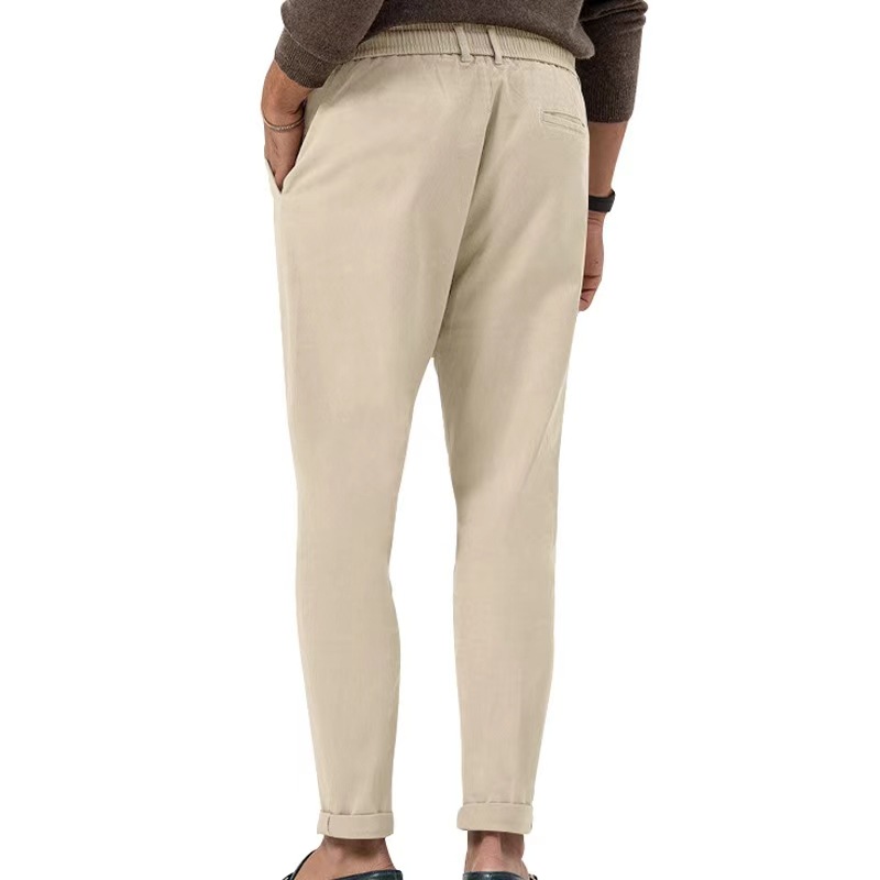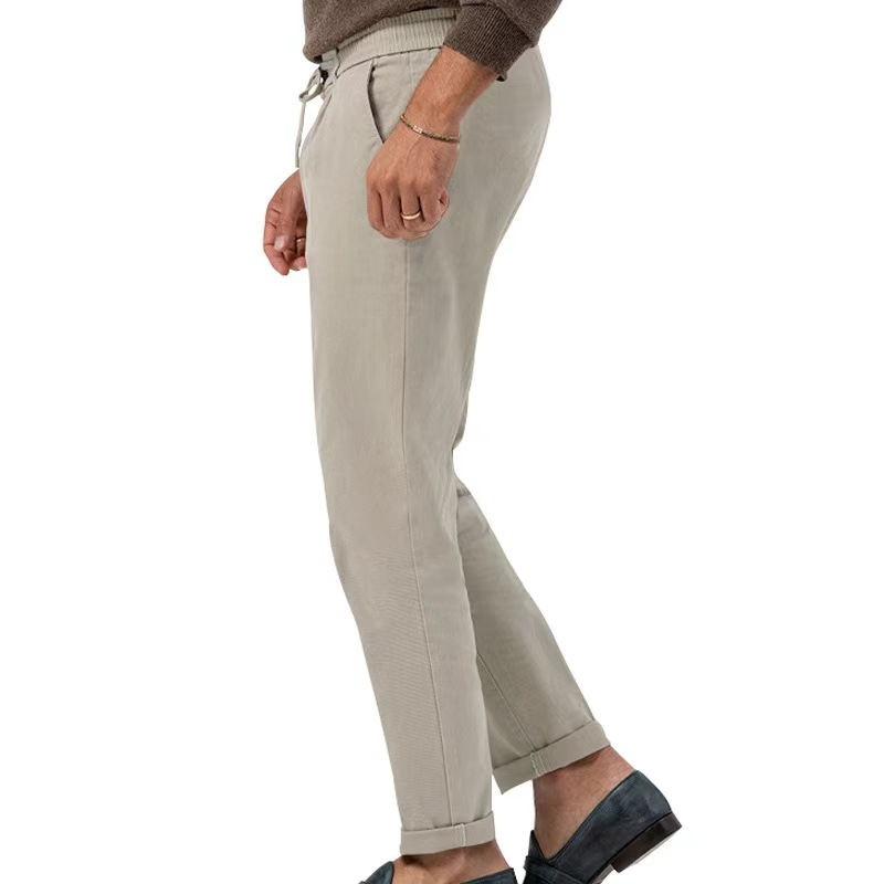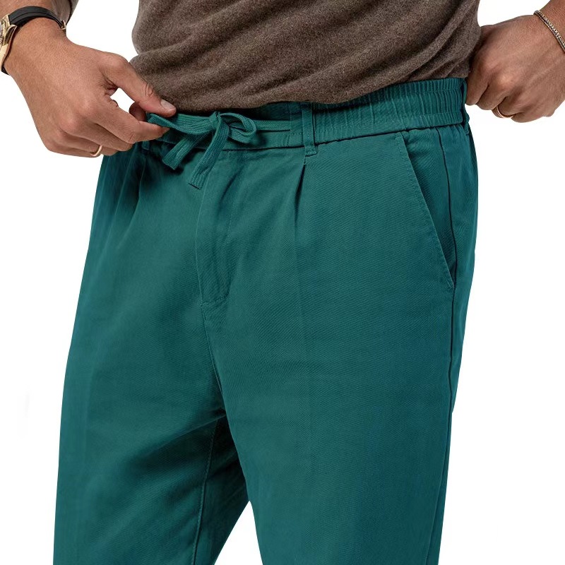 유럽과 미국의 남성복, 새로운 스타일의 남성 면마 긴바지, 캐주얼 바지, 비즈니스 캐주얼, 단색, 사계절 통근용 남성 긴바지스토어 가기