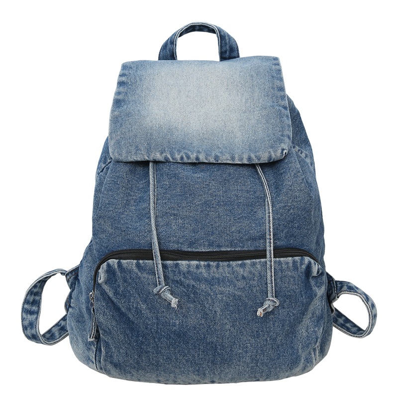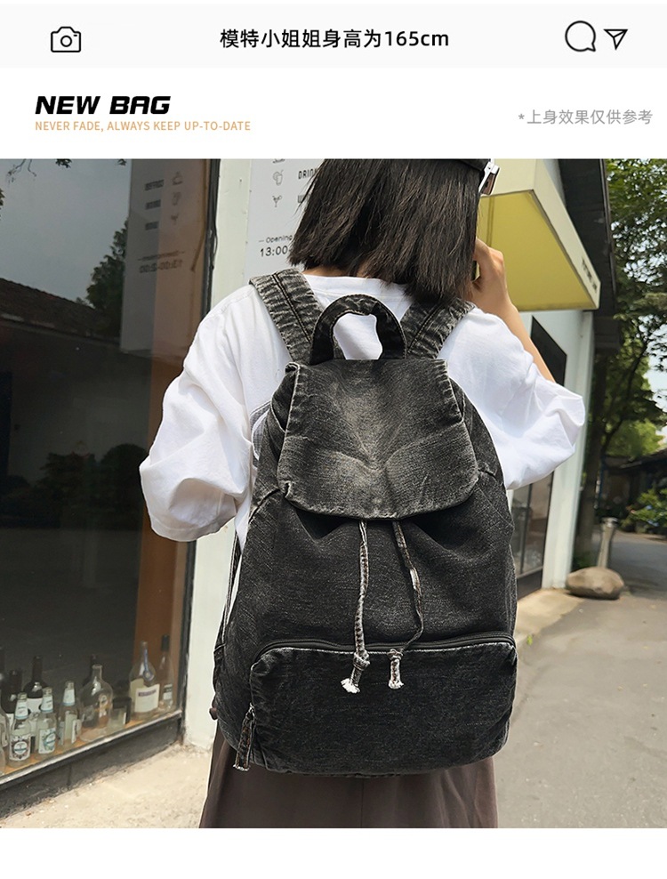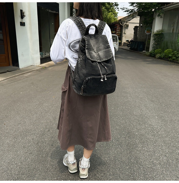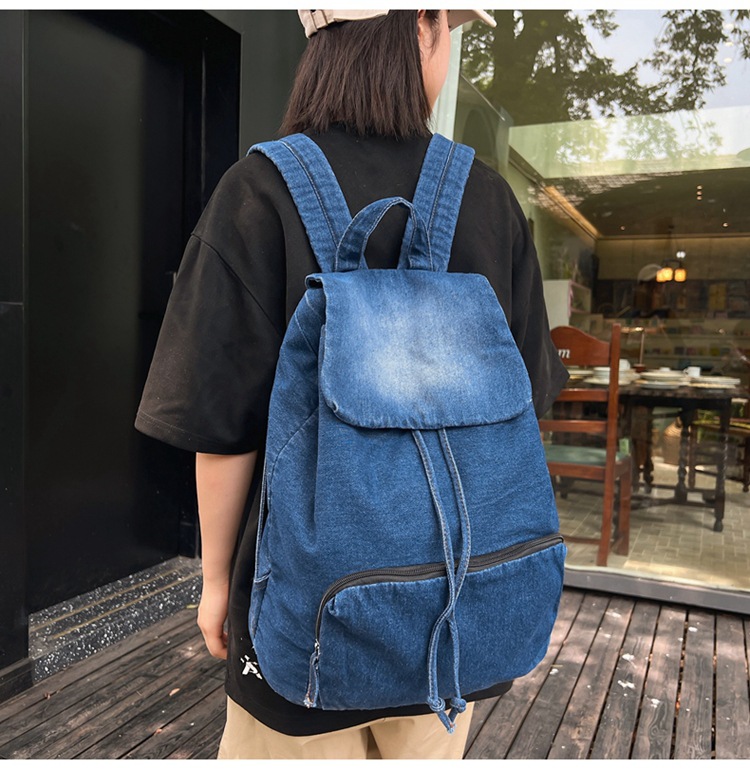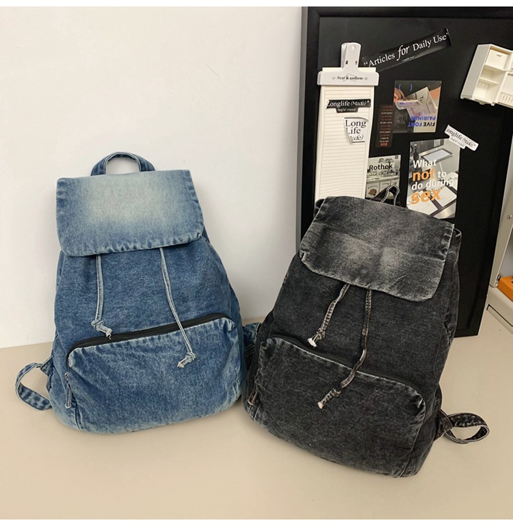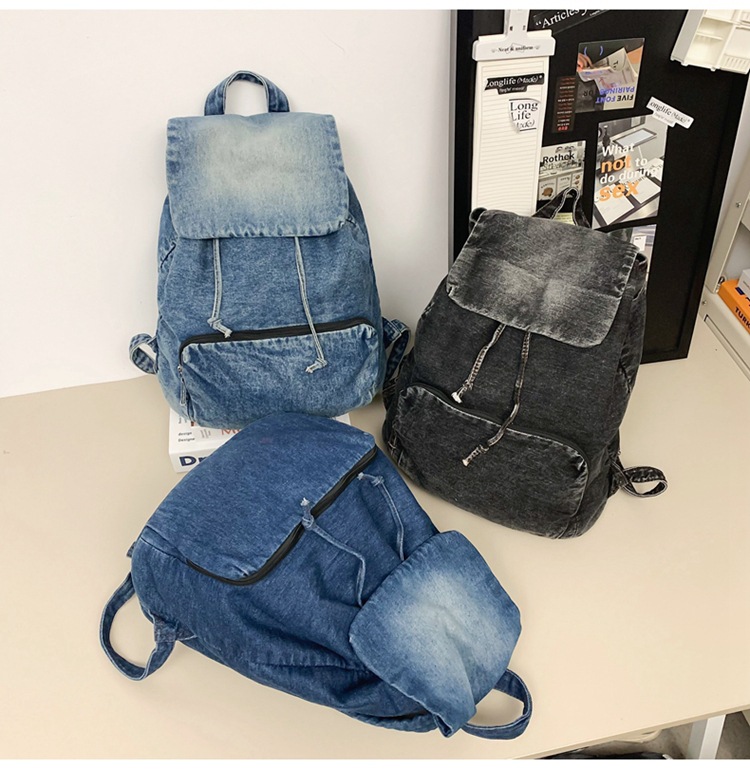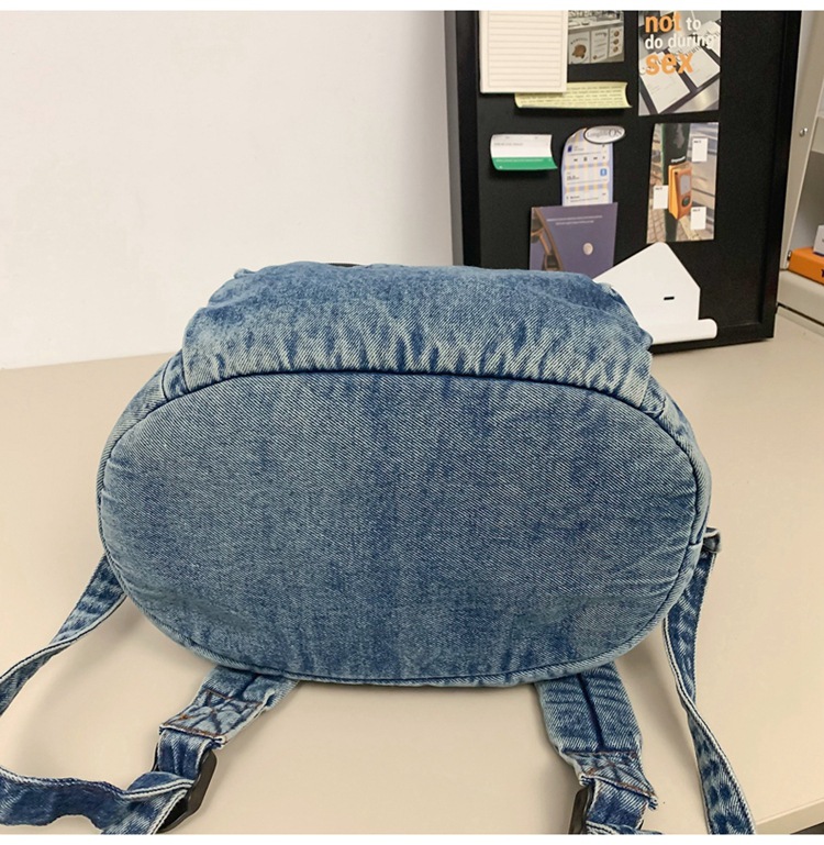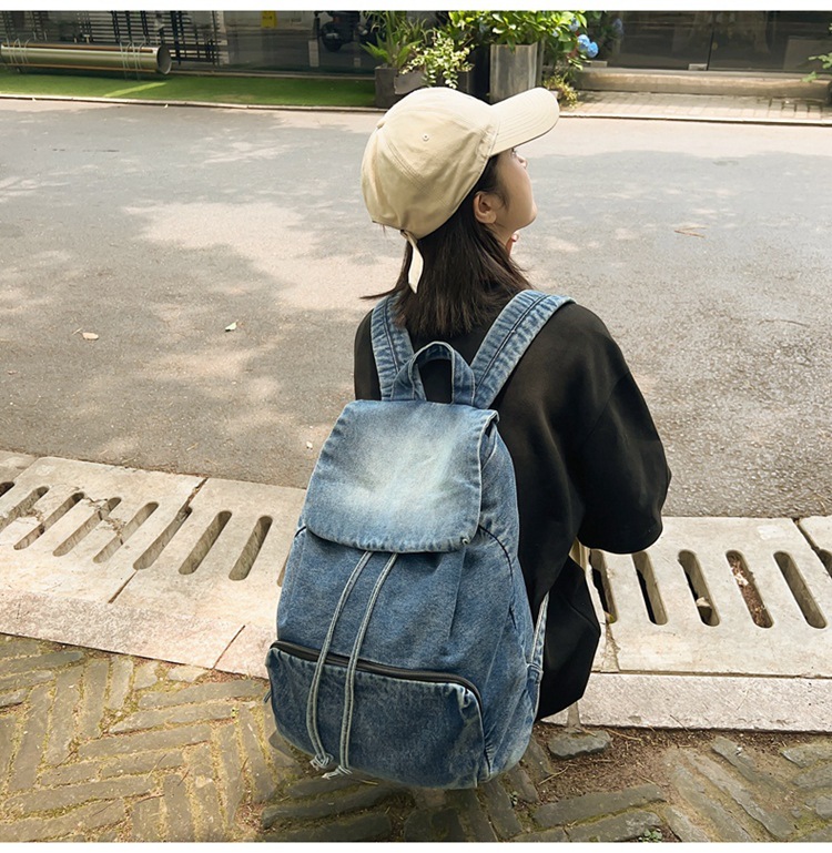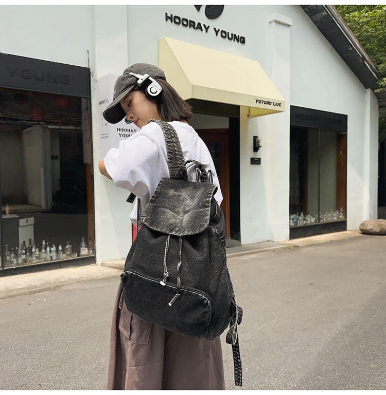 데님 캔버스 가방 여성 Ins 일본식 하라주쿠 툴링 백팩 한국 간단한 단색 학생 여행 배낭