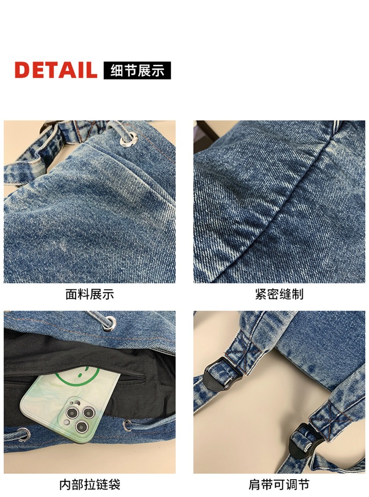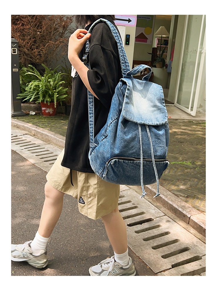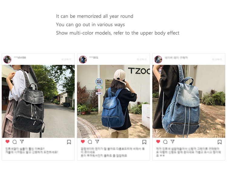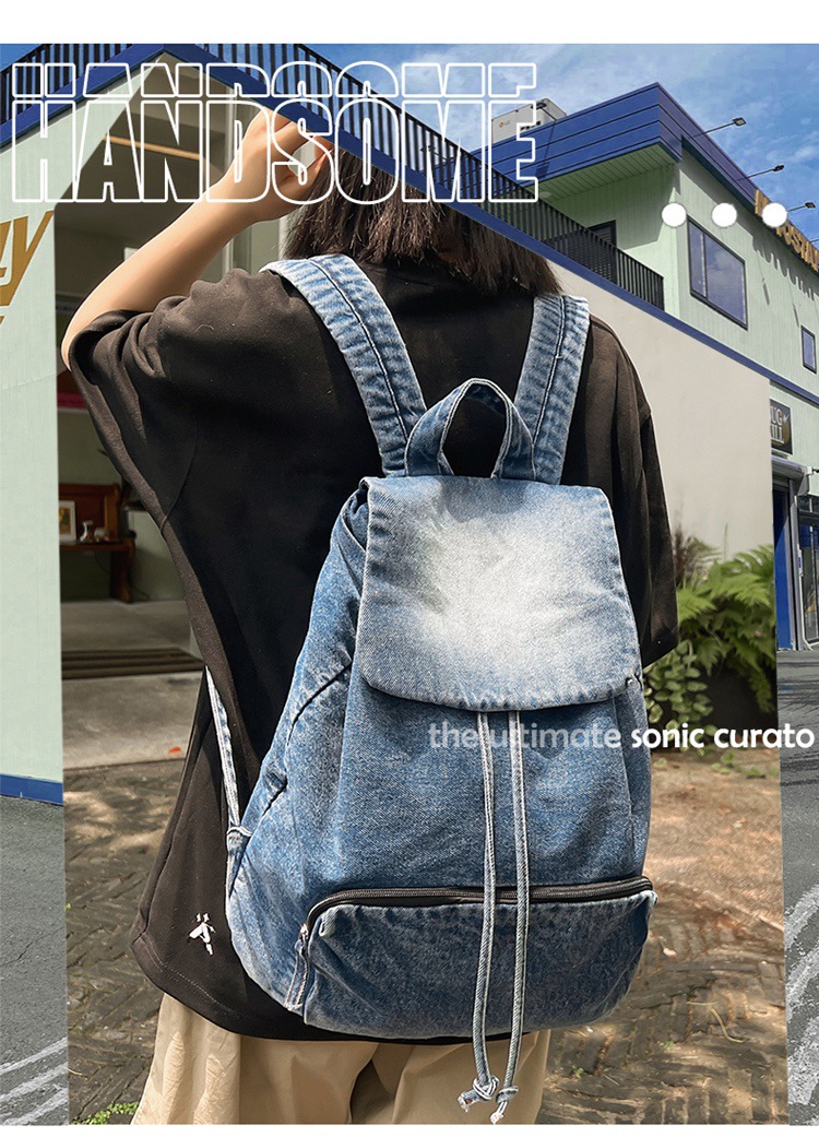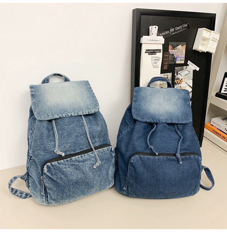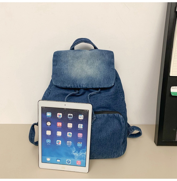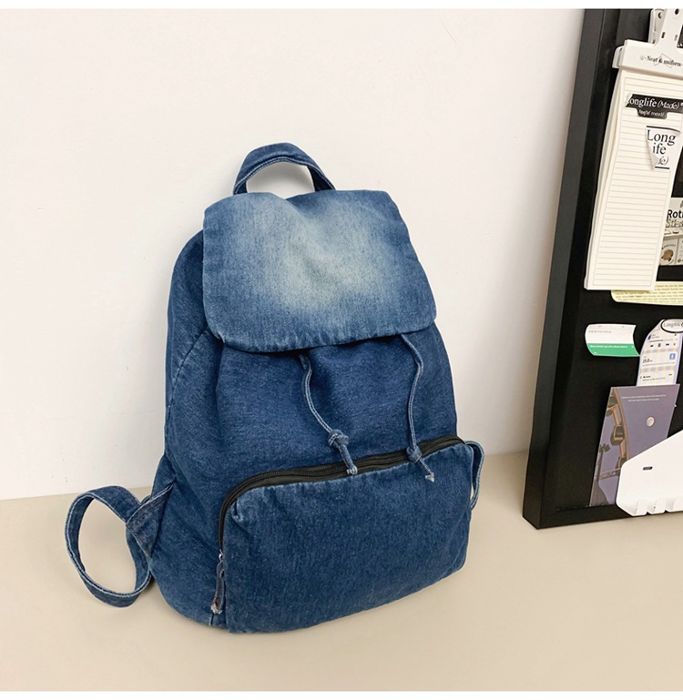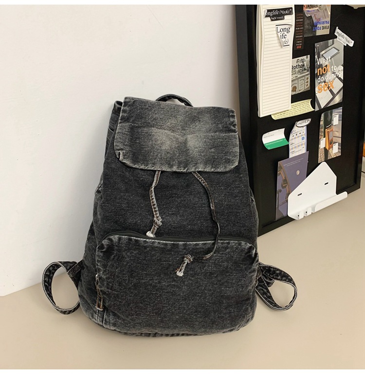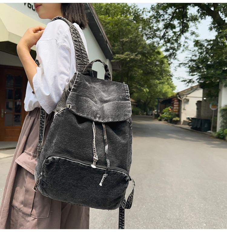 데님 캔버스 가방 여성 Ins 일본식 하라주쿠 툴링 백팩 한국 간단한 단색 학생 여행 배낭