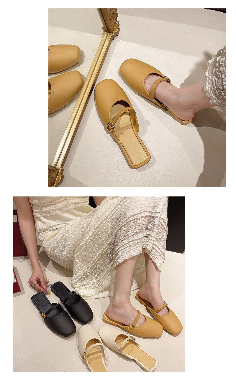 반 슬리퍼 여성용 2024 레트로 작은 광장 발가락 플랫 발가락 슬리퍼 부드러운 요정 스타일 세련된 아웃웨어 게으른 사람들의 신발스토어 가기
