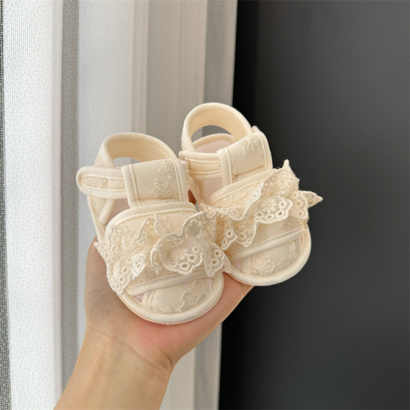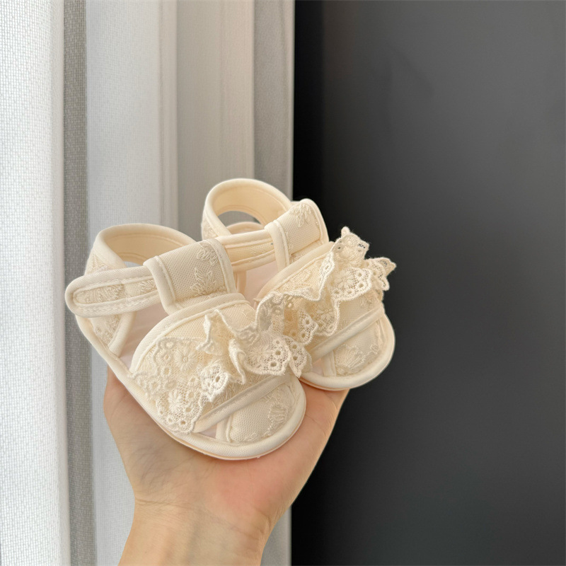 아기 샌들 여름 아기 소녀 공주 면화 부드러운 밑창 유아 신발 미끄럼 방지 3-6-12 개월 헝겊 신발은 접히지 않습니다