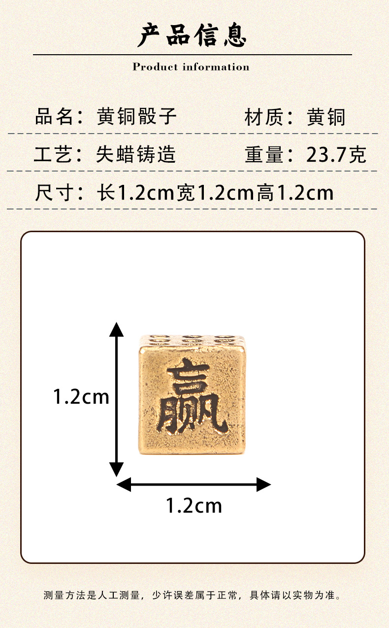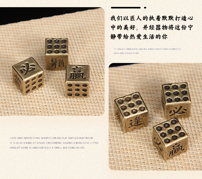 황동 솔리드 미니 주사위 이우 창의적인 장식품 빈티지 스타일 데스크탑 장식품 제조업체 도매 구리 제품스토어 가기
