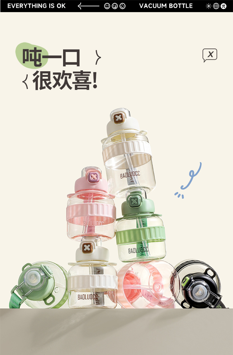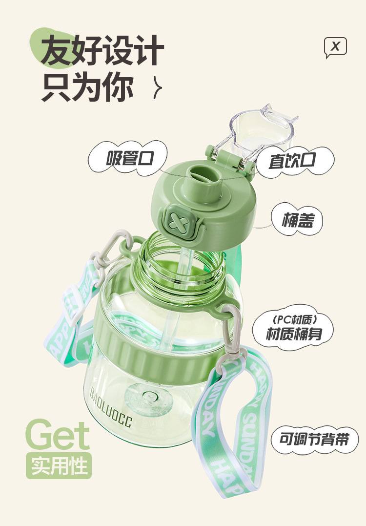물컵, 대용량 물통, 스포츠, 피트니스, 남녀 학생용, 플라스틱, 스페이스 병, 대용량 물컵, 초대형 용량, 빨대 포함