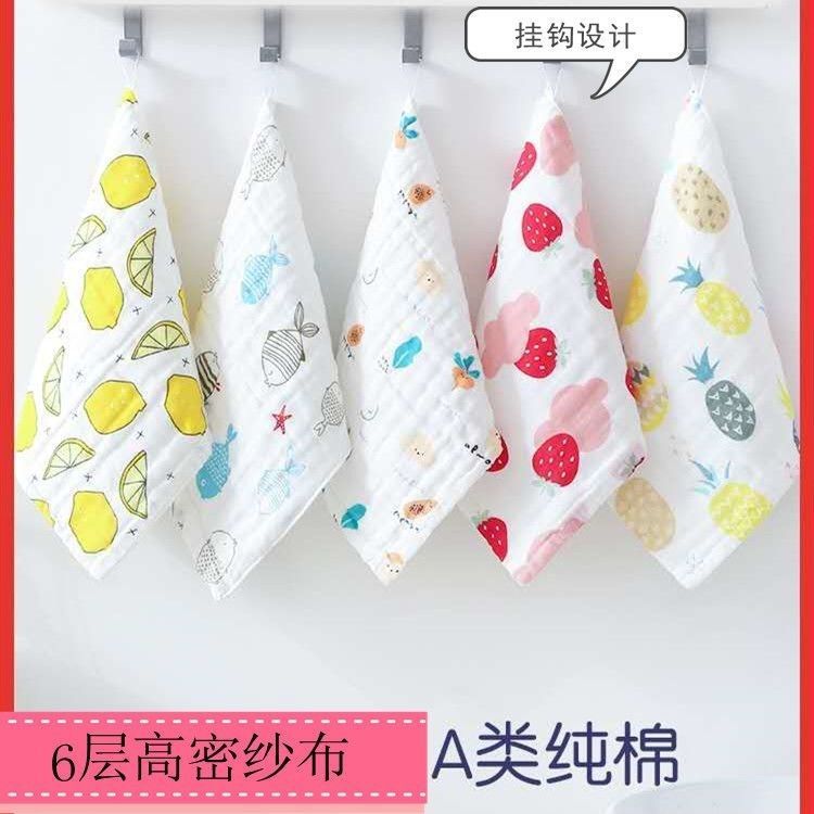 면 광장 수건 6 층 침 수건 고밀도 어린이 면 작은 수건 주름 인쇄 손수건 닦은 수건