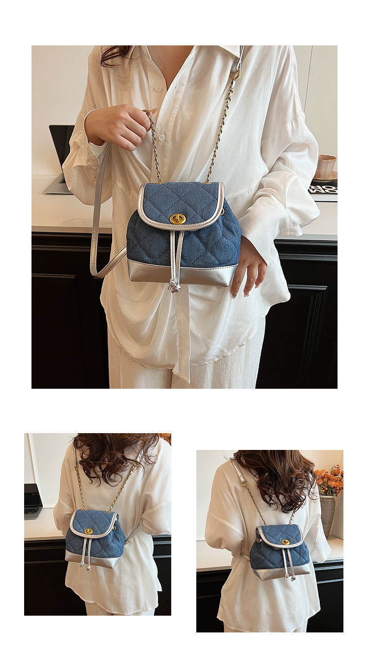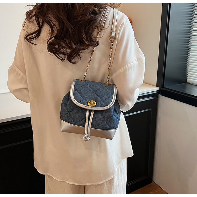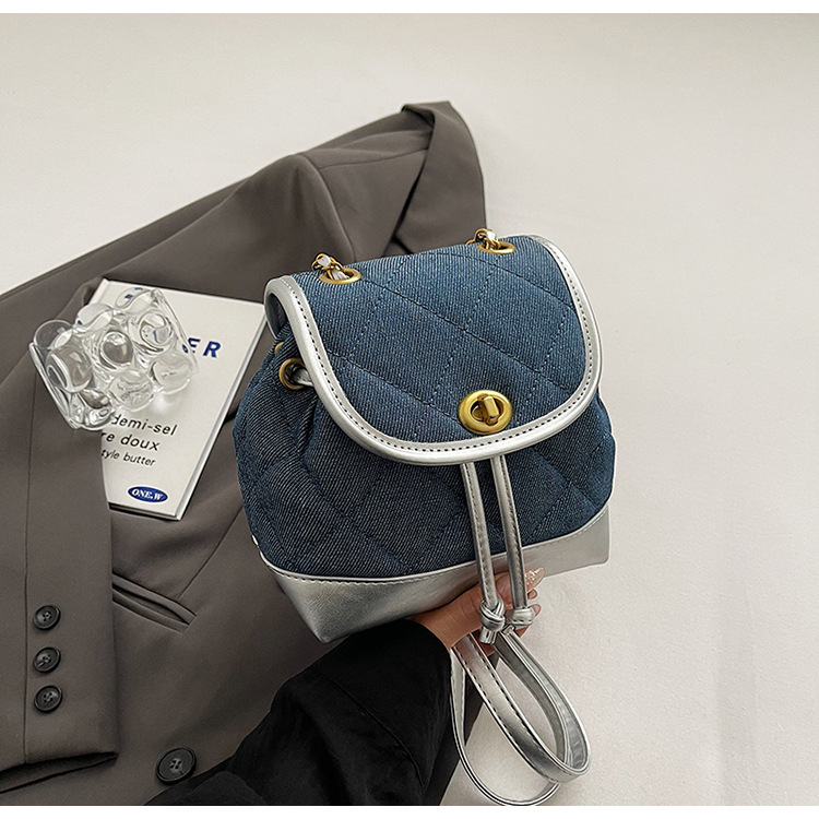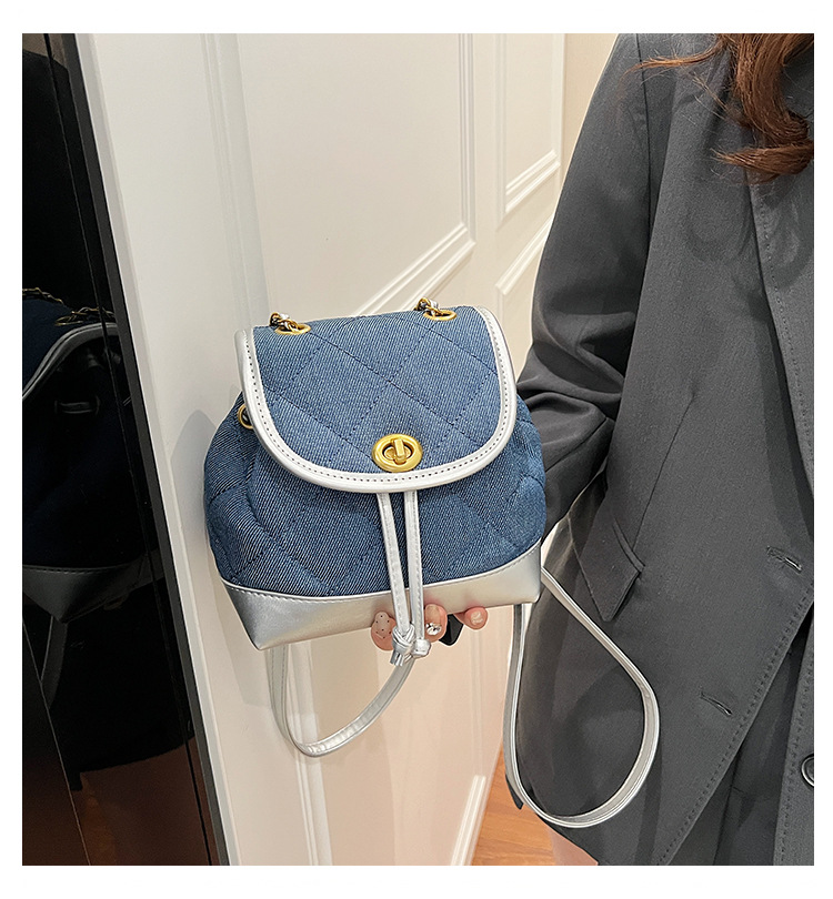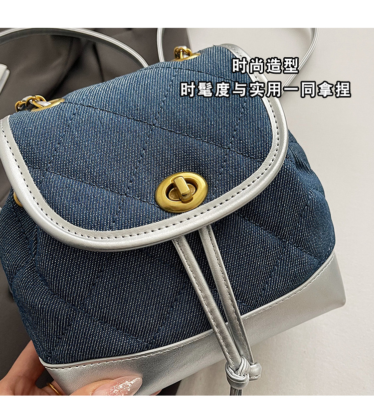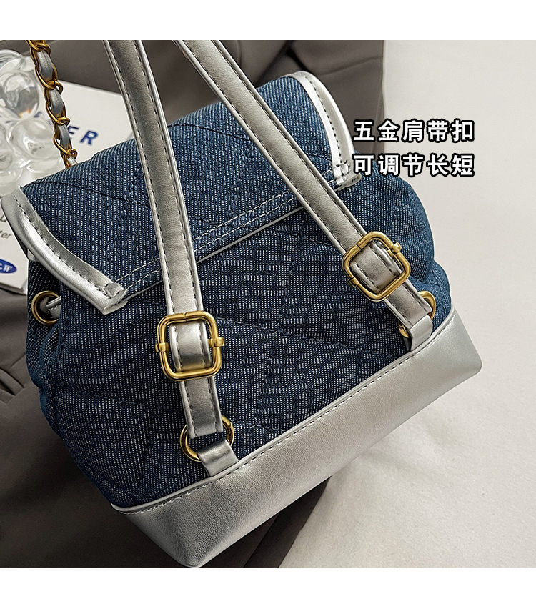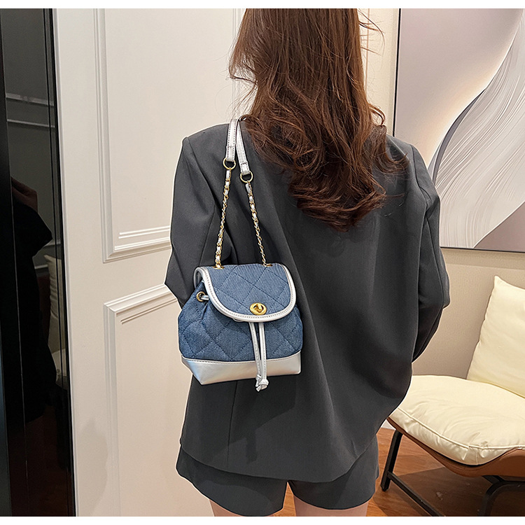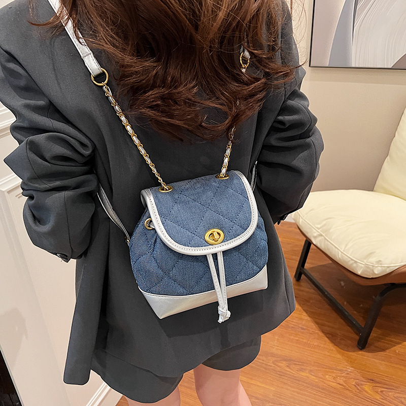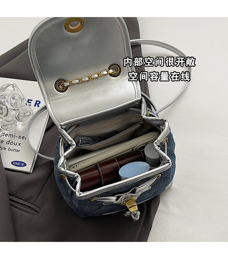 Lingge 체인 배낭 여성의 2024 년 새 여름 데님 버킷 가방 학생 스쿨백 올 매치 통근 배낭스토어 가기