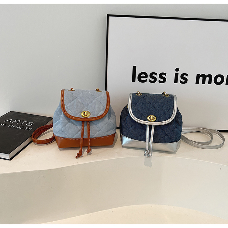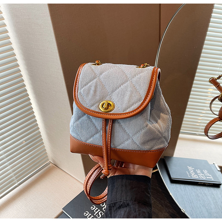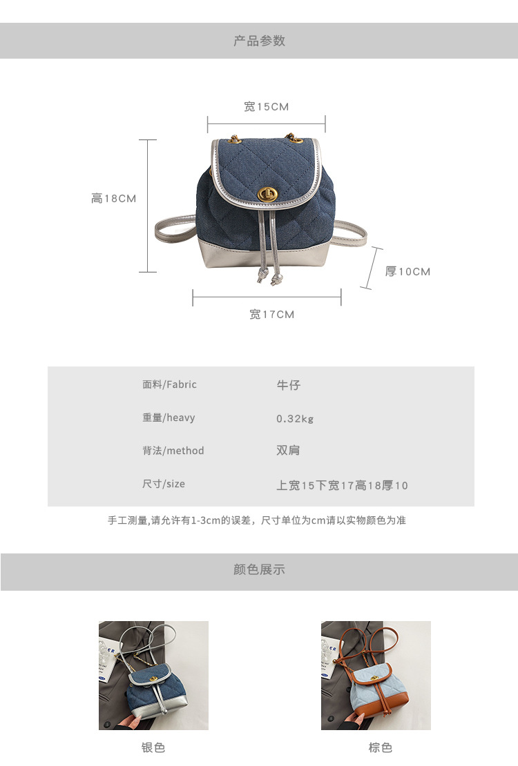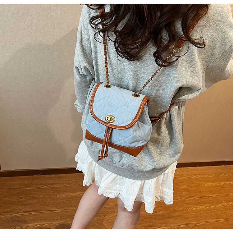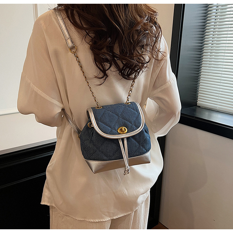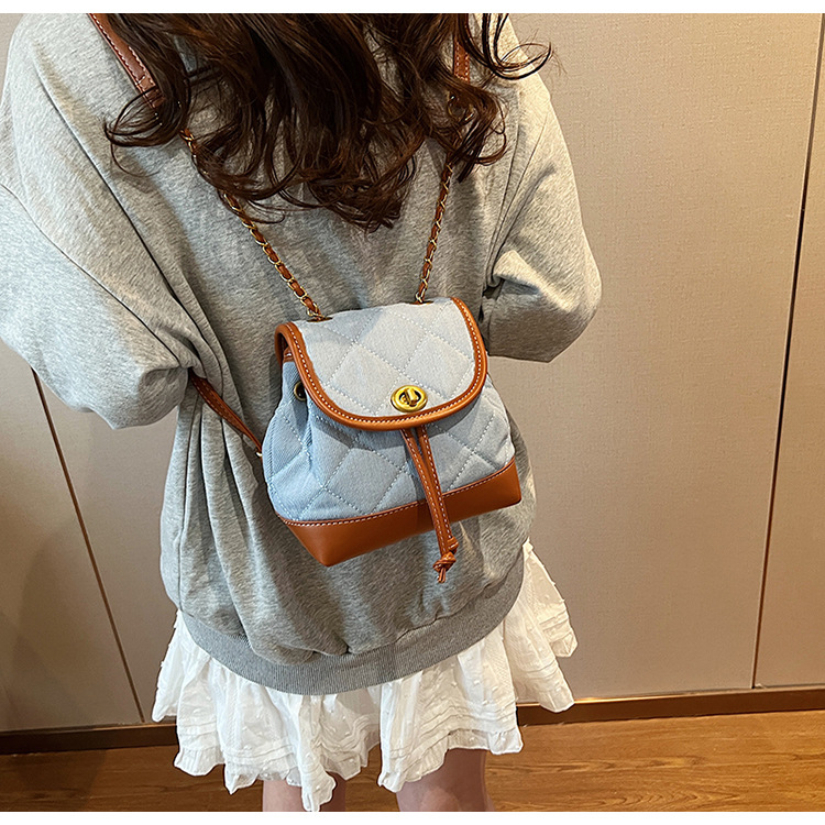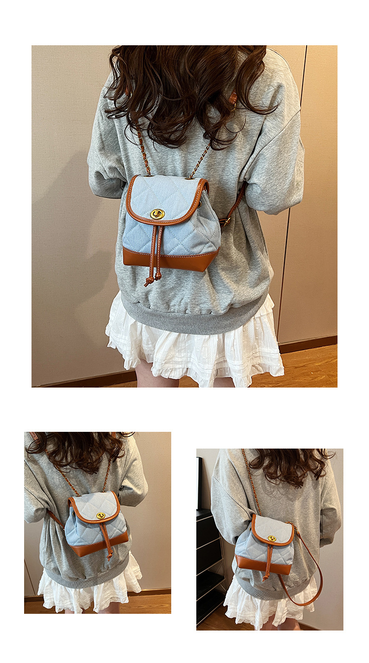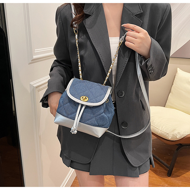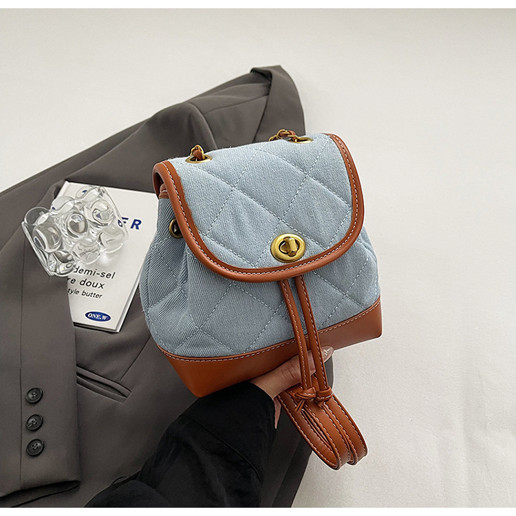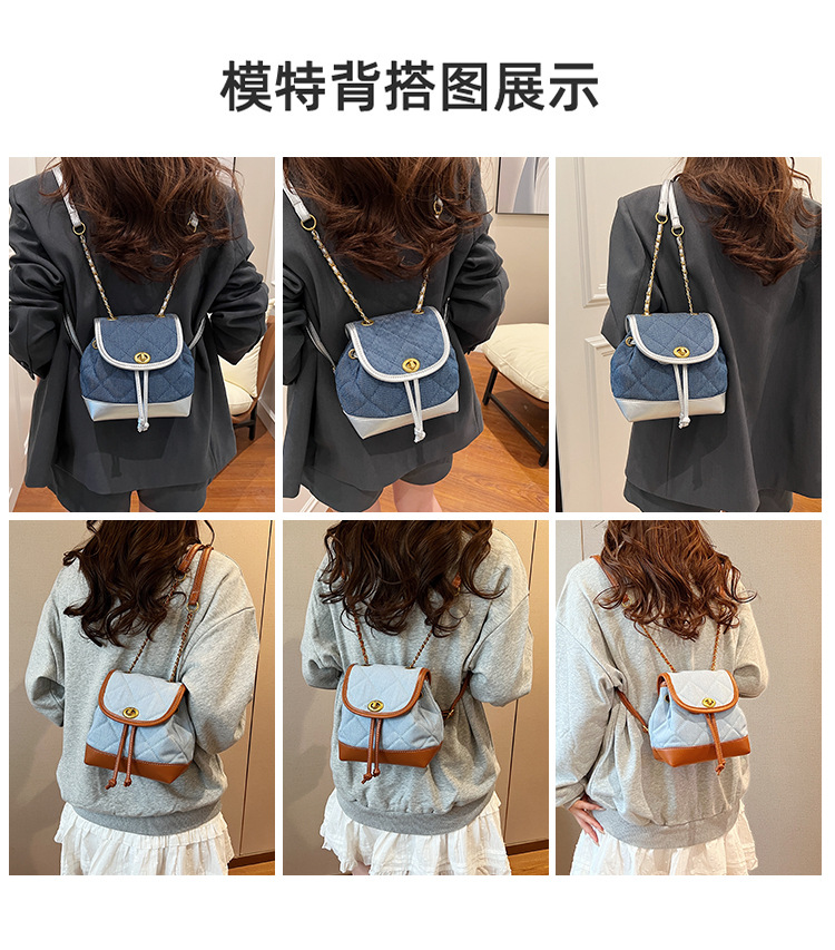 Lingge 체인 배낭 여성의 2024 년 새 여름 데님 버킷 가방 학생 스쿨백 올 매치 통근 배낭스토어 가기