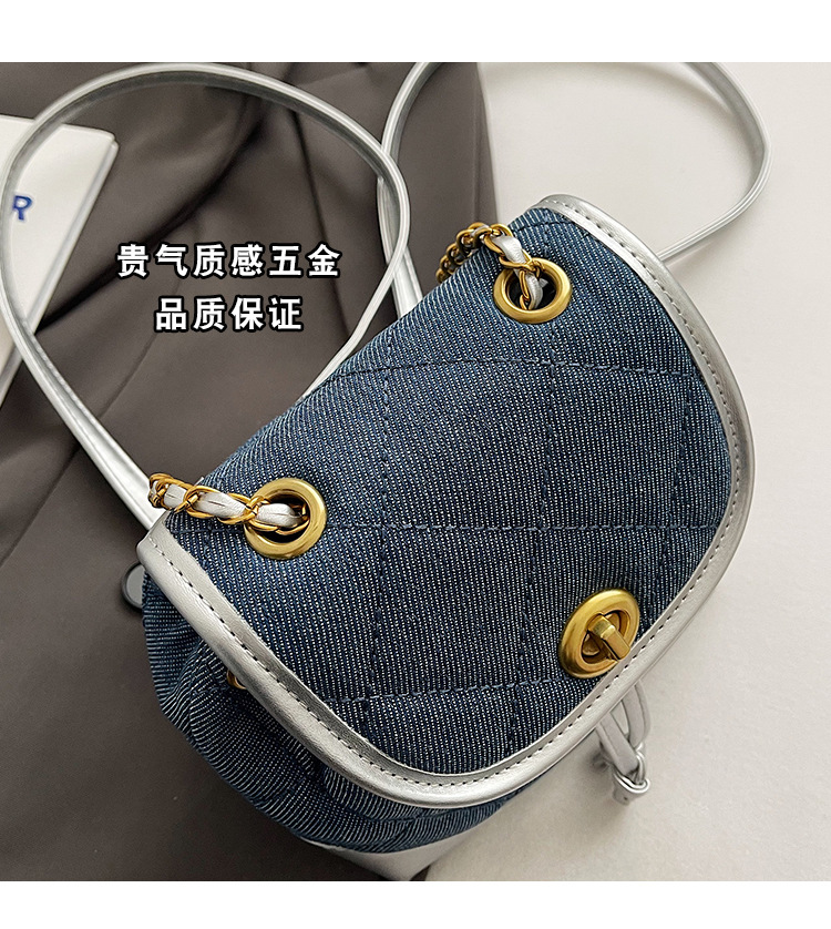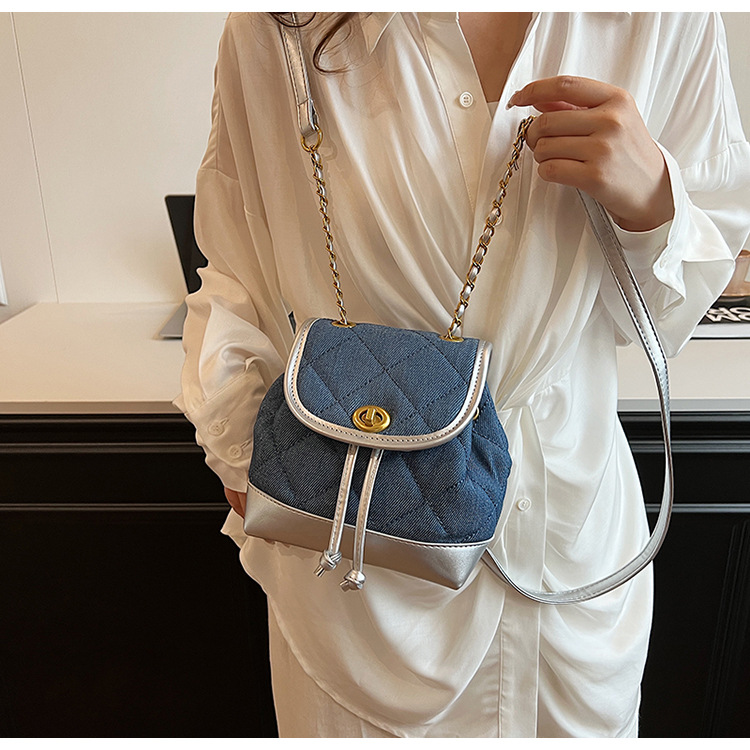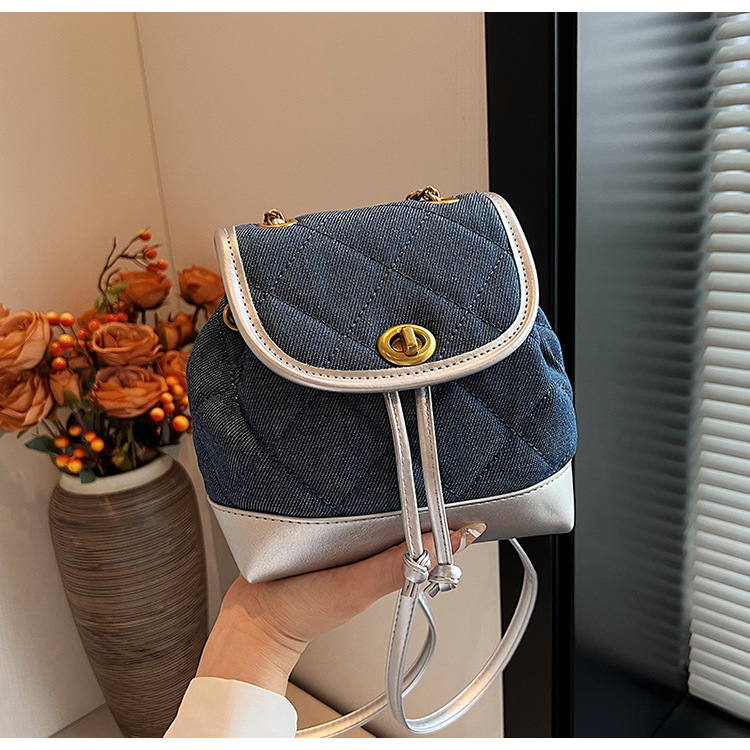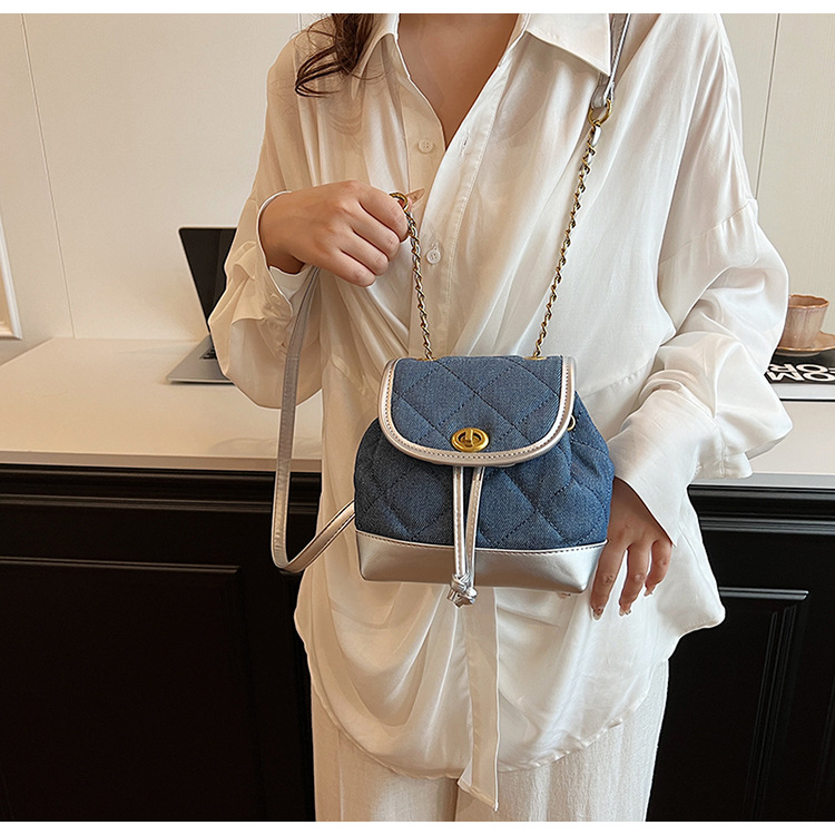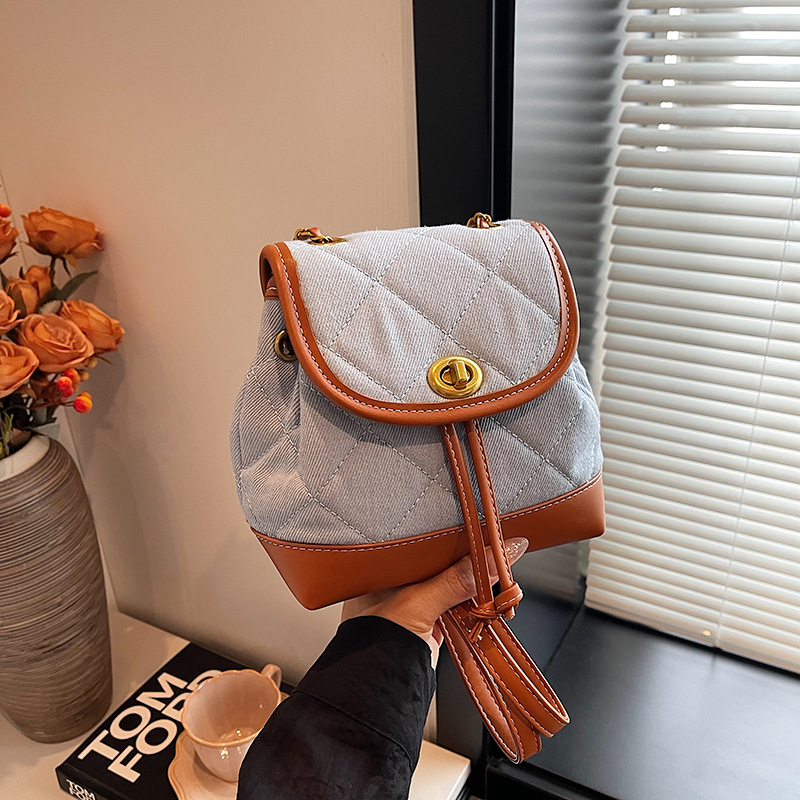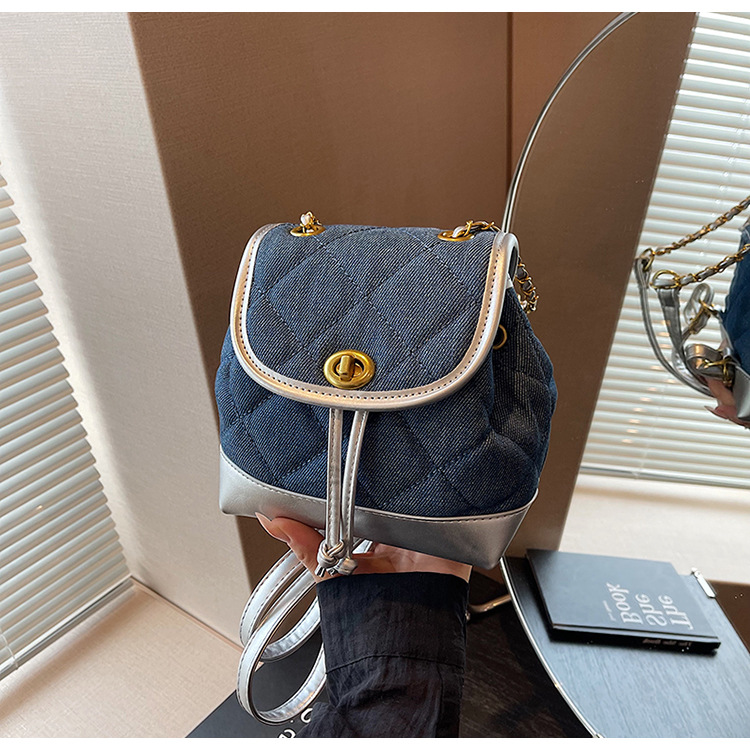 Lingge 체인 배낭 여성의 2024 년 새 여름 데님 버킷 가방 학생 스쿨백 올 매치 통근 배낭