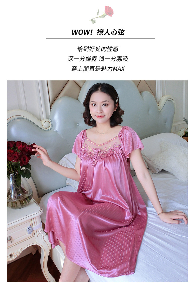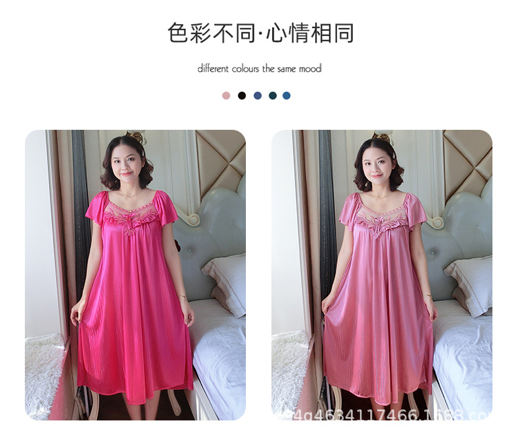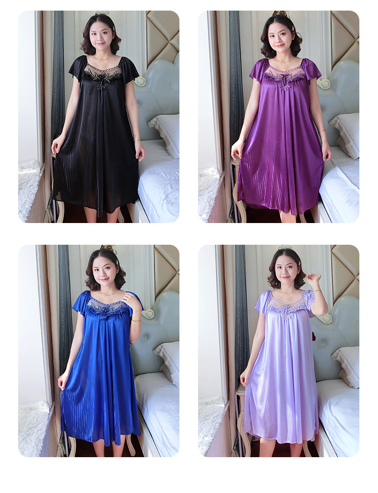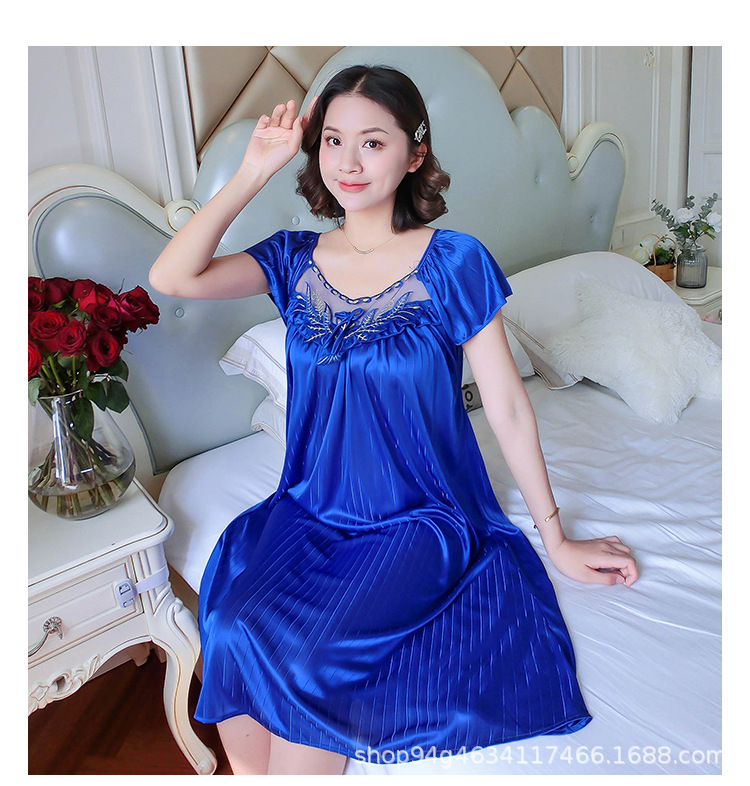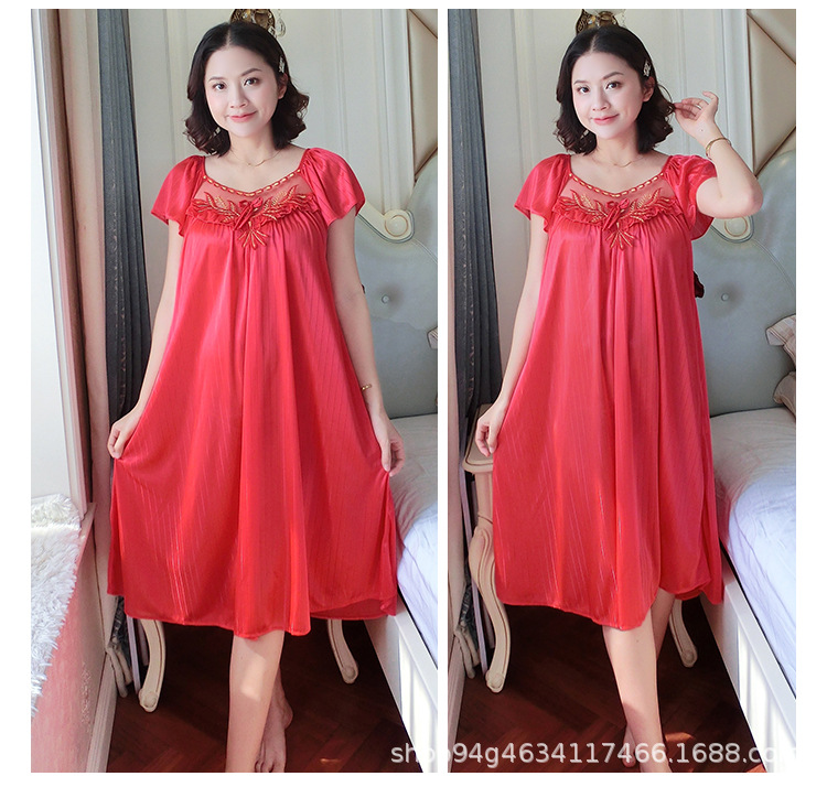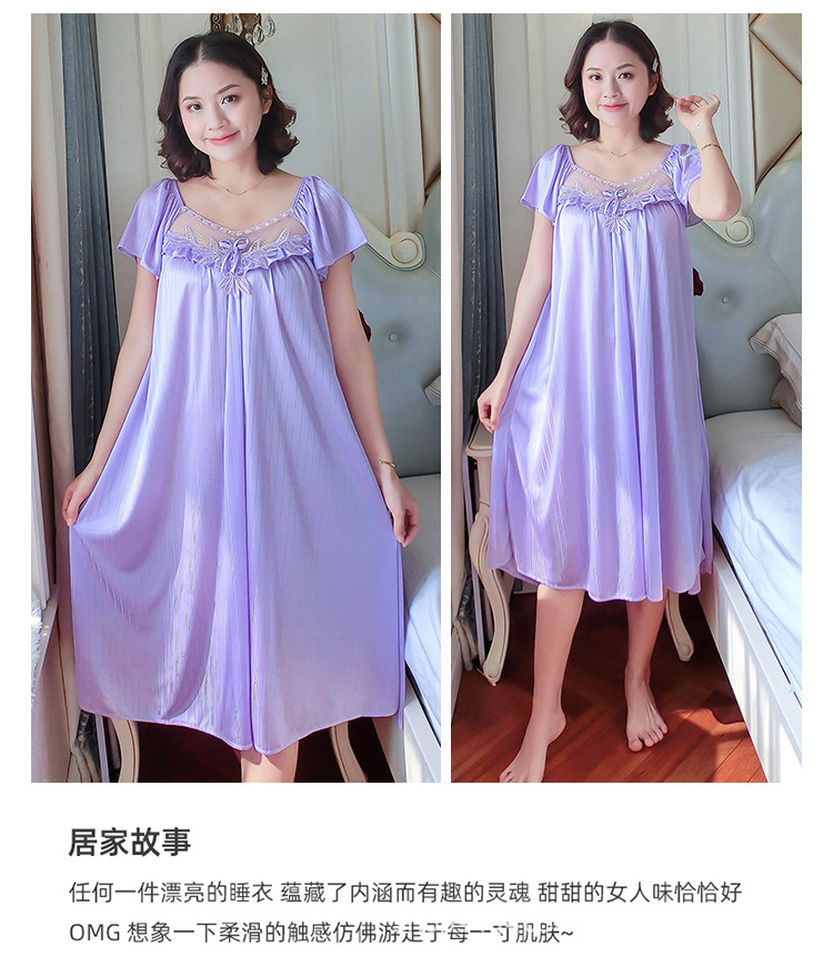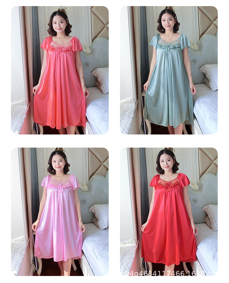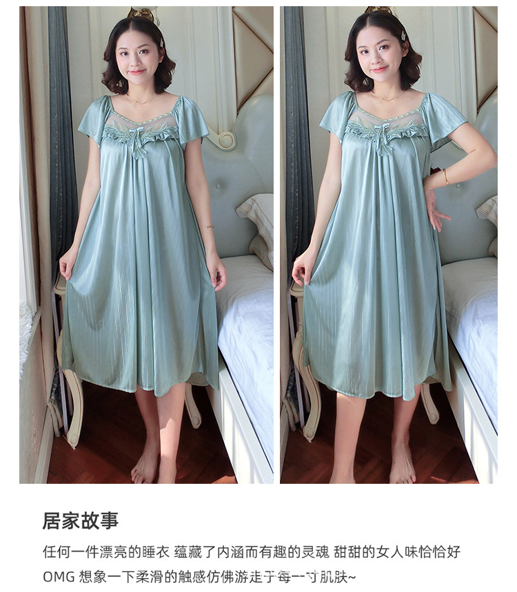 국경 간 섹시한 숙녀 잠옷 섹시한 아이스 실크 레이스 플러스 사이즈 잠옷 얇은 편안한 짧은 소매 레이스 스커트 도매스토어 가기