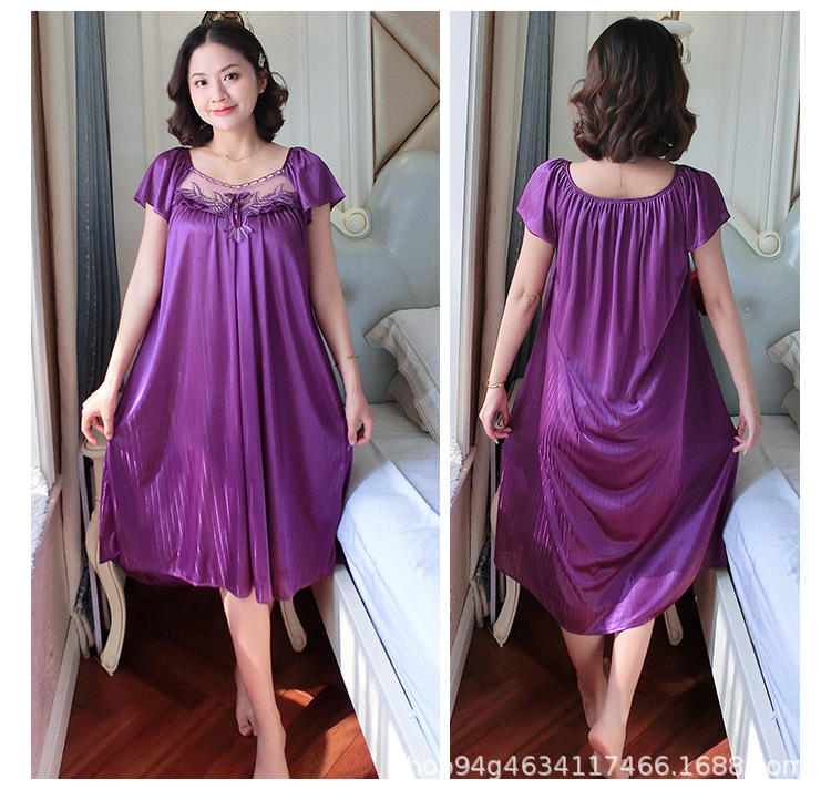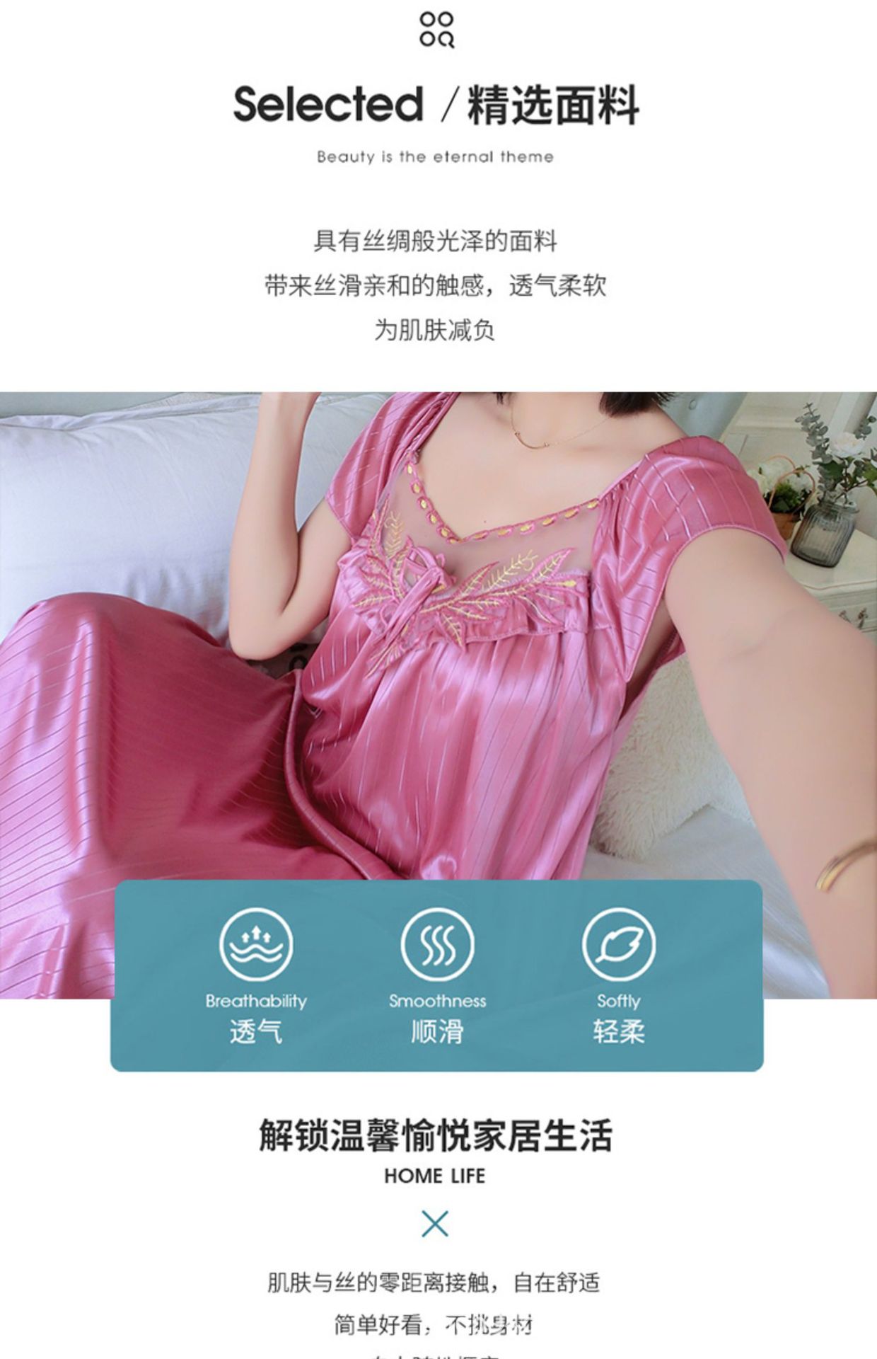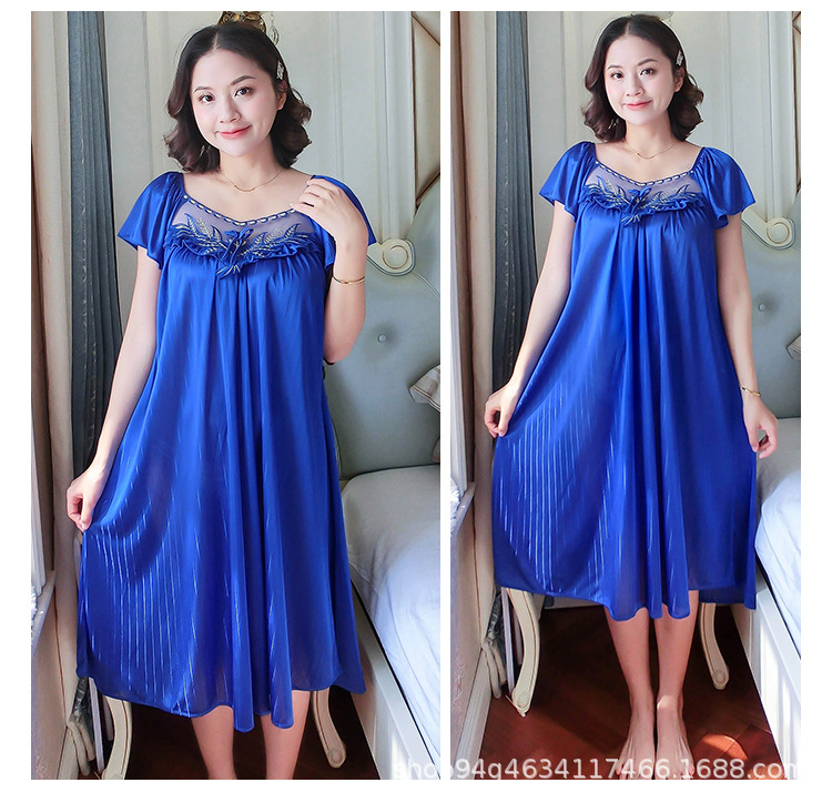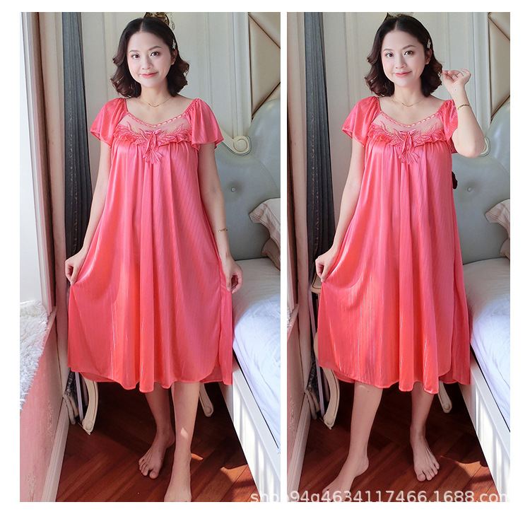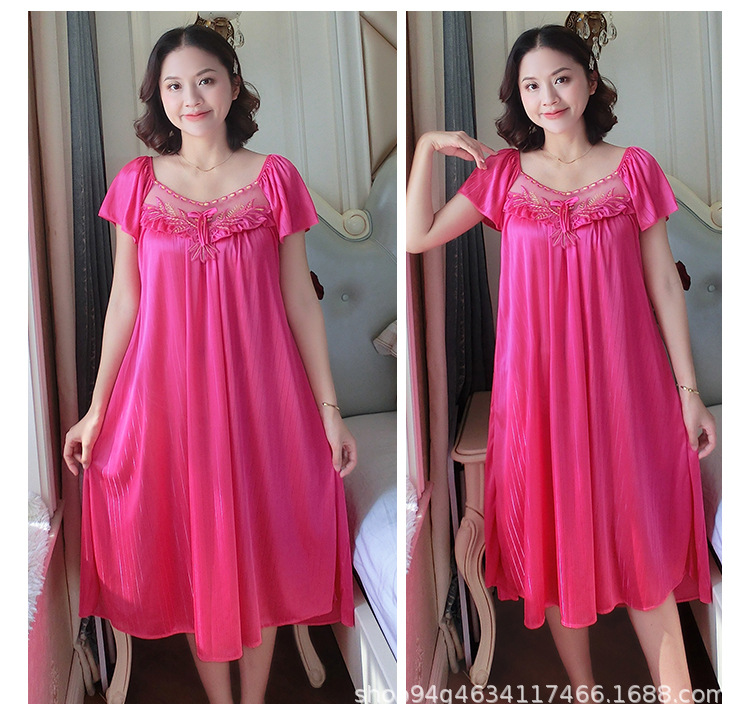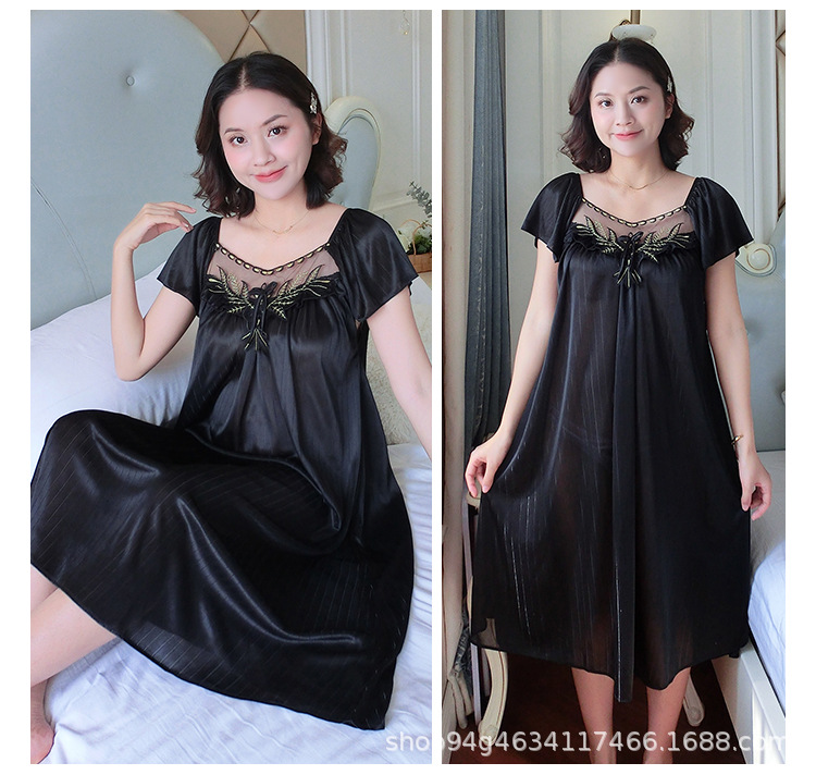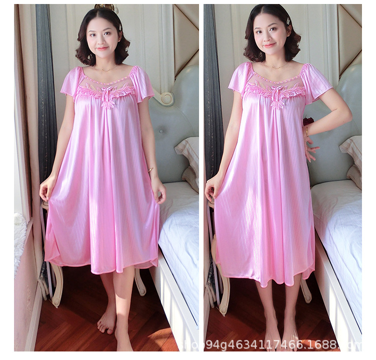 국경 간 섹시한 숙녀 잠옷 섹시한 아이스 실크 레이스 플러스 사이즈 잠옷 얇은 편안한 짧은 소매 레이스 스커트 도매스토어 가기