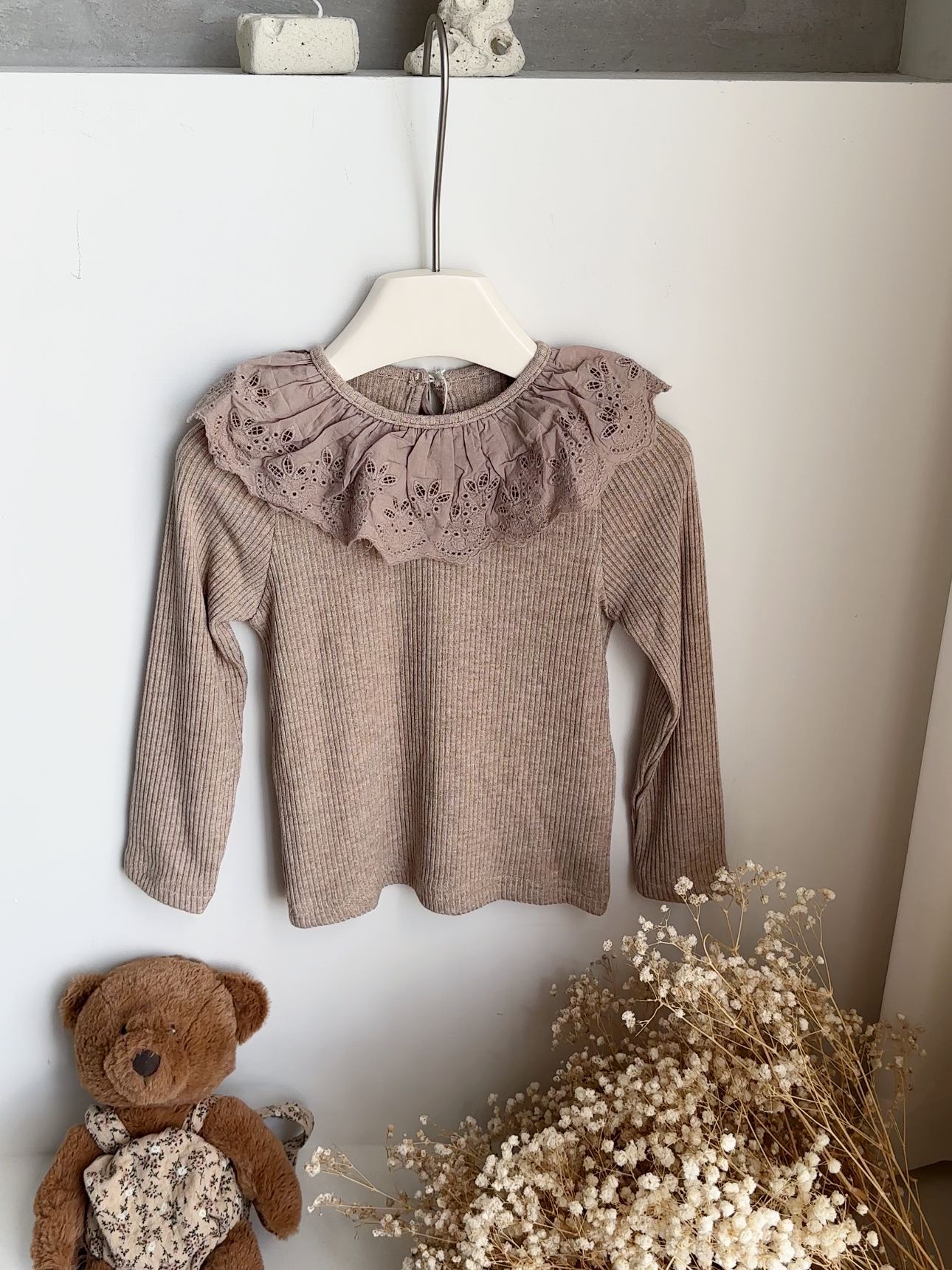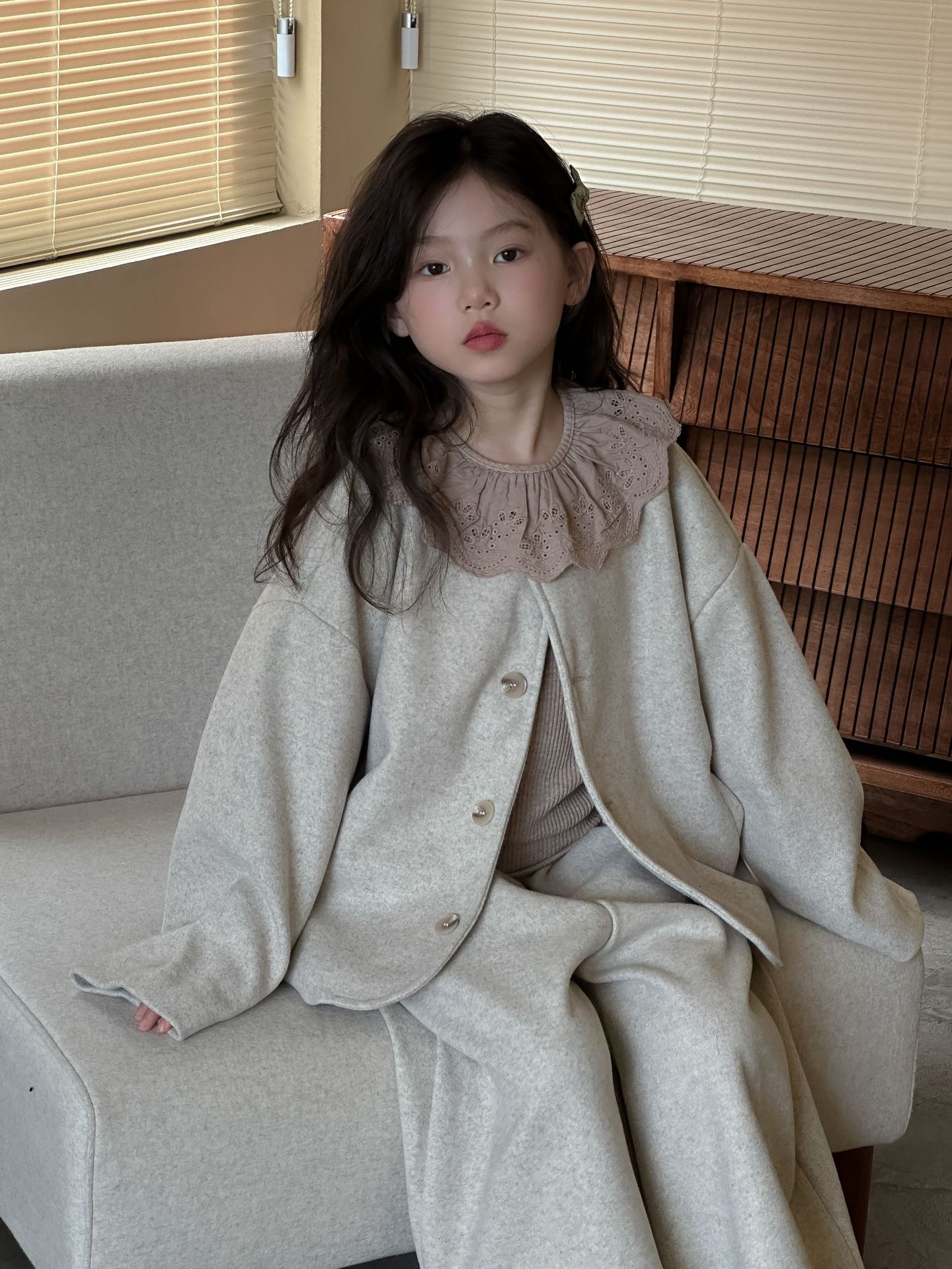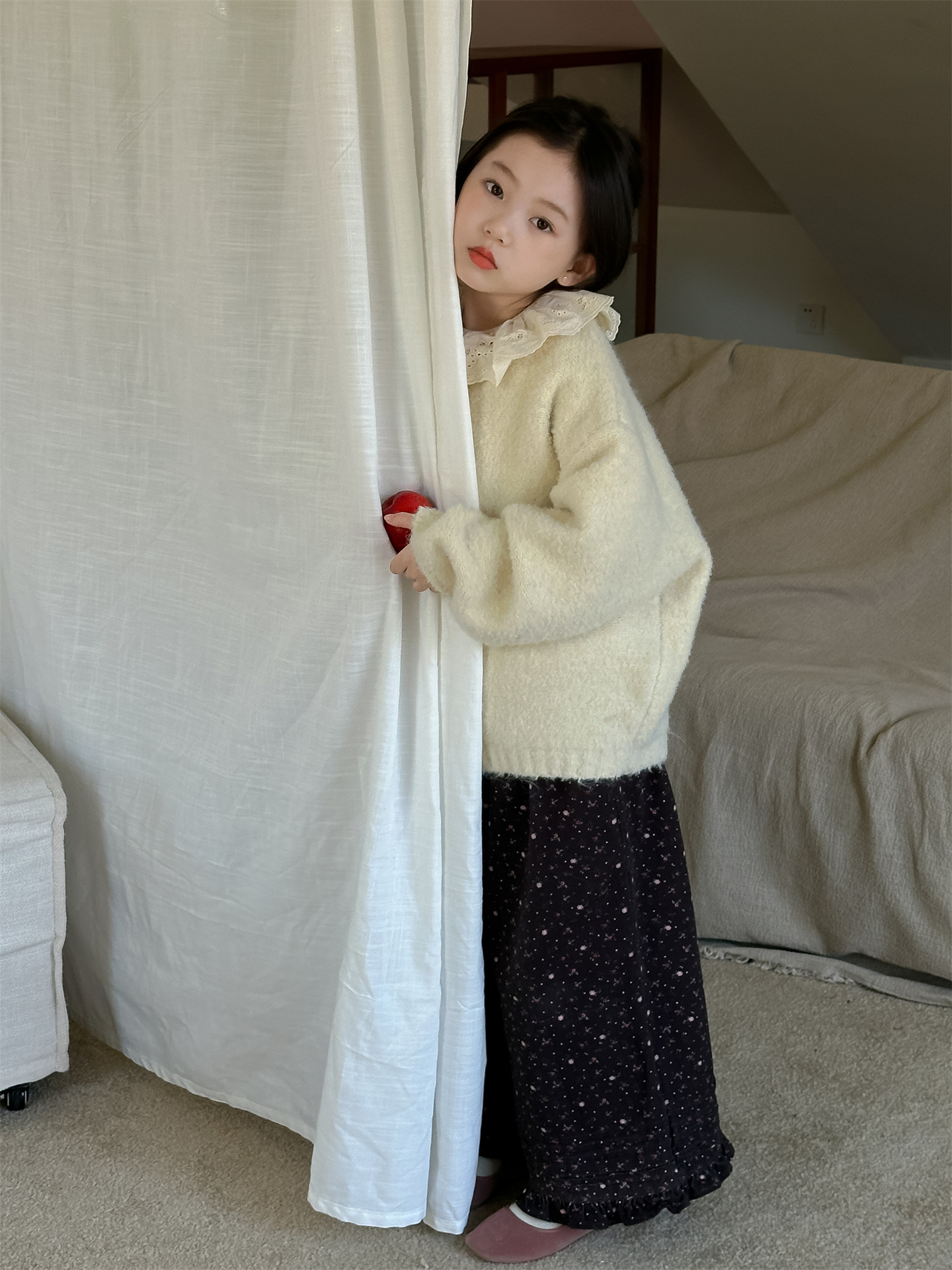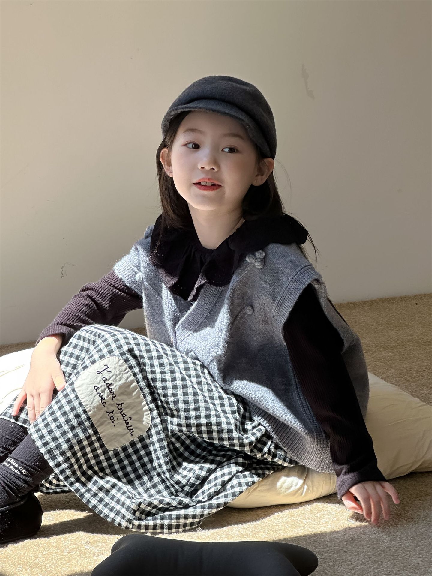 꽃과 어린이 착용 찾고 소녀 2024 가을 새로운 올 매치 레이스베이스 셔츠 소녀의 내부 탑 트렌디
