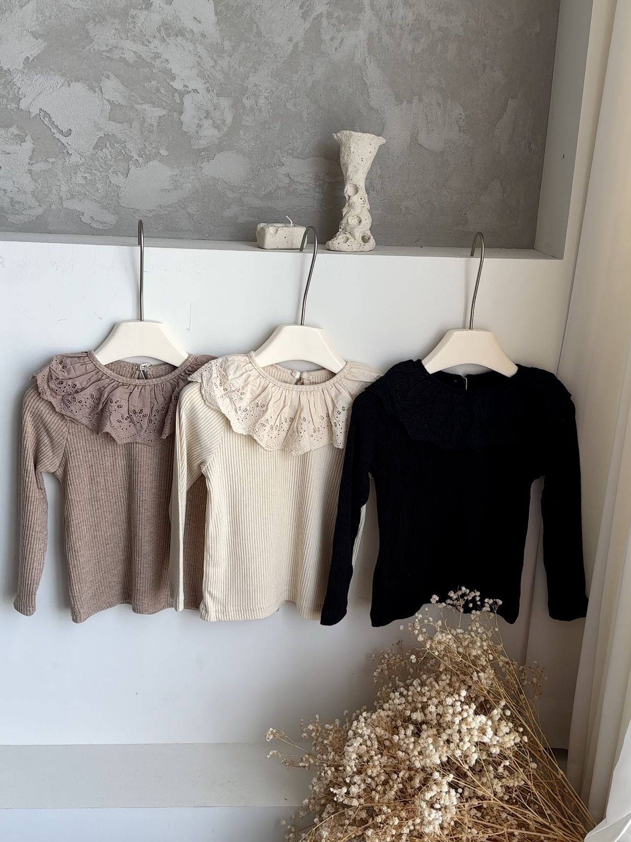 꽃과 어린이 착용 찾고 소녀 2024 가을 새로운 올 매치 레이스베이스 셔츠 소녀의 내부 탑 트렌디스토어 가기