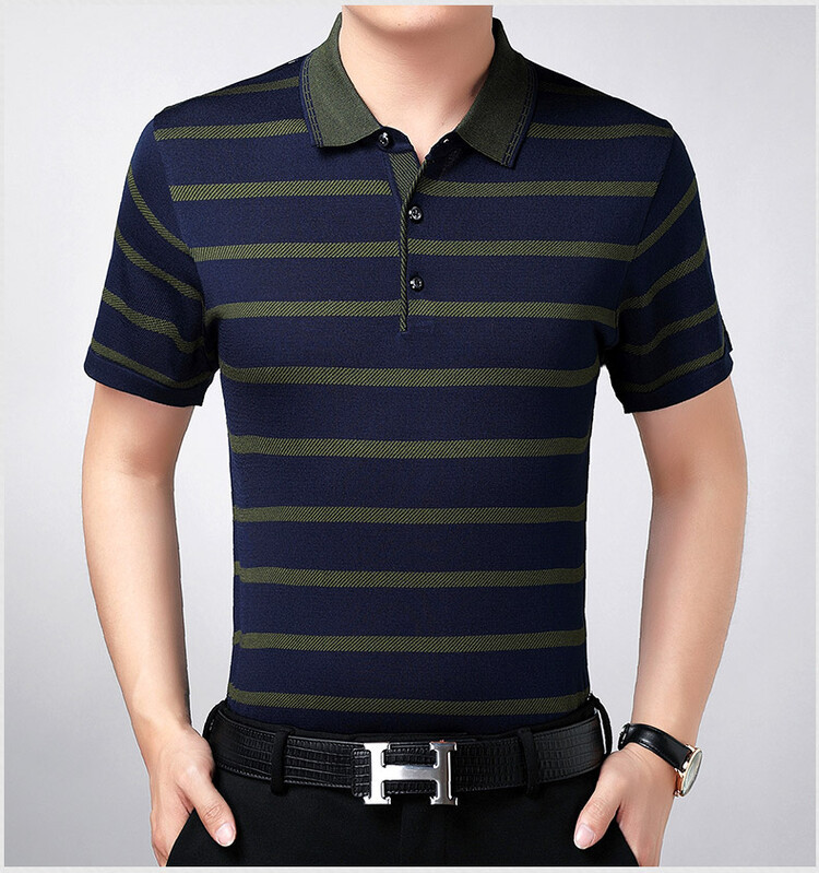 여름 중년 및 노인 남성 반팔 티셔츠 줄무늬 랩 폴로 셔츠 남자 느슨한 아빠의 여름 남자 정상스토어 가기