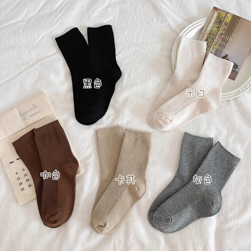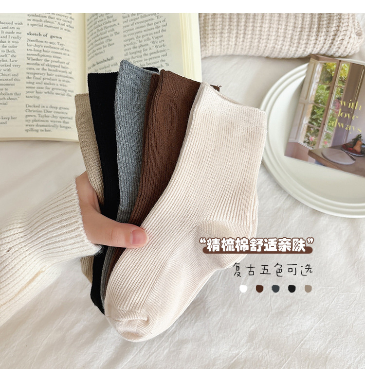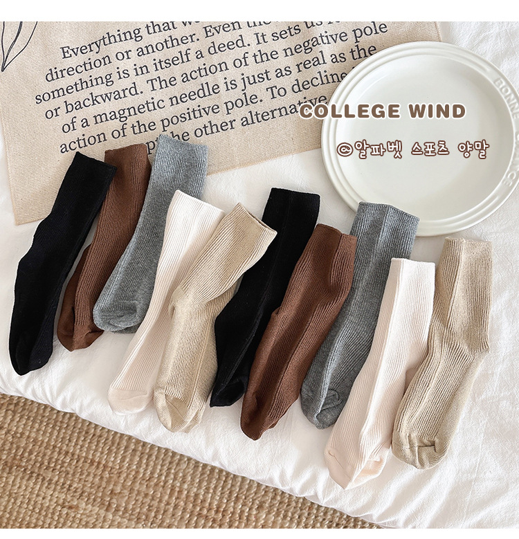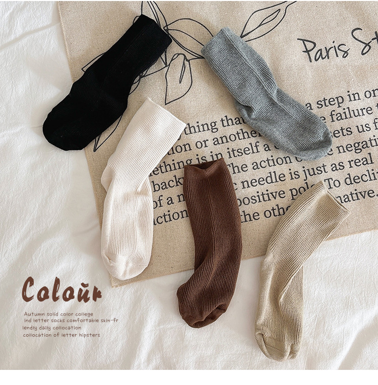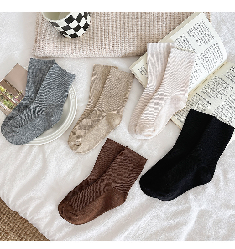 어린이 양말 가을과 겨울 면화 단색 아기 양말 복고풍 중간 튜브 스타킹 모든 매치 한국 소년 소녀 양말 조수