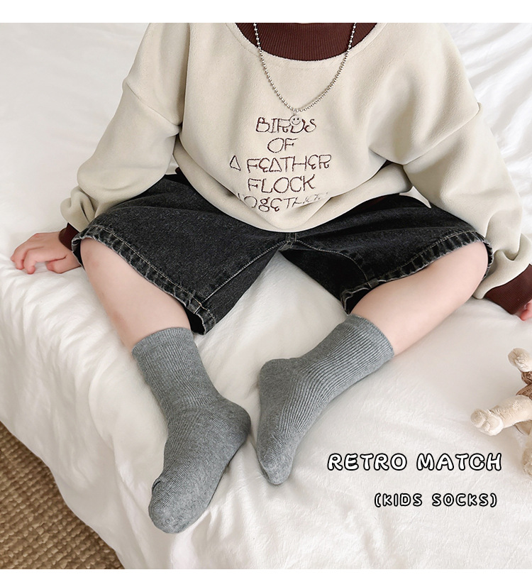 어린이 양말 가을과 겨울 면화 단색 아기 양말 복고풍 중간 튜브 스타킹 모든 매치 한국 소년 소녀 양말 조수스토어 가기
