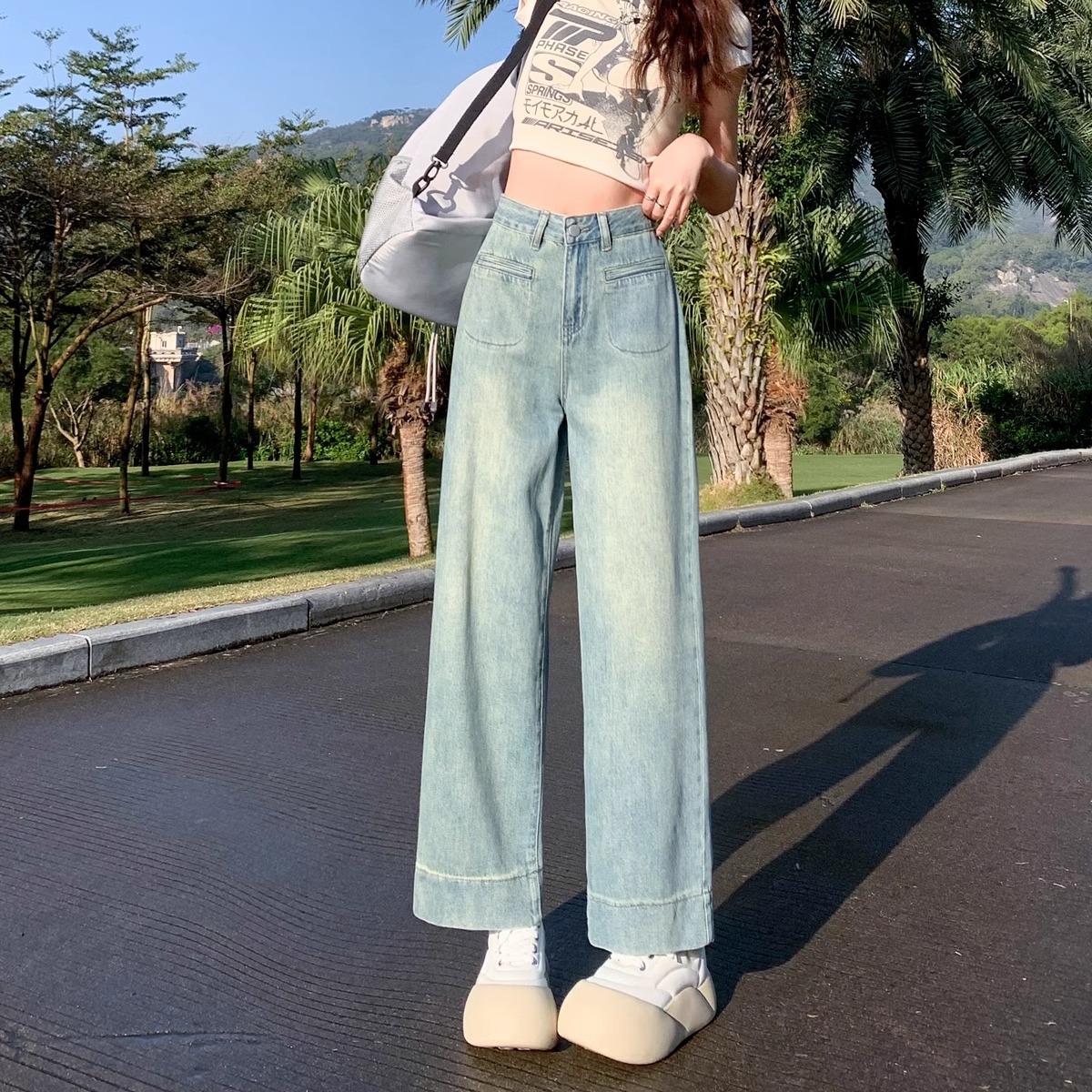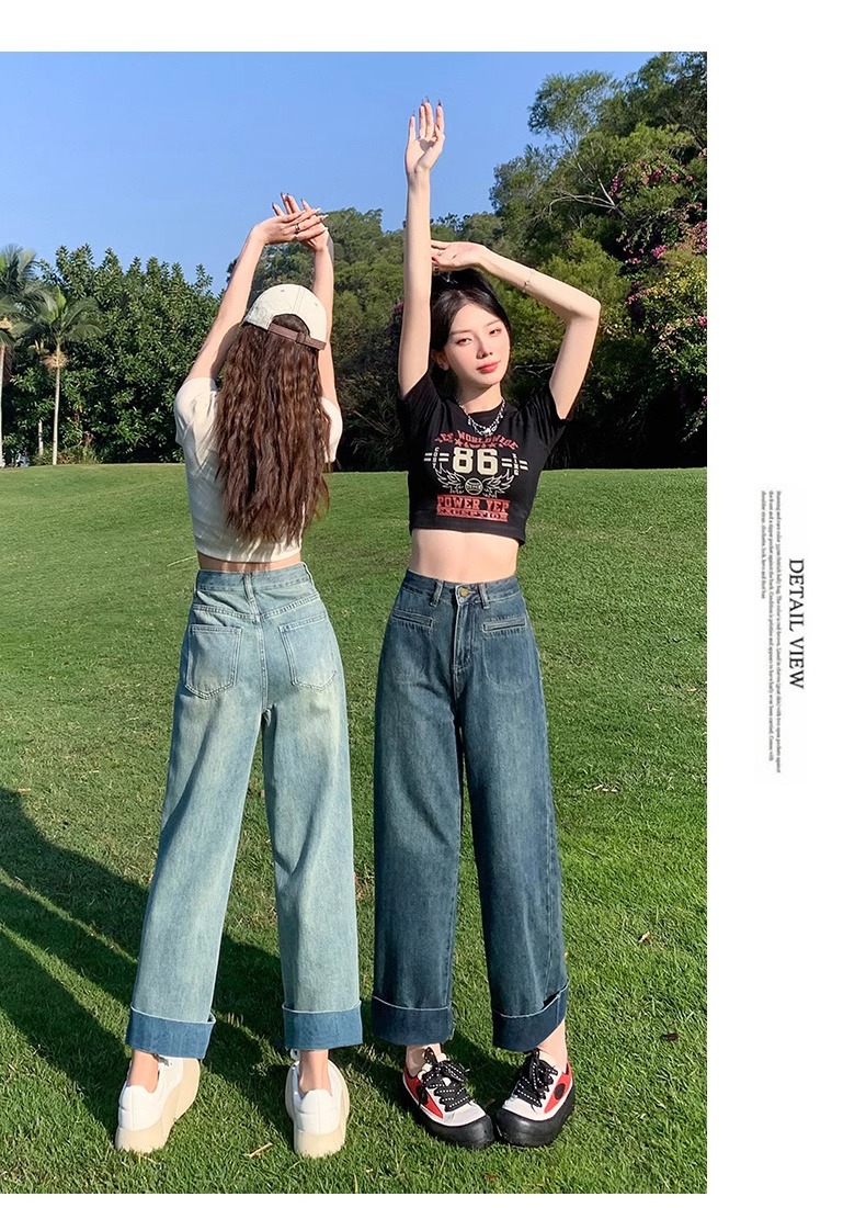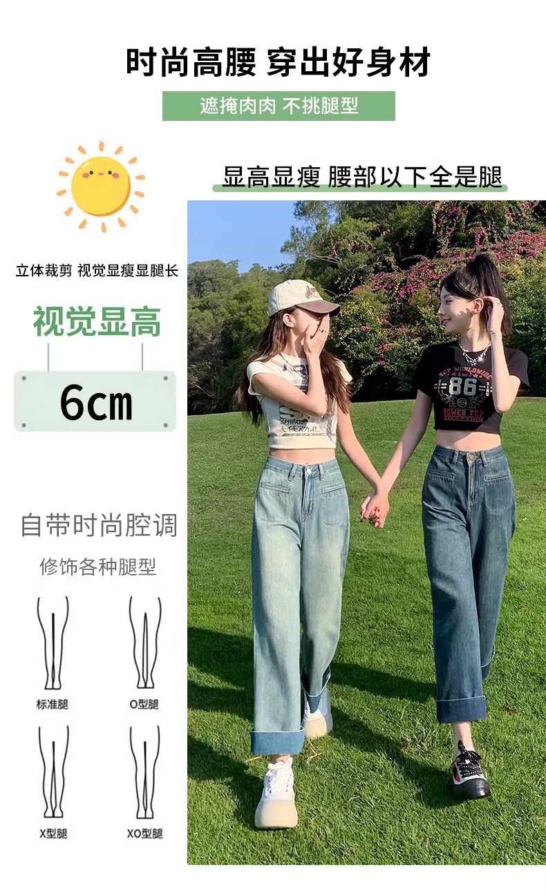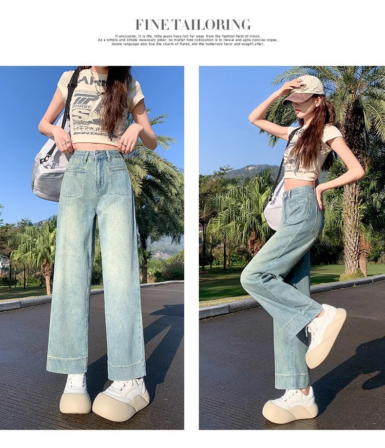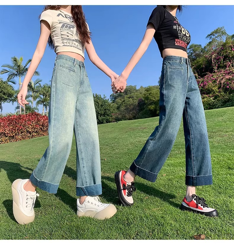 플러스 사이즈 빈티지 라이트 컬러 청바지 여성용 여름 통통녀 높은 허리 슬림 핏 느슨한 짧은 스트레이트 와이드 다리 긴 바지스토어 가기
