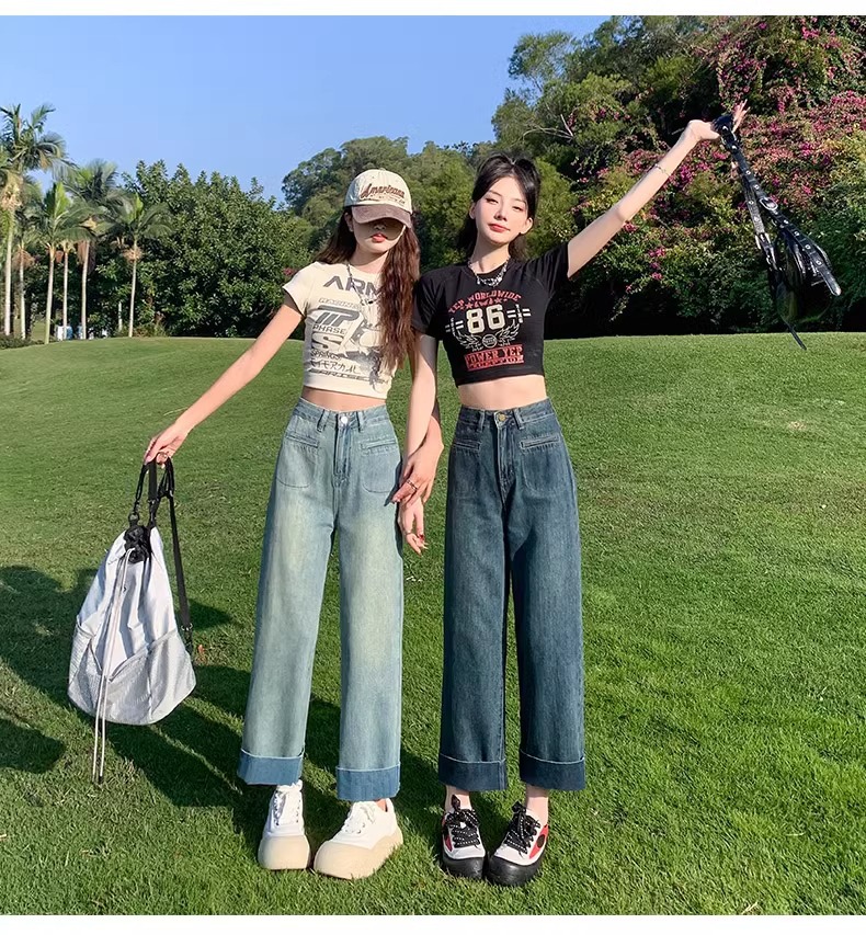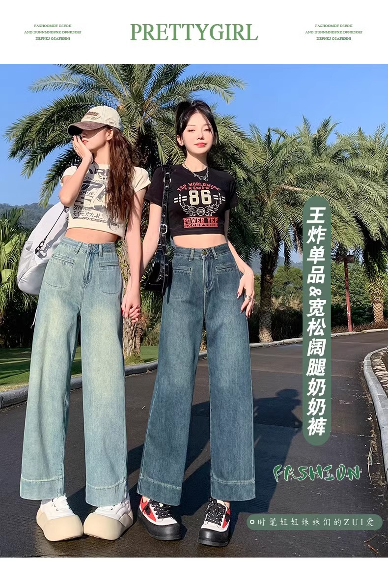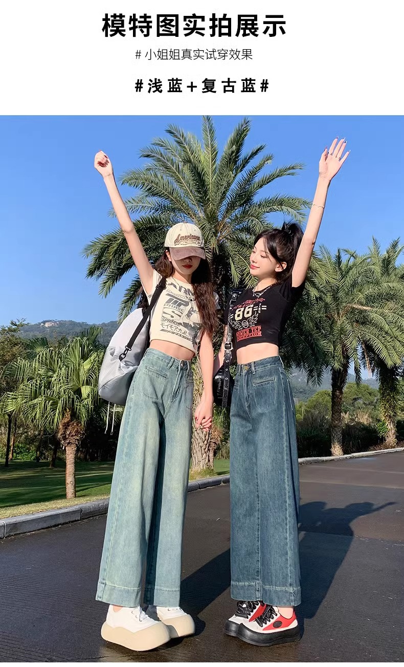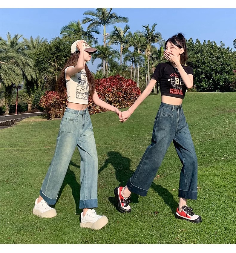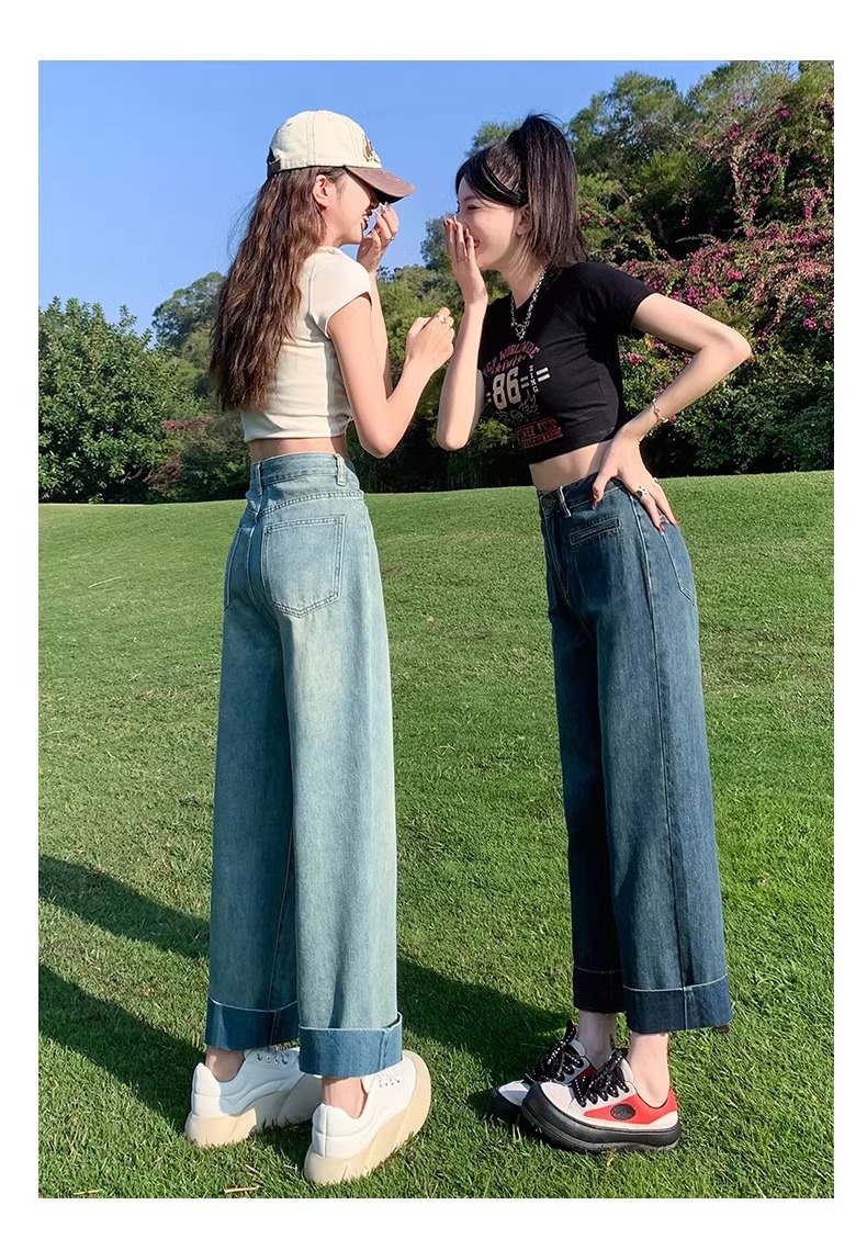 플러스 사이즈 빈티지 라이트 컬러 청바지 여성용 여름 통통녀 높은 허리 슬림 핏 느슨한 짧은 스트레이트 와이드 다리 긴 바지스토어 가기