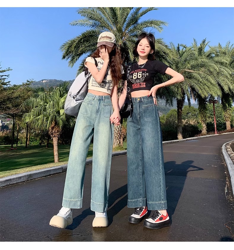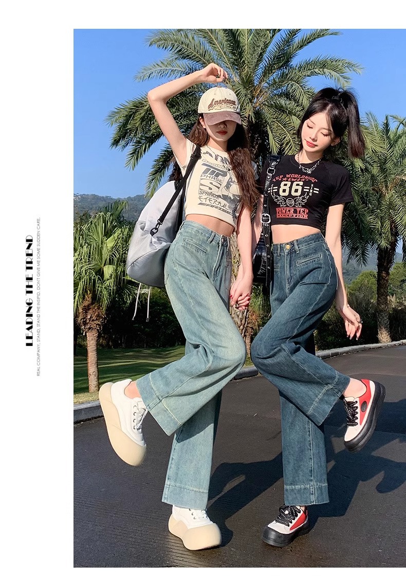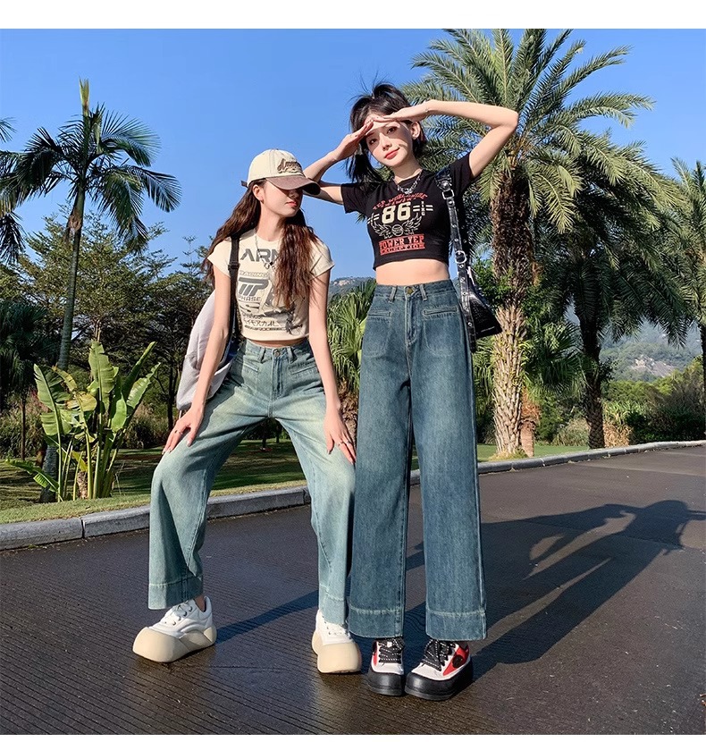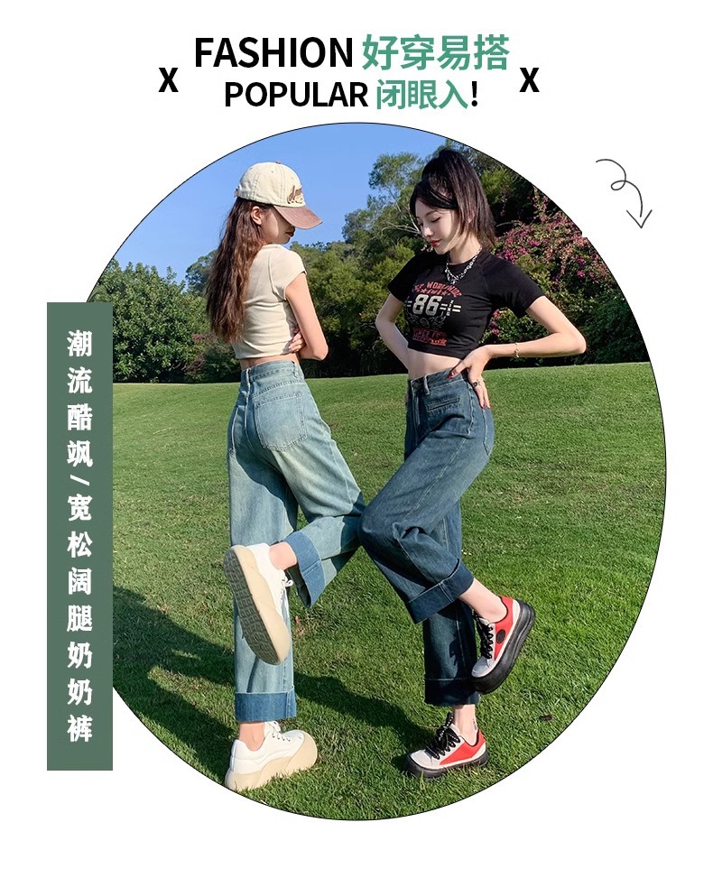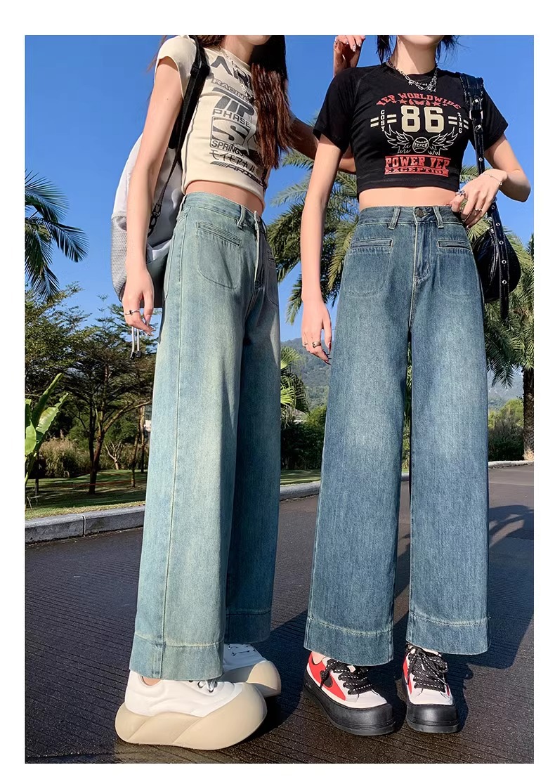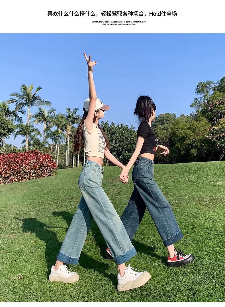 플러스 사이즈 빈티지 라이트 컬러 청바지 여성용 여름 통통녀 높은 허리 슬림 핏 느슨한 짧은 스트레이트 와이드 다리 긴 바지스토어 가기