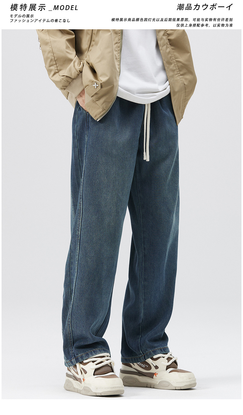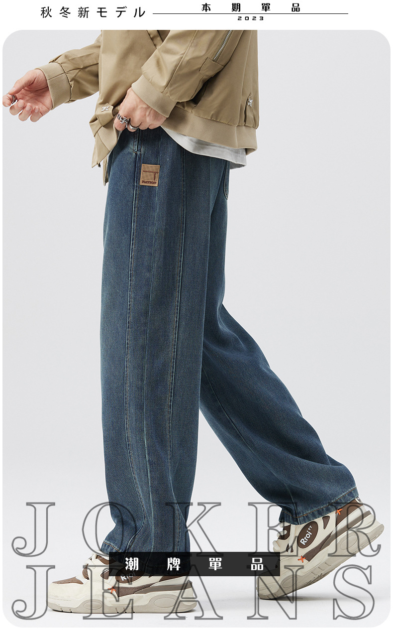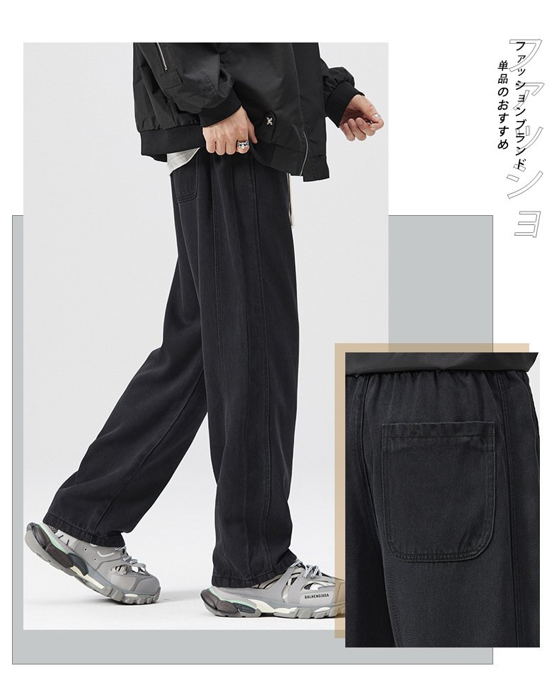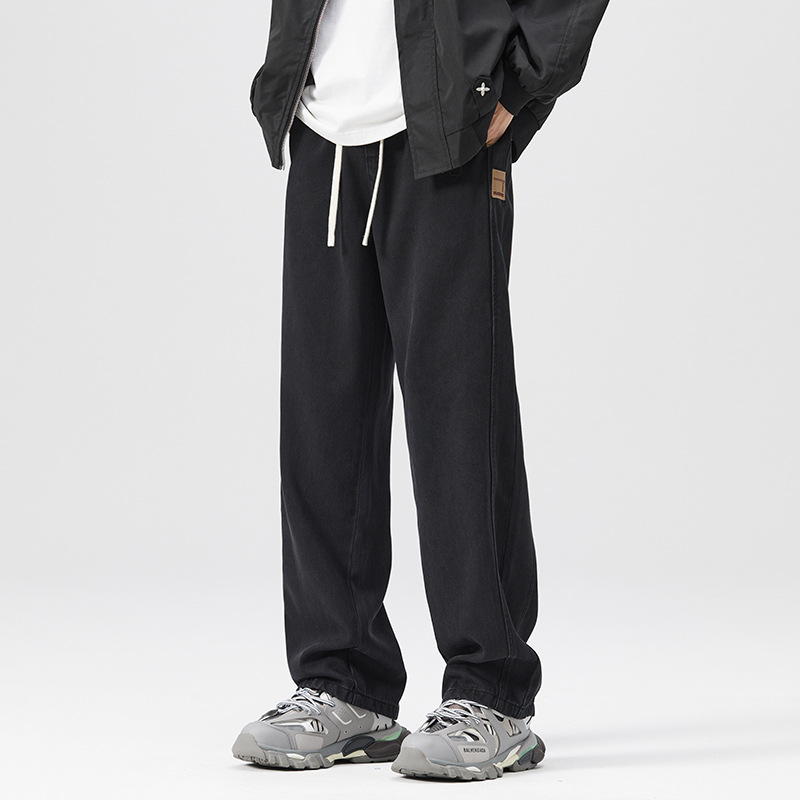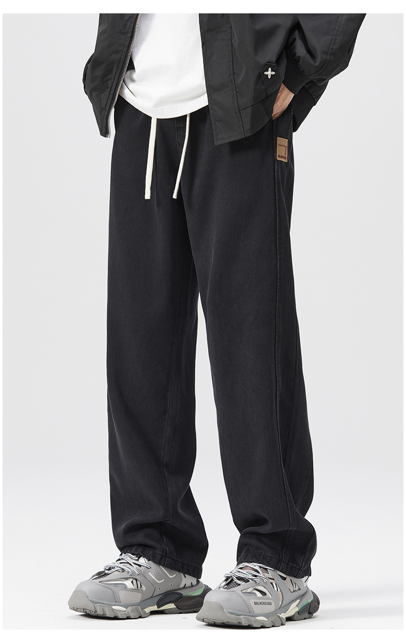 Lyocell Tencel 소프트 청바지 남성 가을 딥 루즈 트렌디 브랜드 스트레이트 블랙 캐주얼 긴 바지 넓은 다리스토어 가기