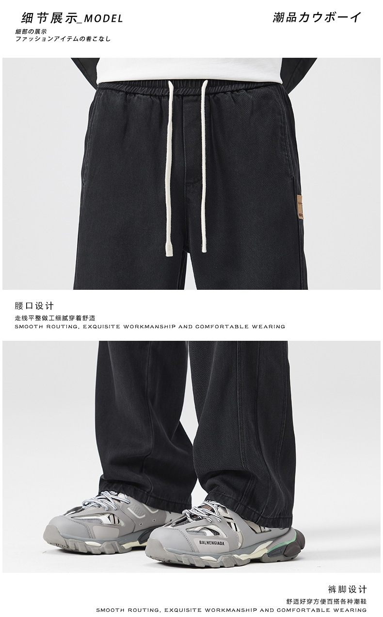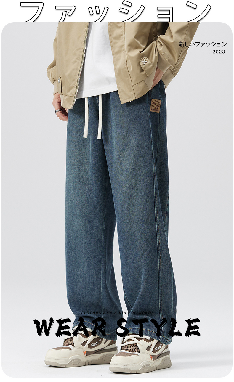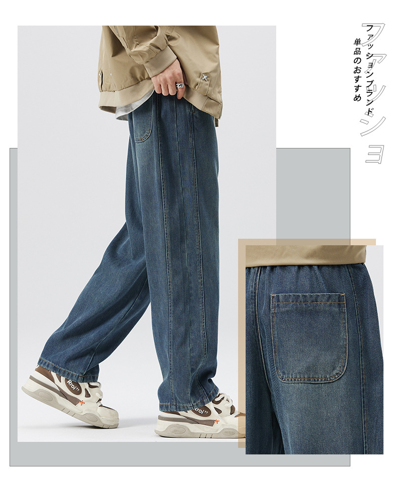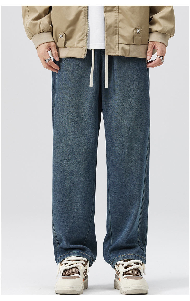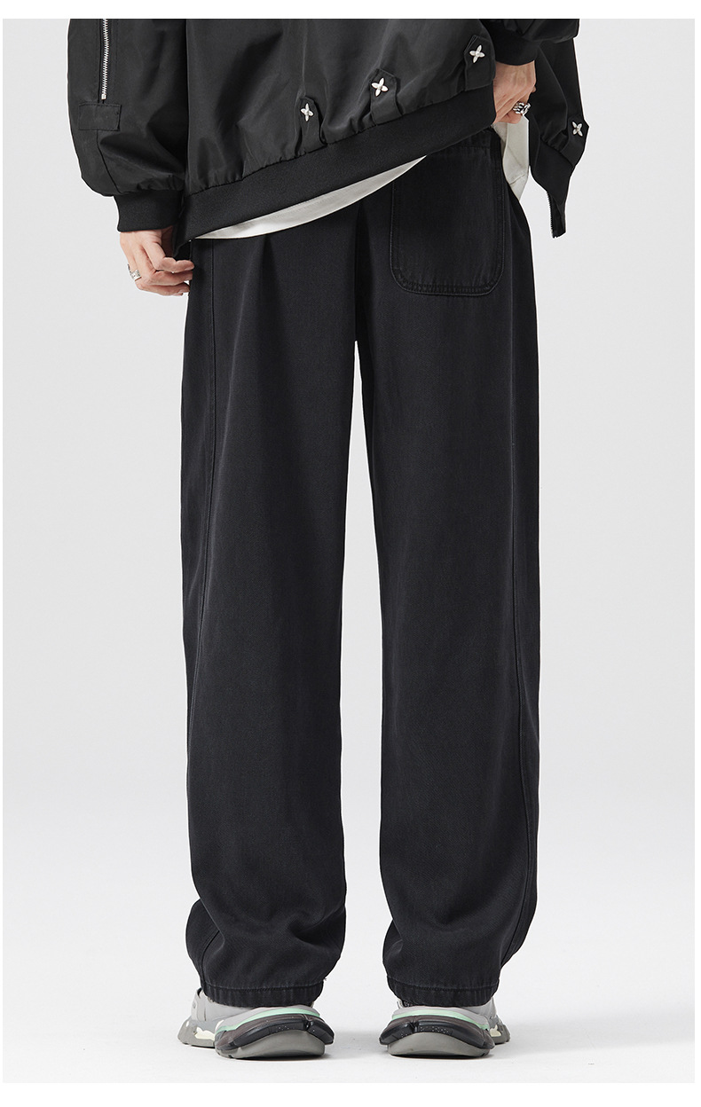 Lyocell Tencel 소프트 청바지 남성 가을 딥 루즈 트렌디 브랜드 스트레이트 블랙 캐주얼 긴 바지 넓은 다리스토어 가기