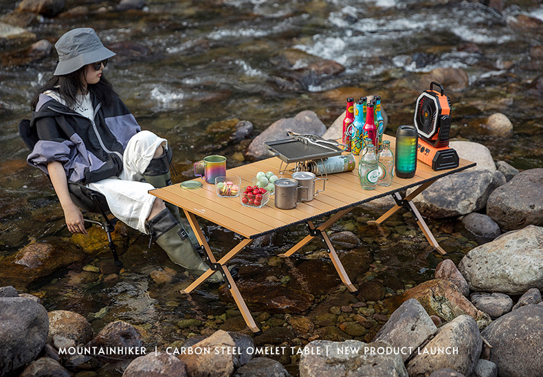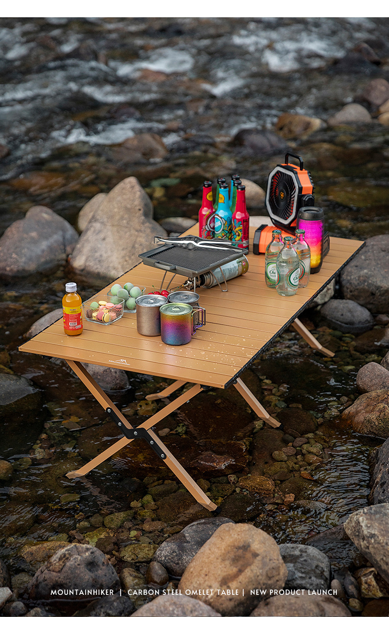 산 손님 탄소 강철 계란 롤 테이블 야외 캠핑 테이블 접이식 계란 롤 테이블 피크닉 테이블 휴대용 해변 캠핑 테이블
