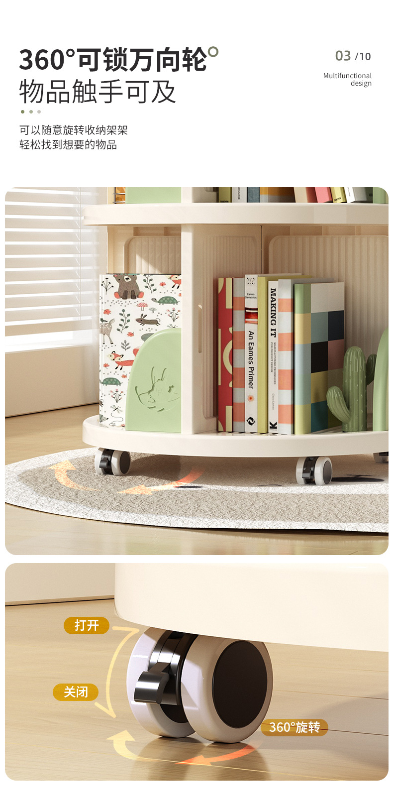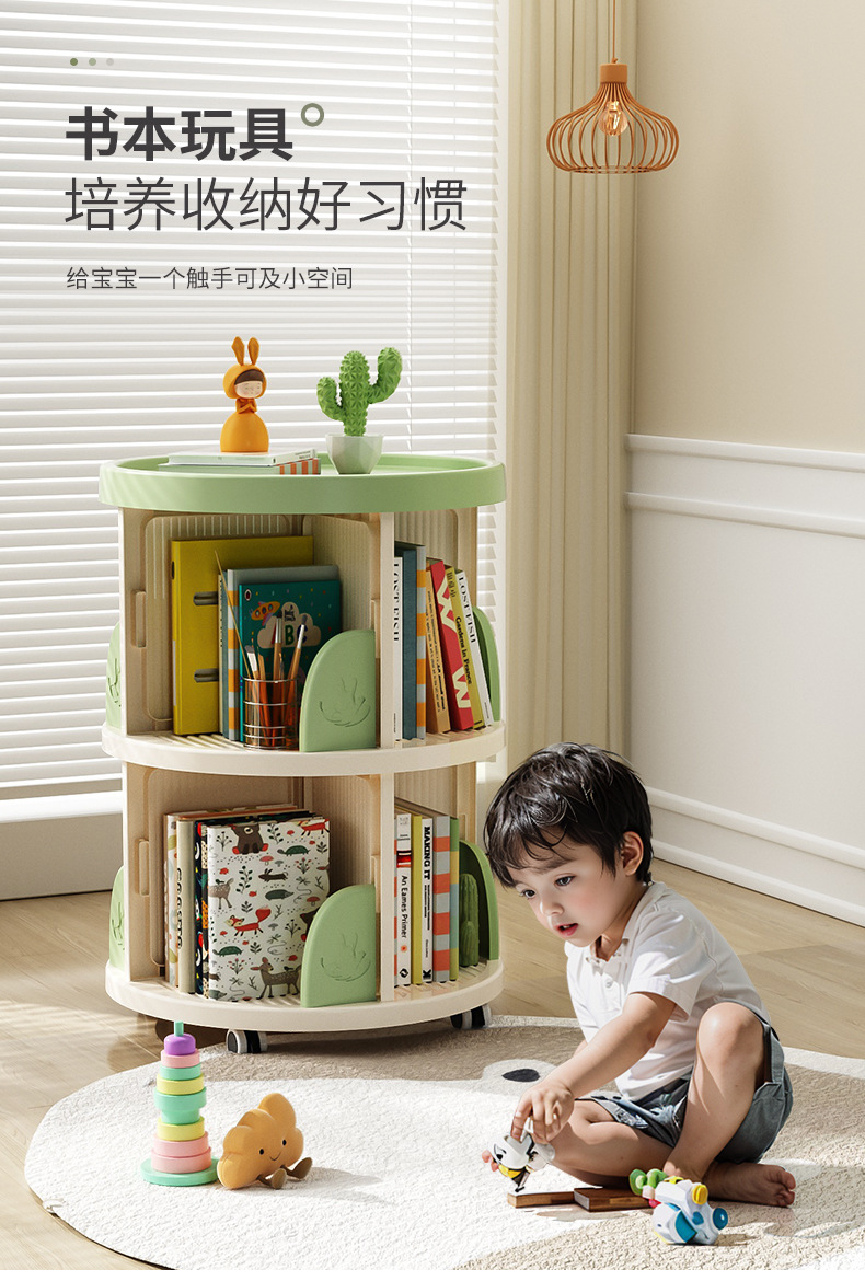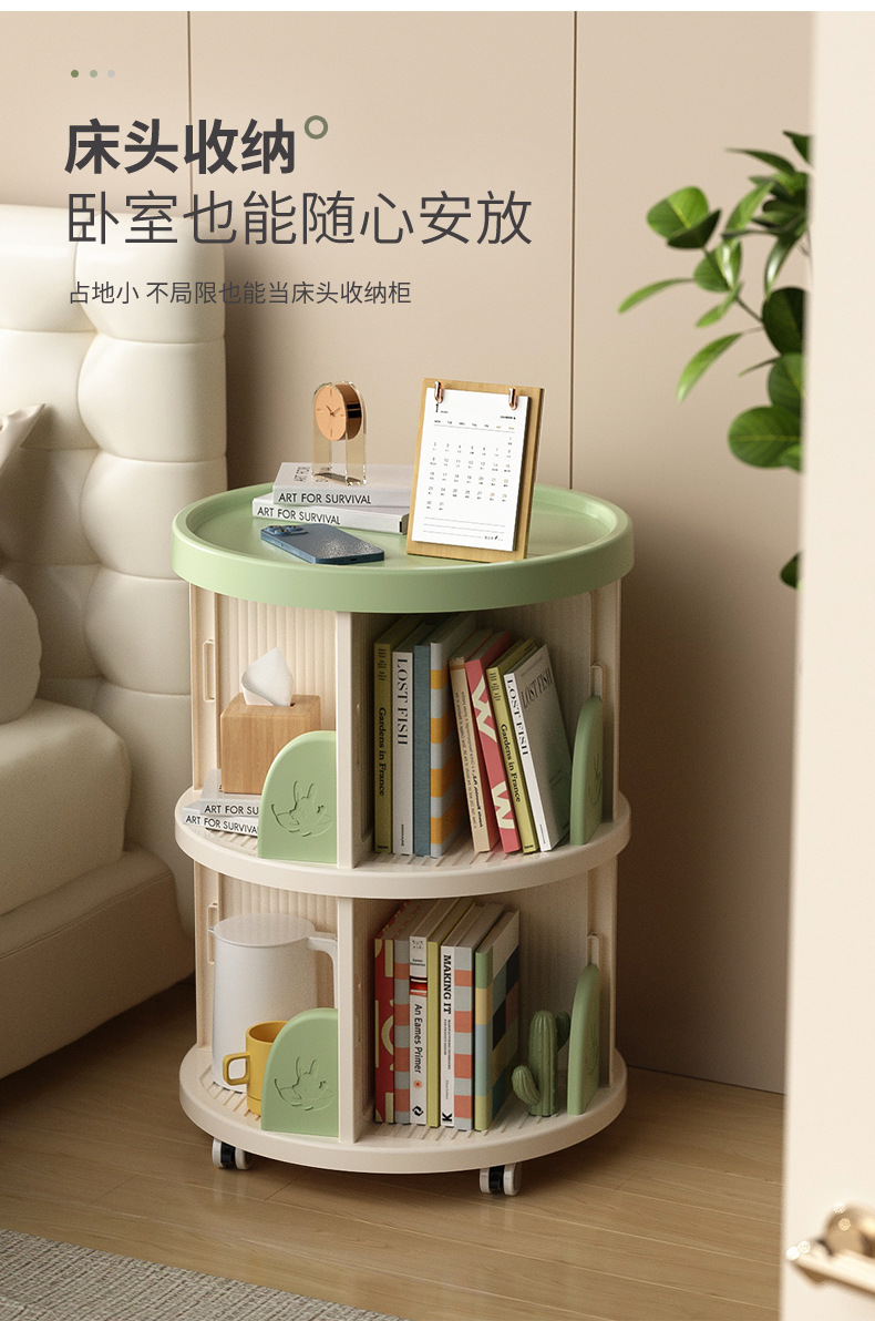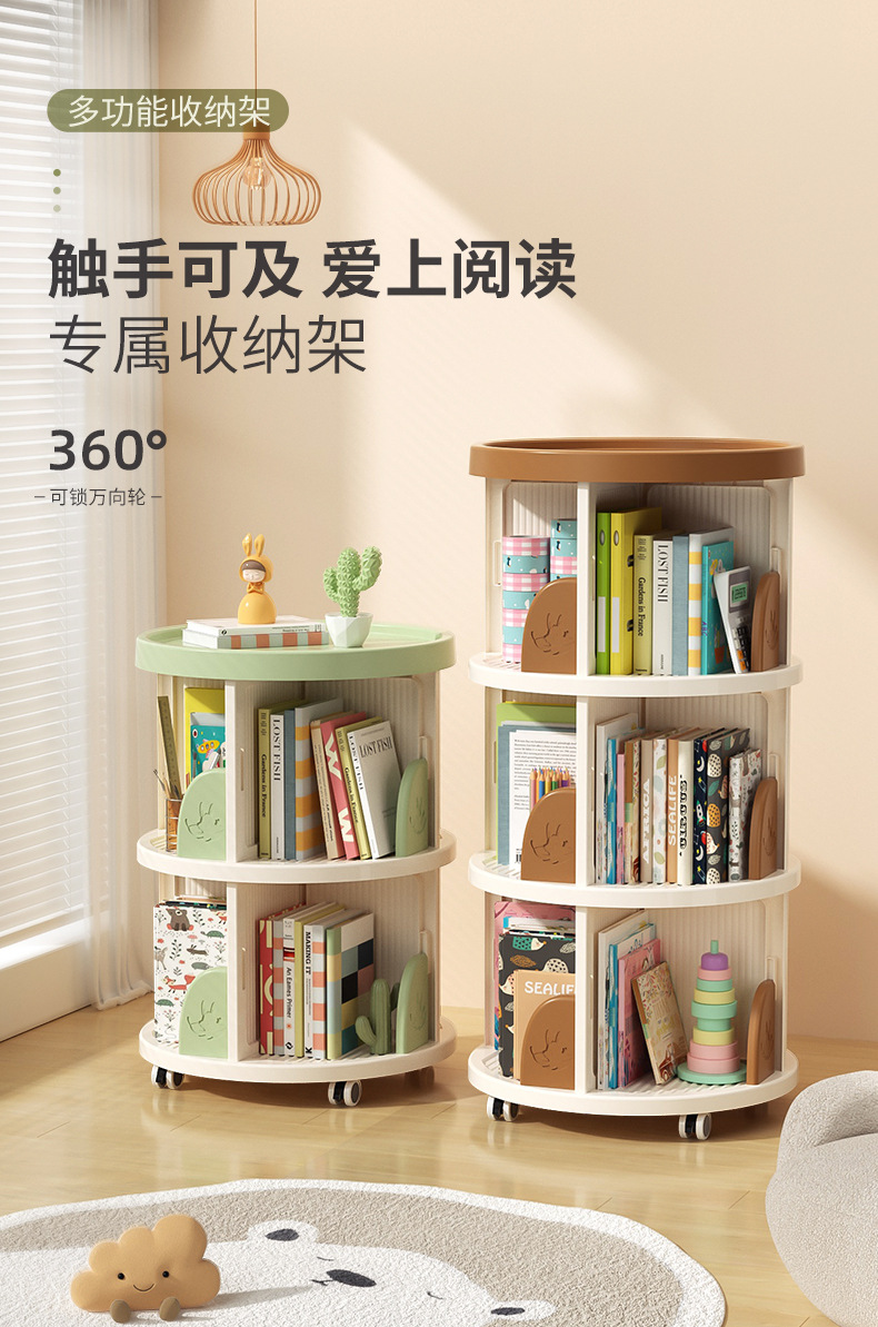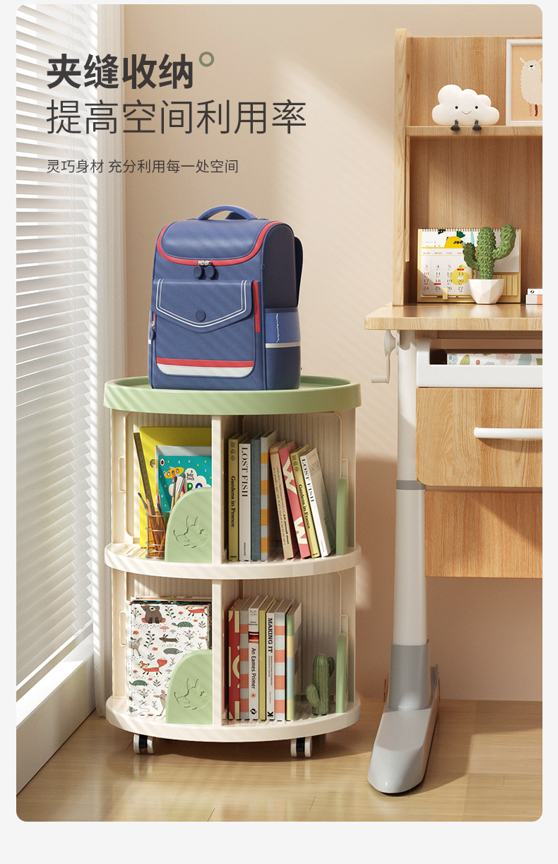 어린이 다기능 책장 주방 잡화 수납장 다층 이동식 회전 책장 거실 코너 수납장