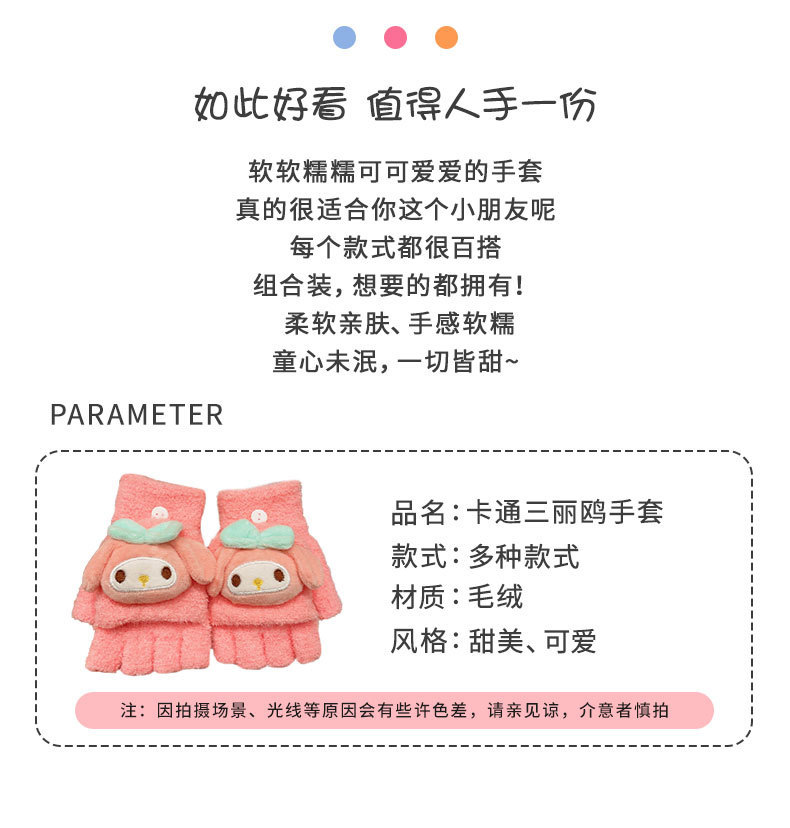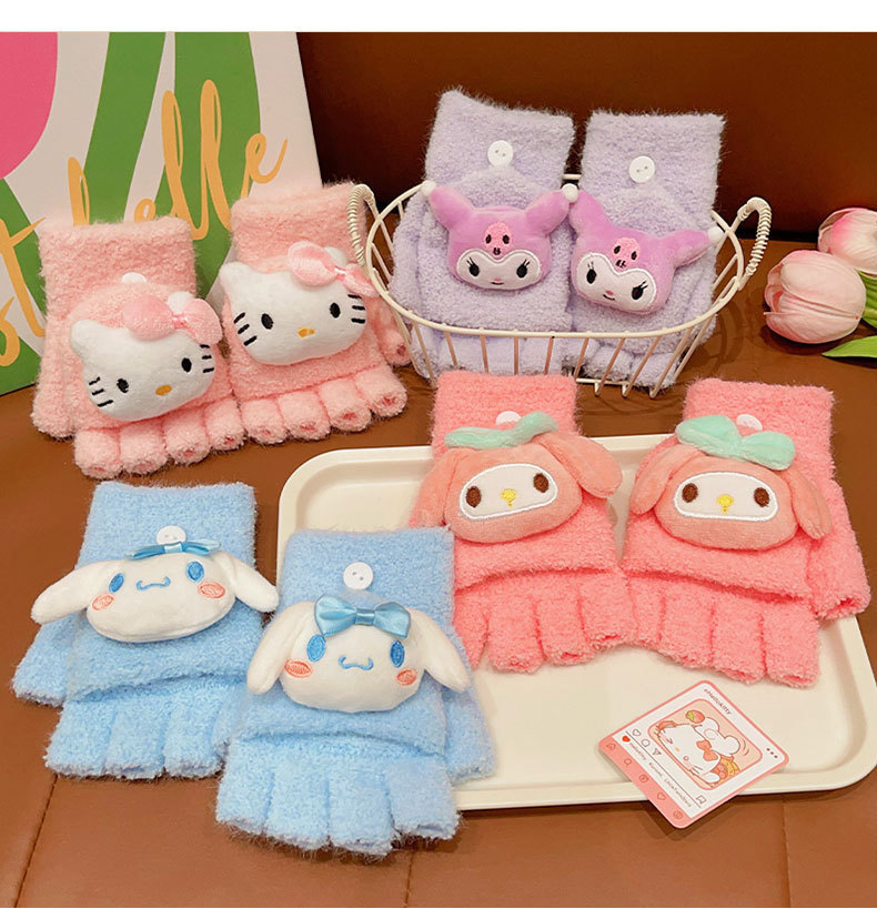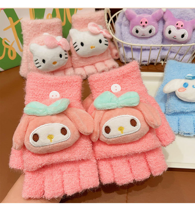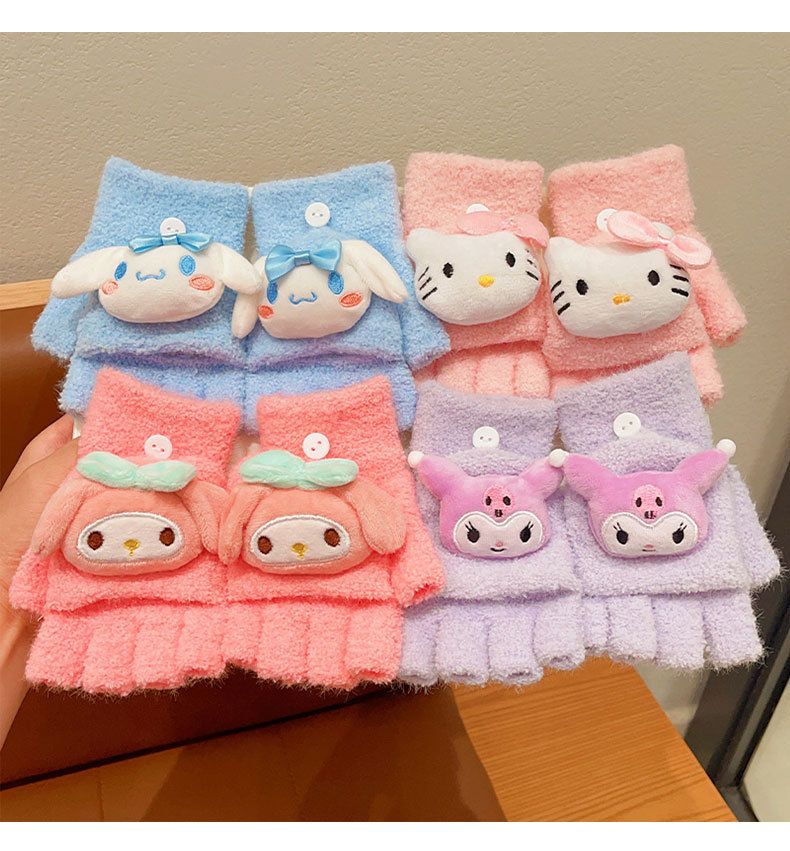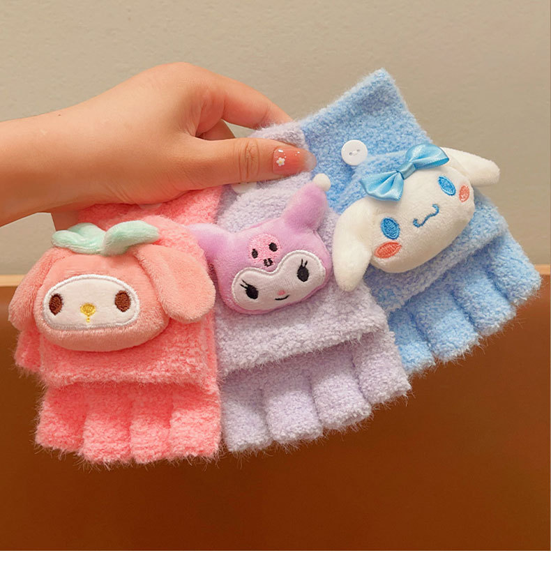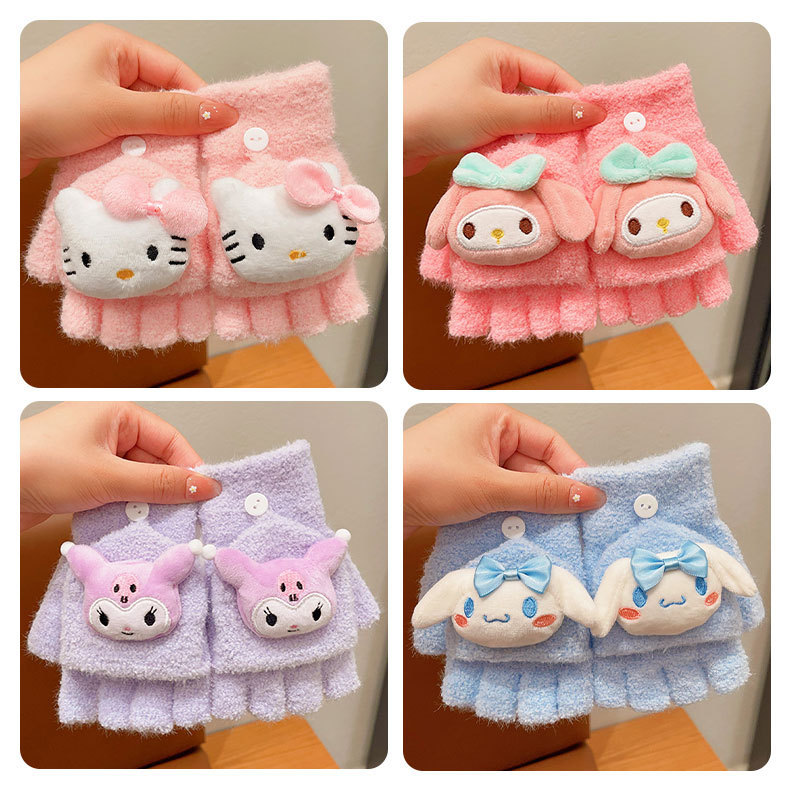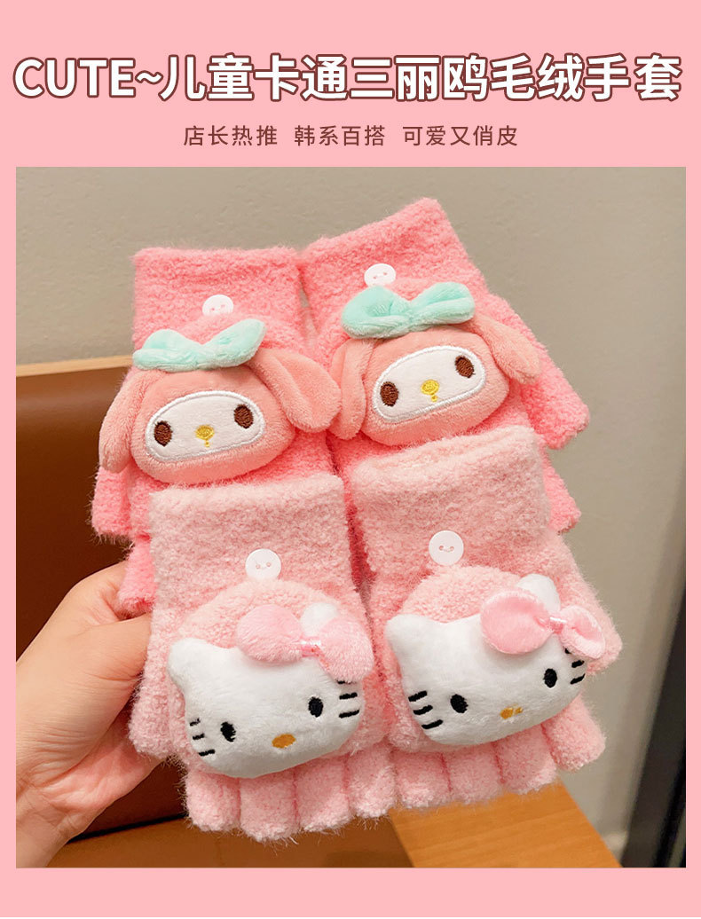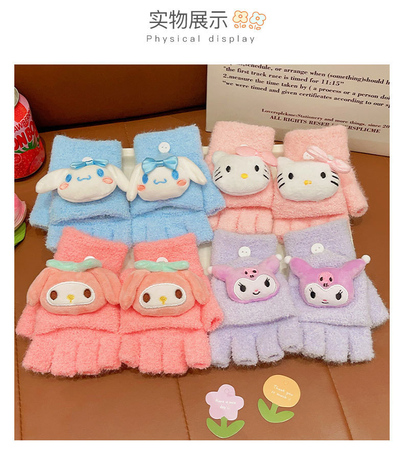 어린이 산리오 만화 장갑 겨울 어린 소녀의 귀여운 따뜻한 플립 커버 두꺼운 반 손가락 세트 소녀 손가락 세트스토어 가기