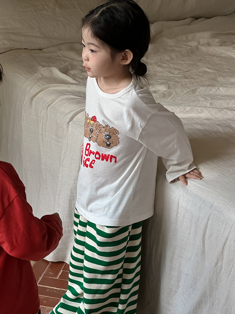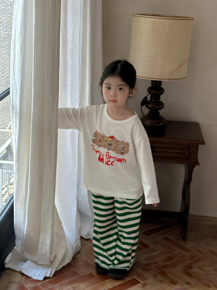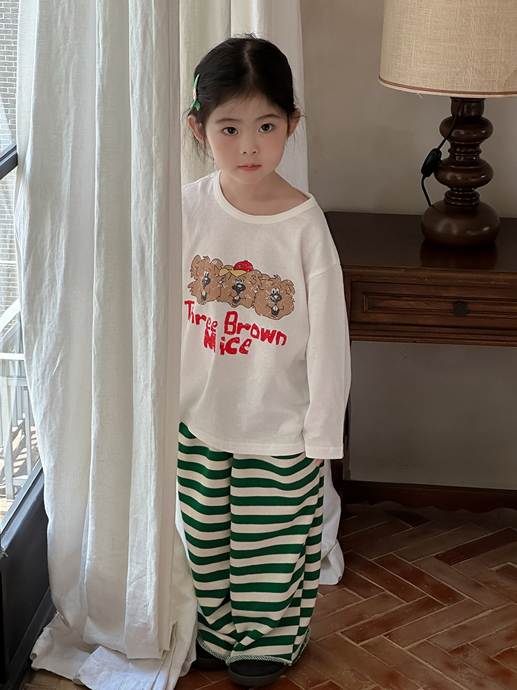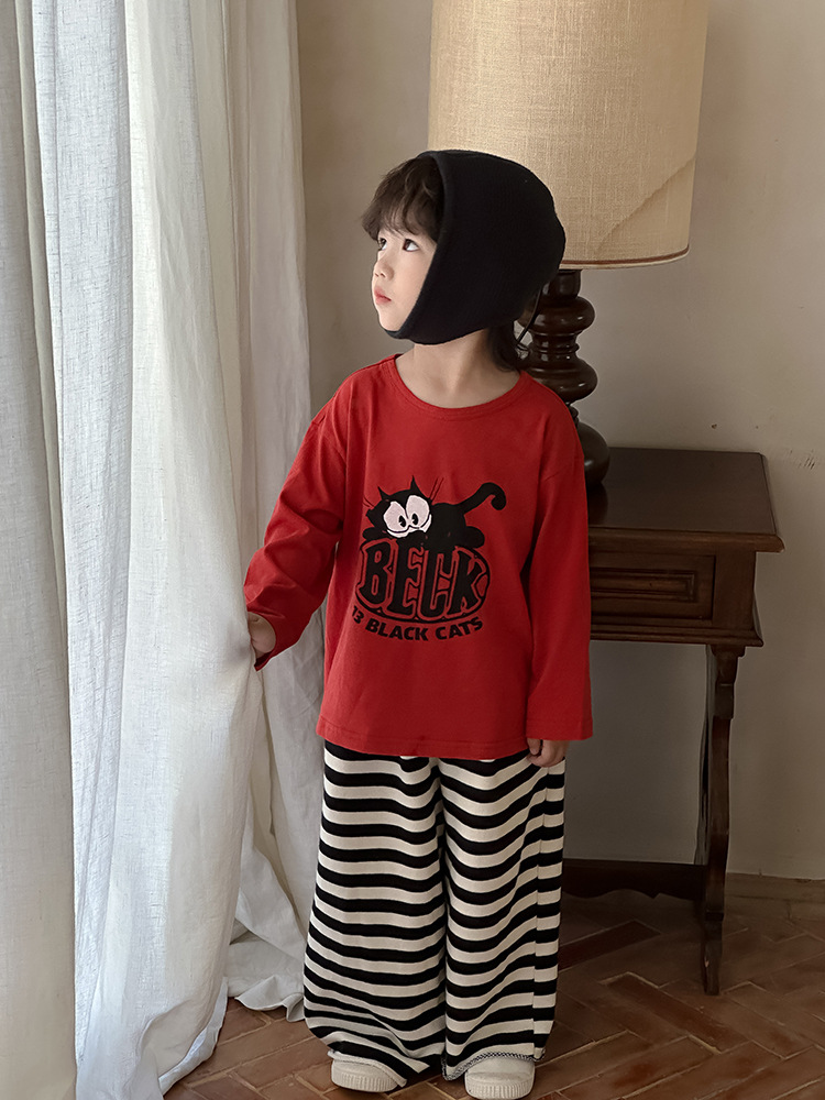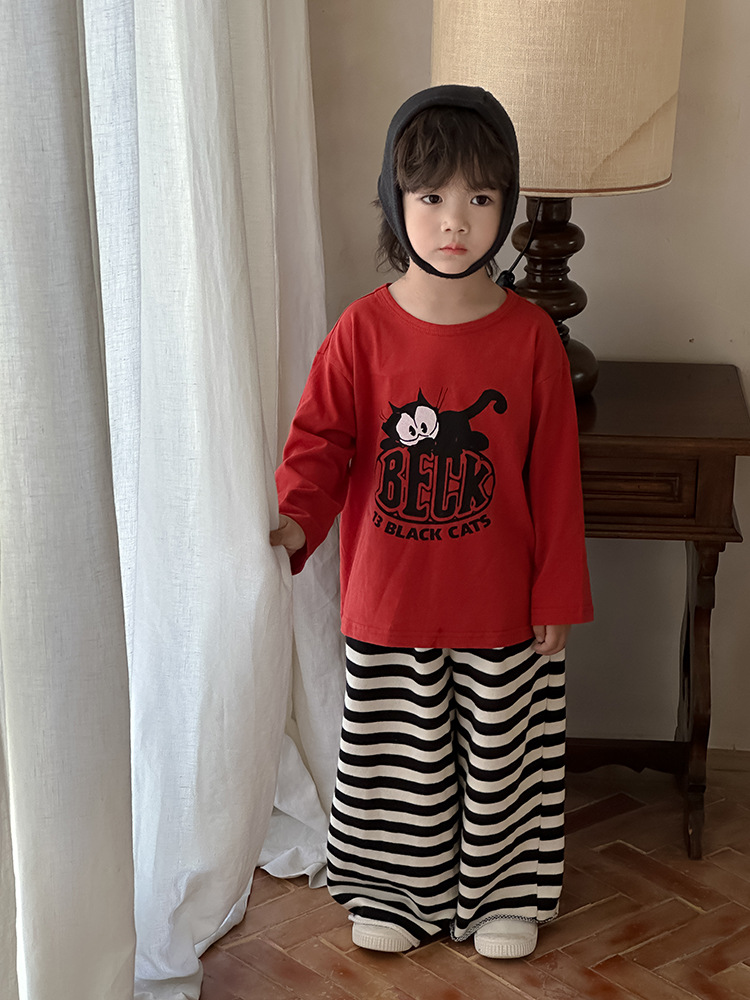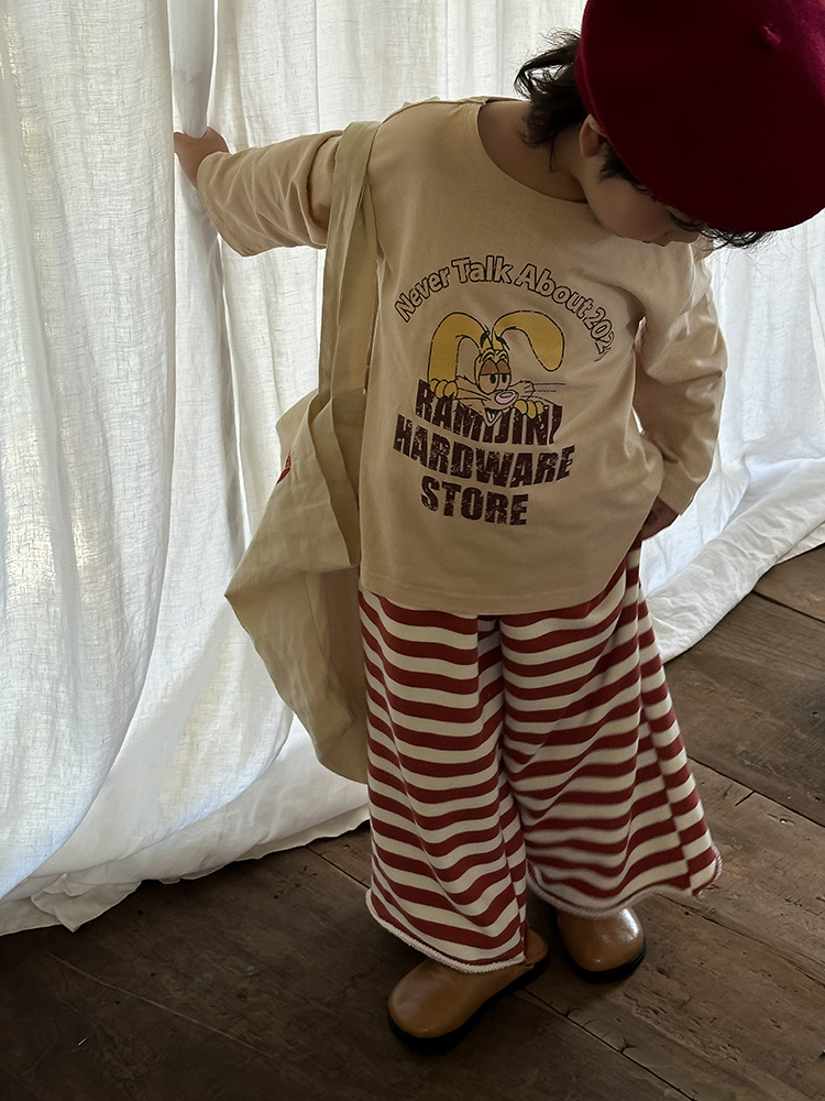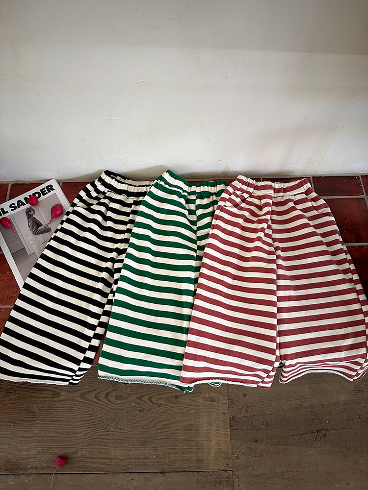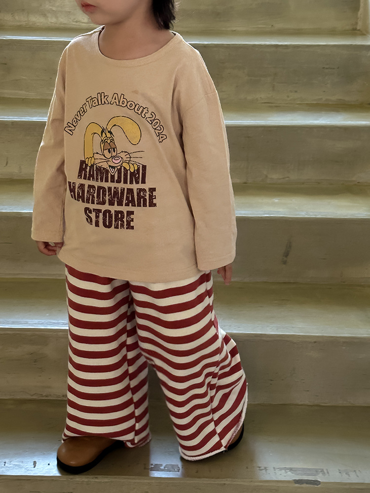 Zuoxiaoran 아동복 아동 스트라이프 와이드 팬츠 2024 가을 신작 한국 스타일 스트라이프 3색 바닥 길이 바지 소년 소녀용스토어 가기