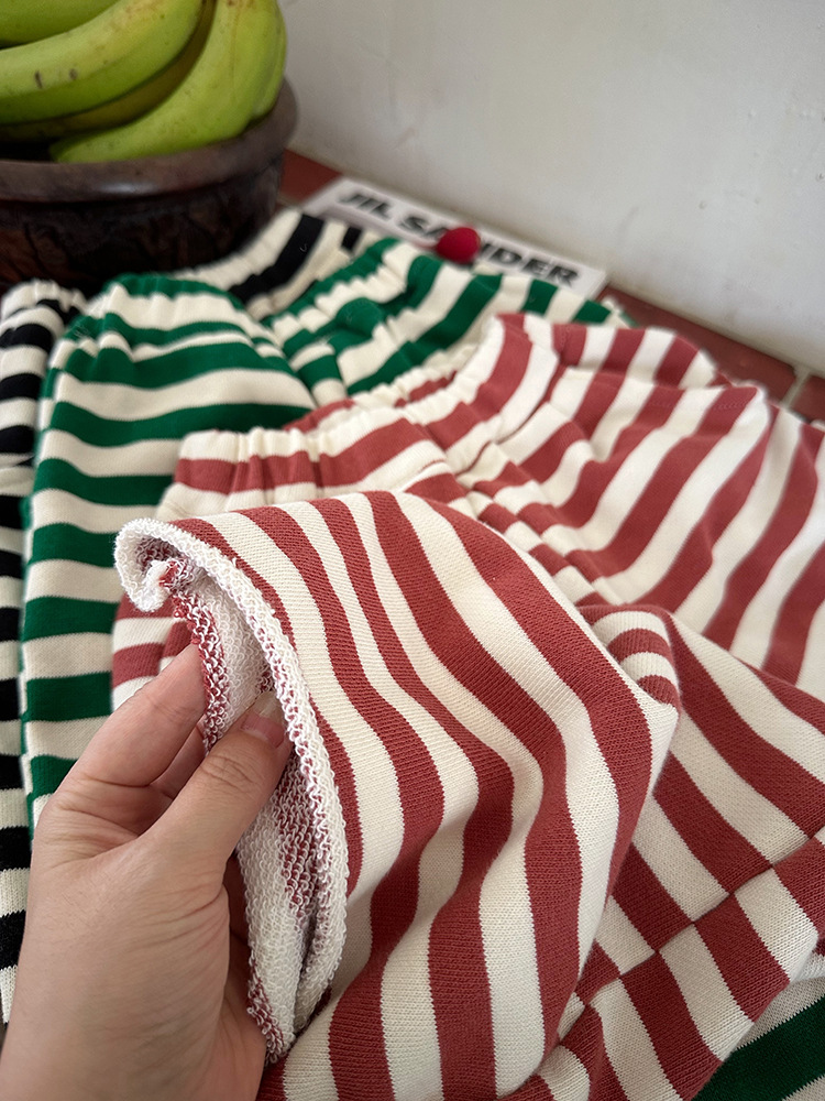 Zuoxiaoran 아동복 아동 스트라이프 와이드 팬츠 2024 가을 신작 한국 스타일 스트라이프 3색 바닥 길이 바지 소년 소녀용