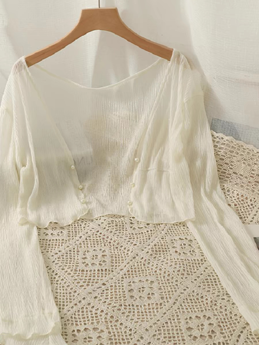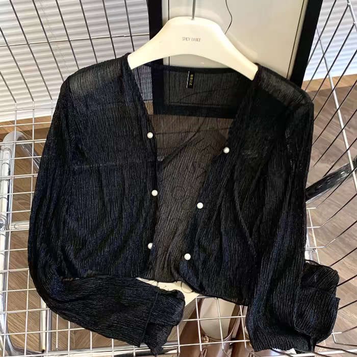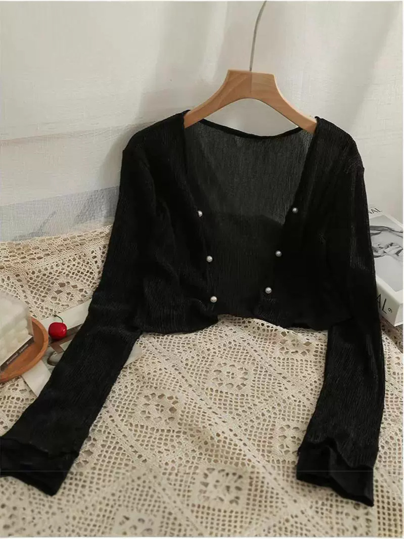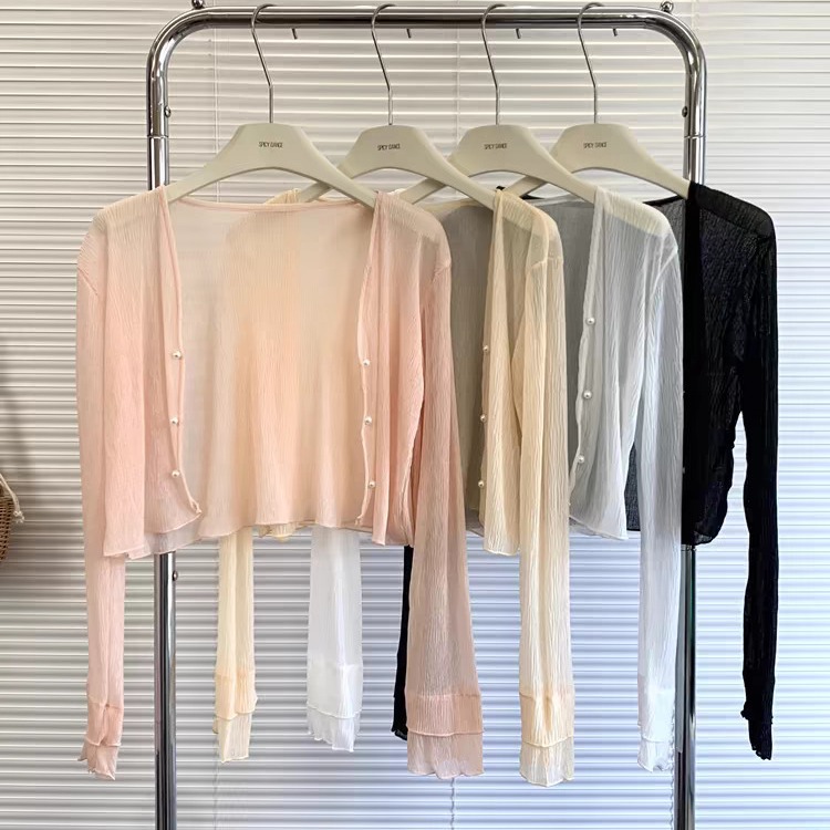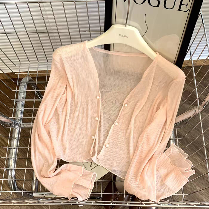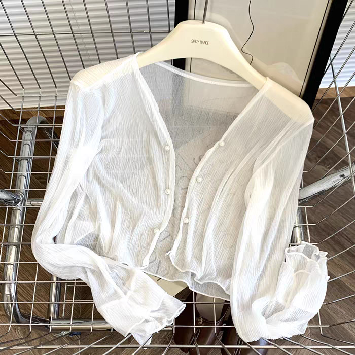 외부 착용 얇은 치마 쉬폰 작은 목도리 니트 아이스 실크 태양 보호 카디건 여성의 여름 에어컨 셔츠 짧은 블라우스