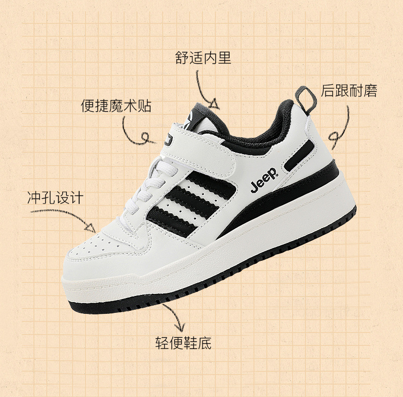 지프 어린이 보드 신발 소년 운동화 2024 가을 새로운 캐주얼 흰색 신발 벨크로 통기성 여성 신발스토어 가기